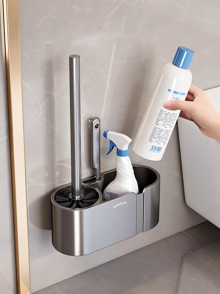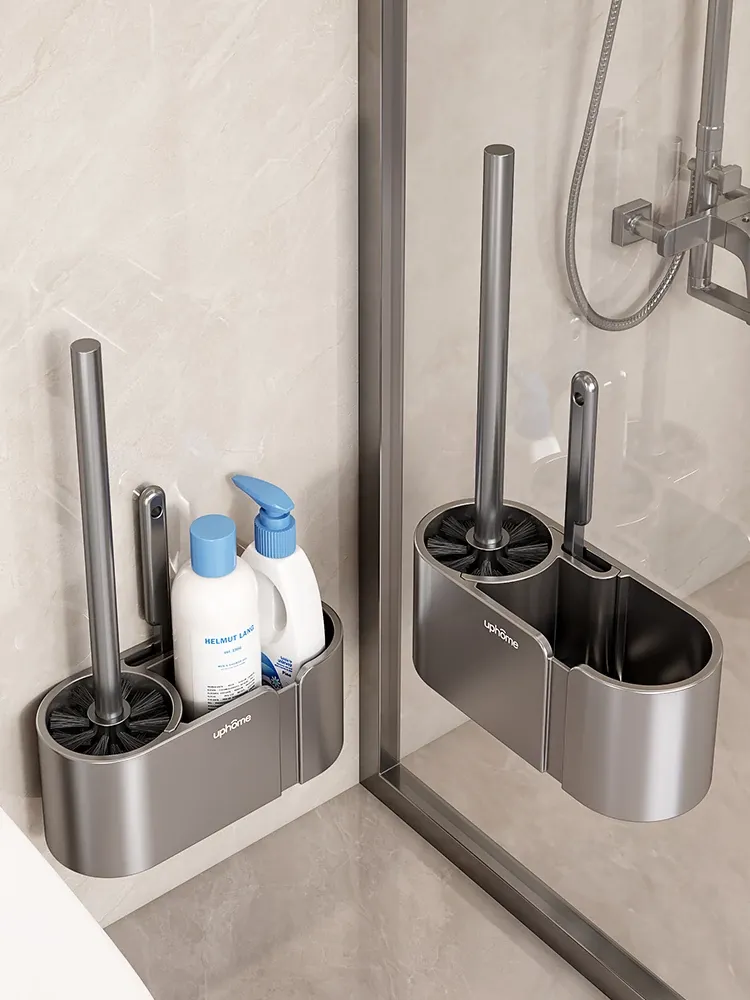 高級感漂う壁掛けトイレブラシ収納ラック - 家庭用・隅々まで掃除可能なトイレブラシスタンドで、清潔感あふれるバスルームを実現!