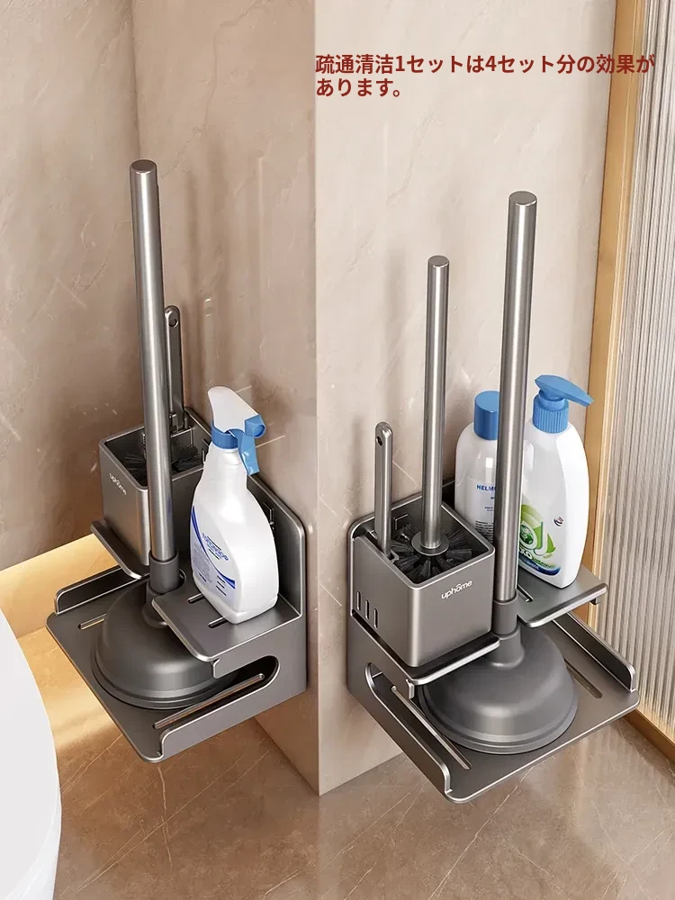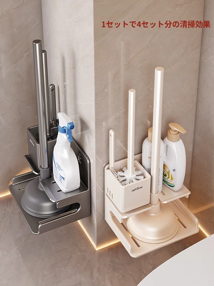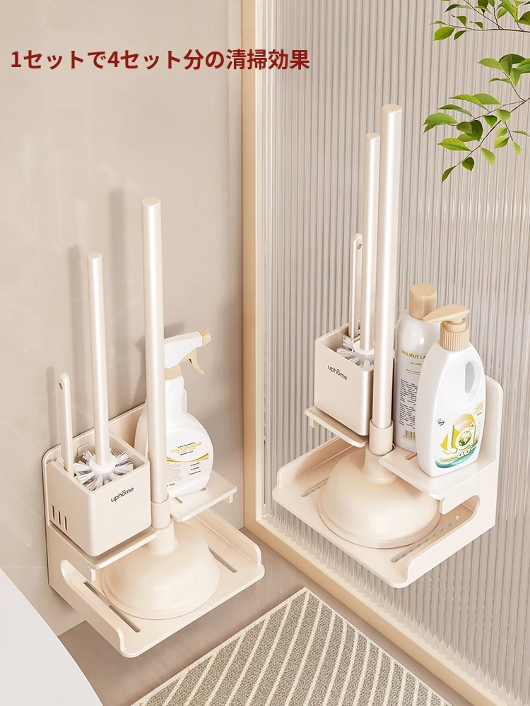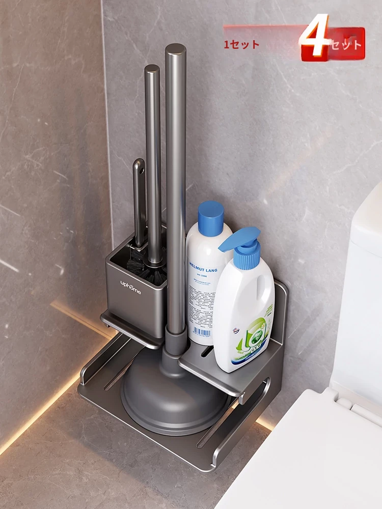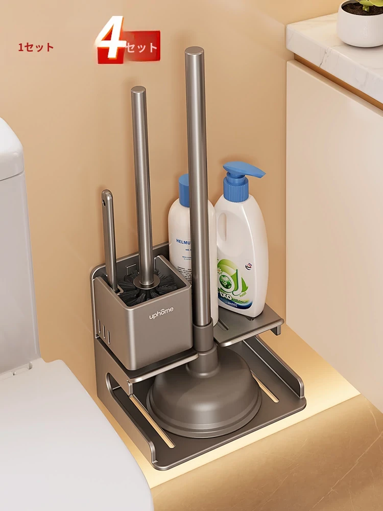 トイレ用収納ラックセット - 隅々までキレイに!トイレブラシ・便器プラグ・詰まり解消ツールが揃った便利なアイテム。清潔感あふれるバスルームを実現!