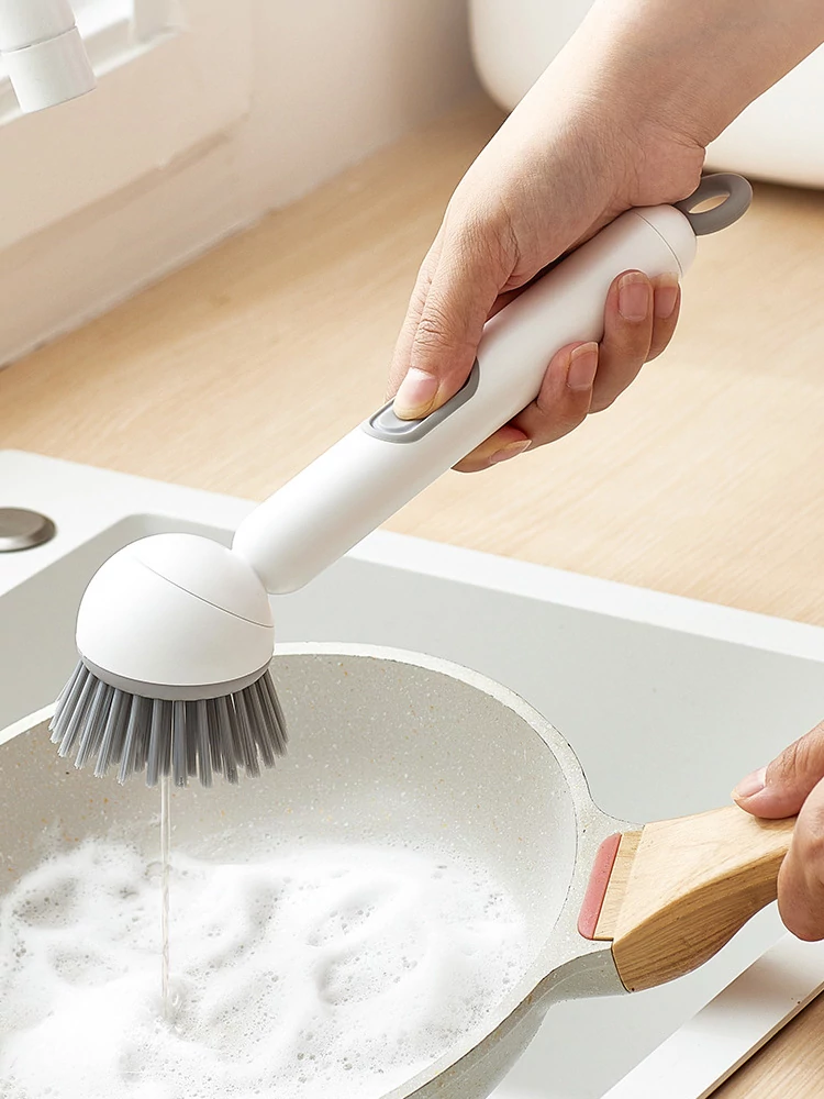 長柄液体旋転鍋ブラシ - キッチン専用、焦げ付きなし、鍋を傷めない多機能洗浄ブラシ!洗い物が楽々、清潔で快適な調理生活をサポートします!
