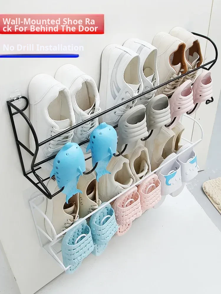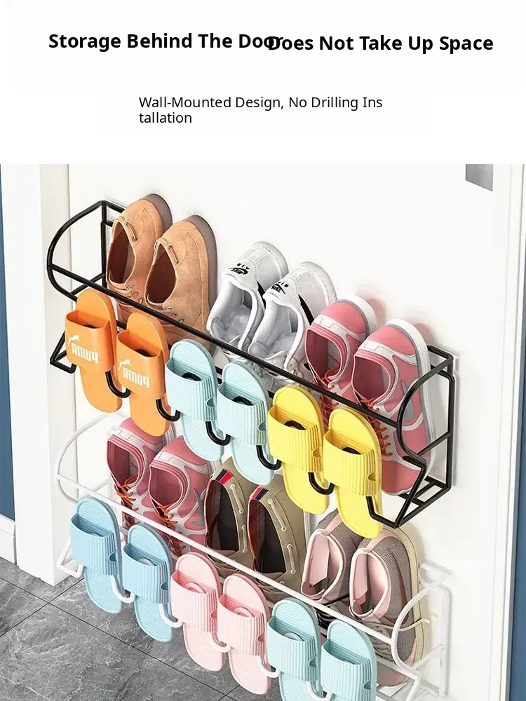 Space-Saving Wall-Mounted Shoe Rack - Multi-Layered, Economical Design for Home Entryway and Bathroom - Perfect for Organizing Slippers and Footwear Behind Doors!