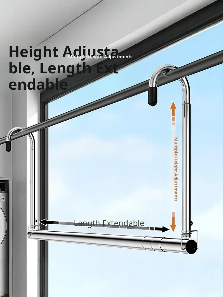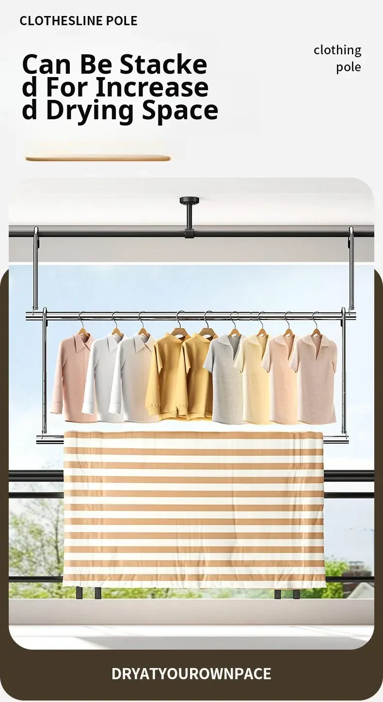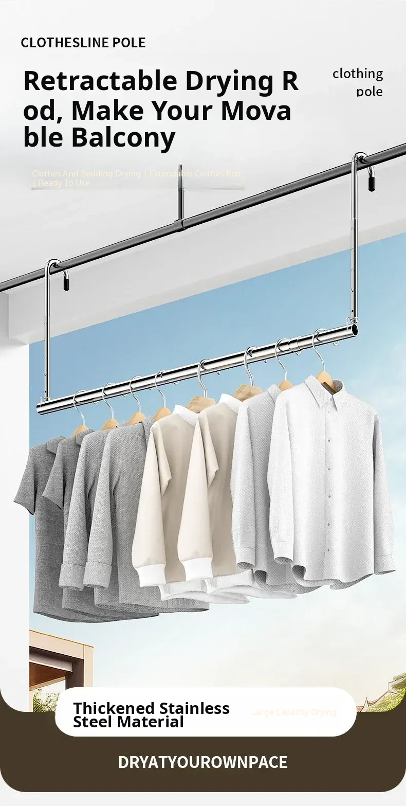 Adjustable Balcony Clothes Drying Rack - No Drill, Stainless Steel Pull-Down Clothesline for Easy Bedding and Sheet Drying - The Ultimate Space-Saving Solution!