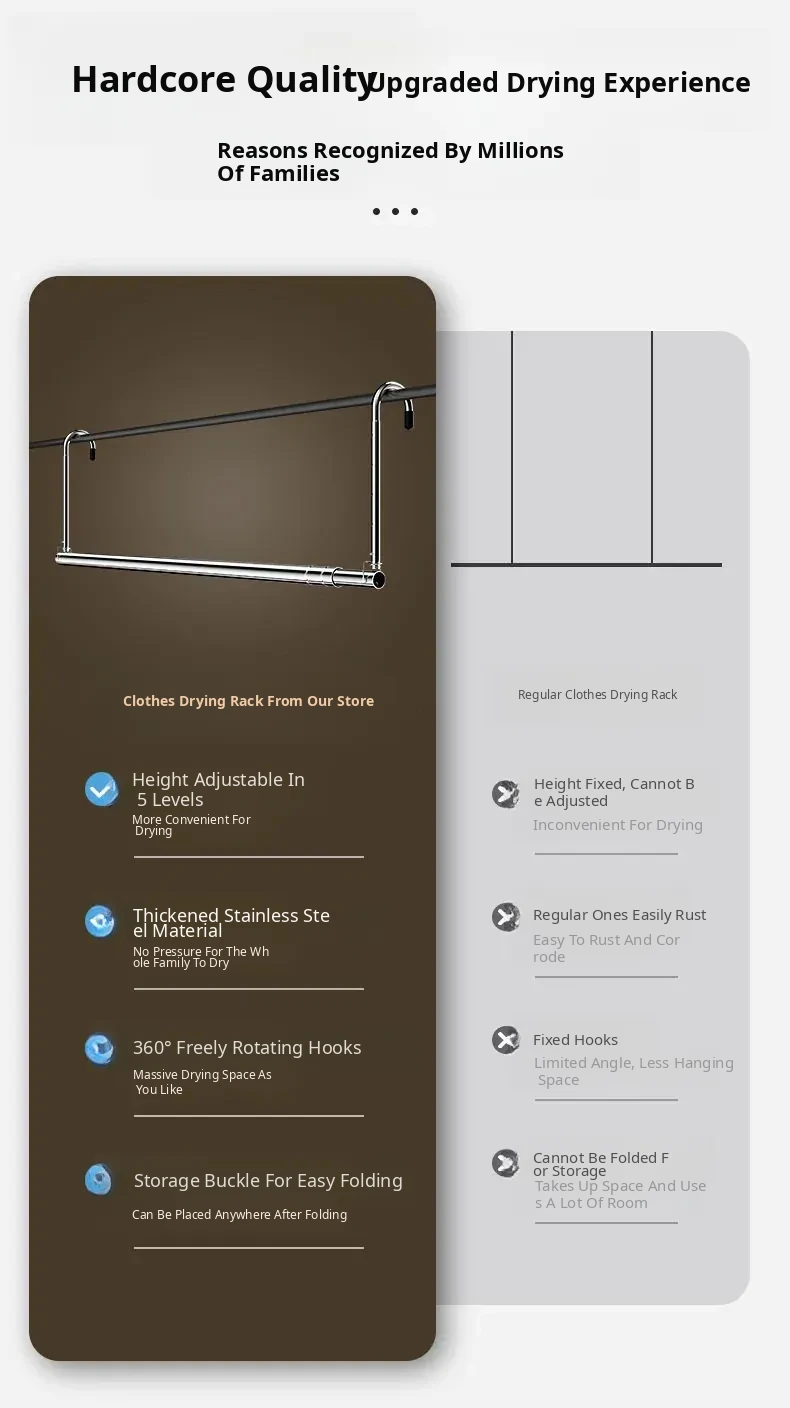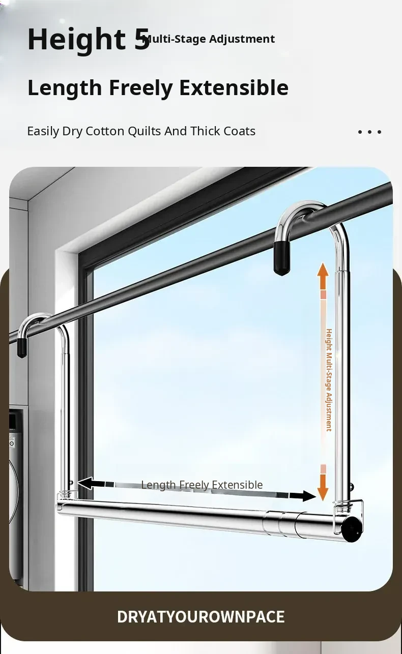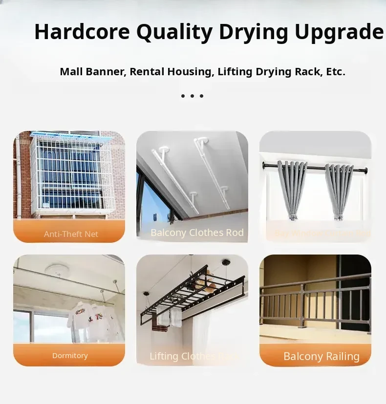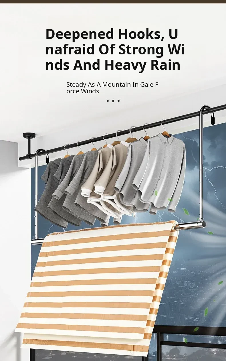 Adjustable Balcony Clothes Drying Rack - No Drill, Stainless Steel Pull-Down Clothesline for Easy Bedding and Sheet Drying - The Ultimate Space-Saving Solution!