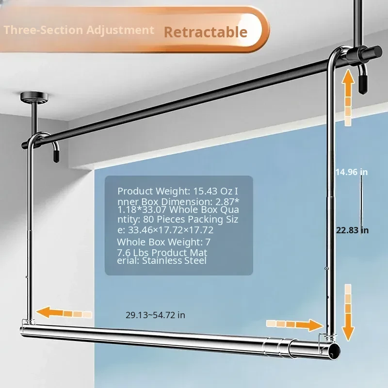 Stainless Steel Telescopic Clothes Drying Pole (Three-Speed Telescopic 74Cm-139Cm)