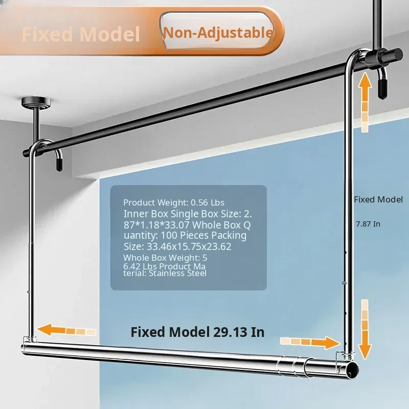 Stainless Steel Telescopic Clothes Drying Pole (29.13in Fixed Model)