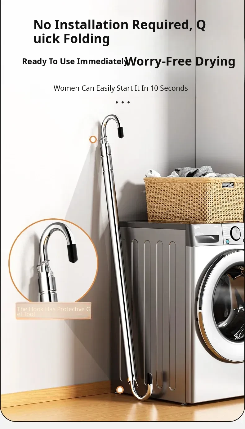 Stainless Steel Telescopic Clothes Drying Pole (Four-Speed Telescopic 98Cm-187Cm)