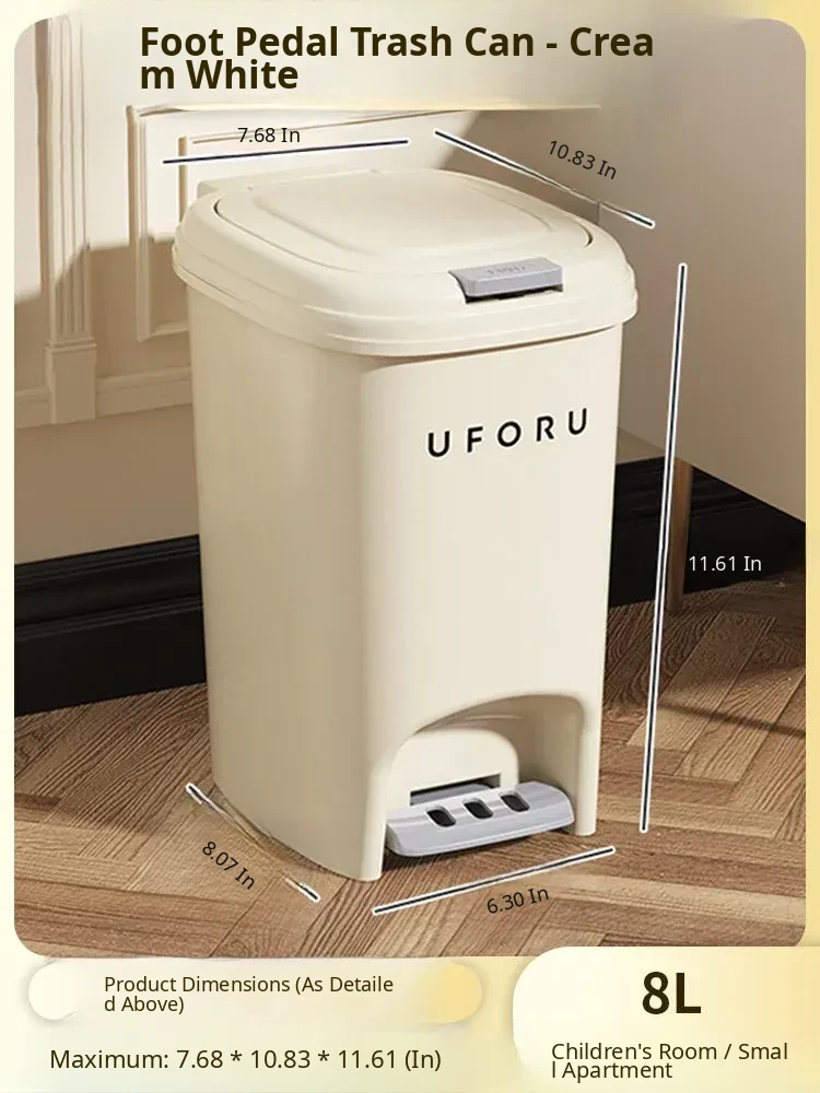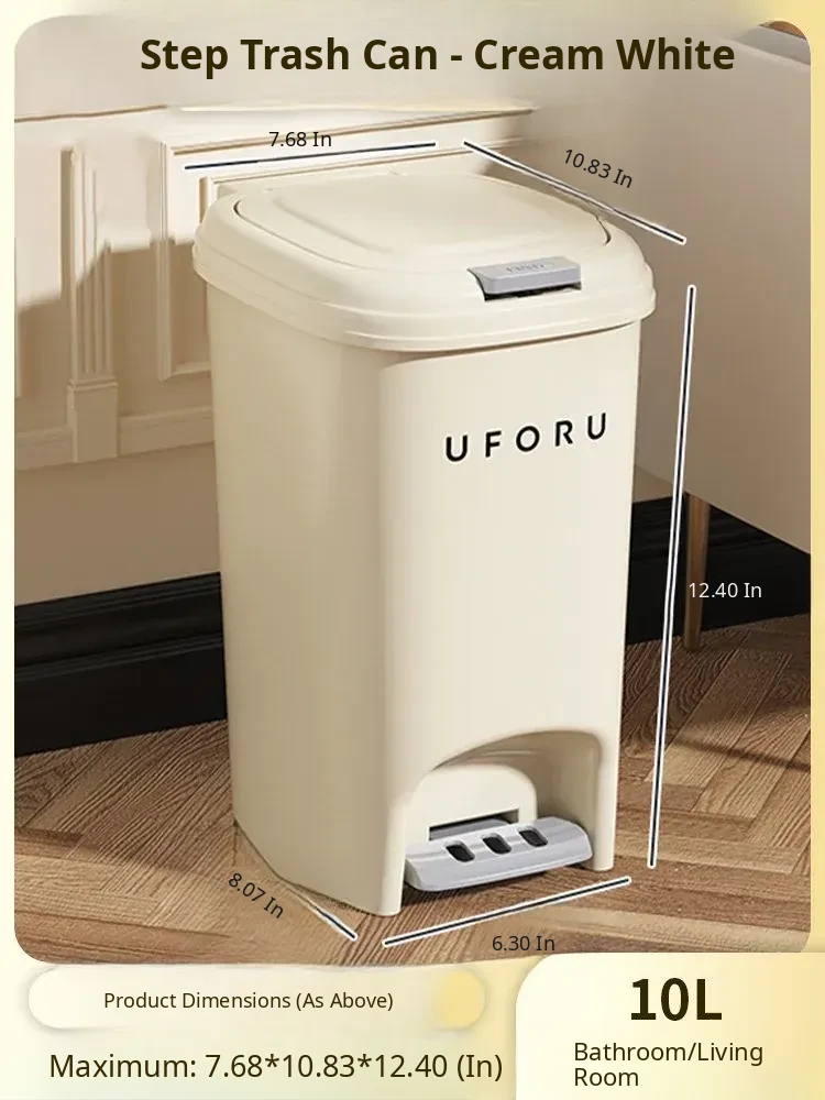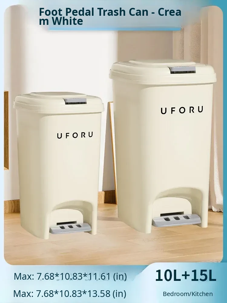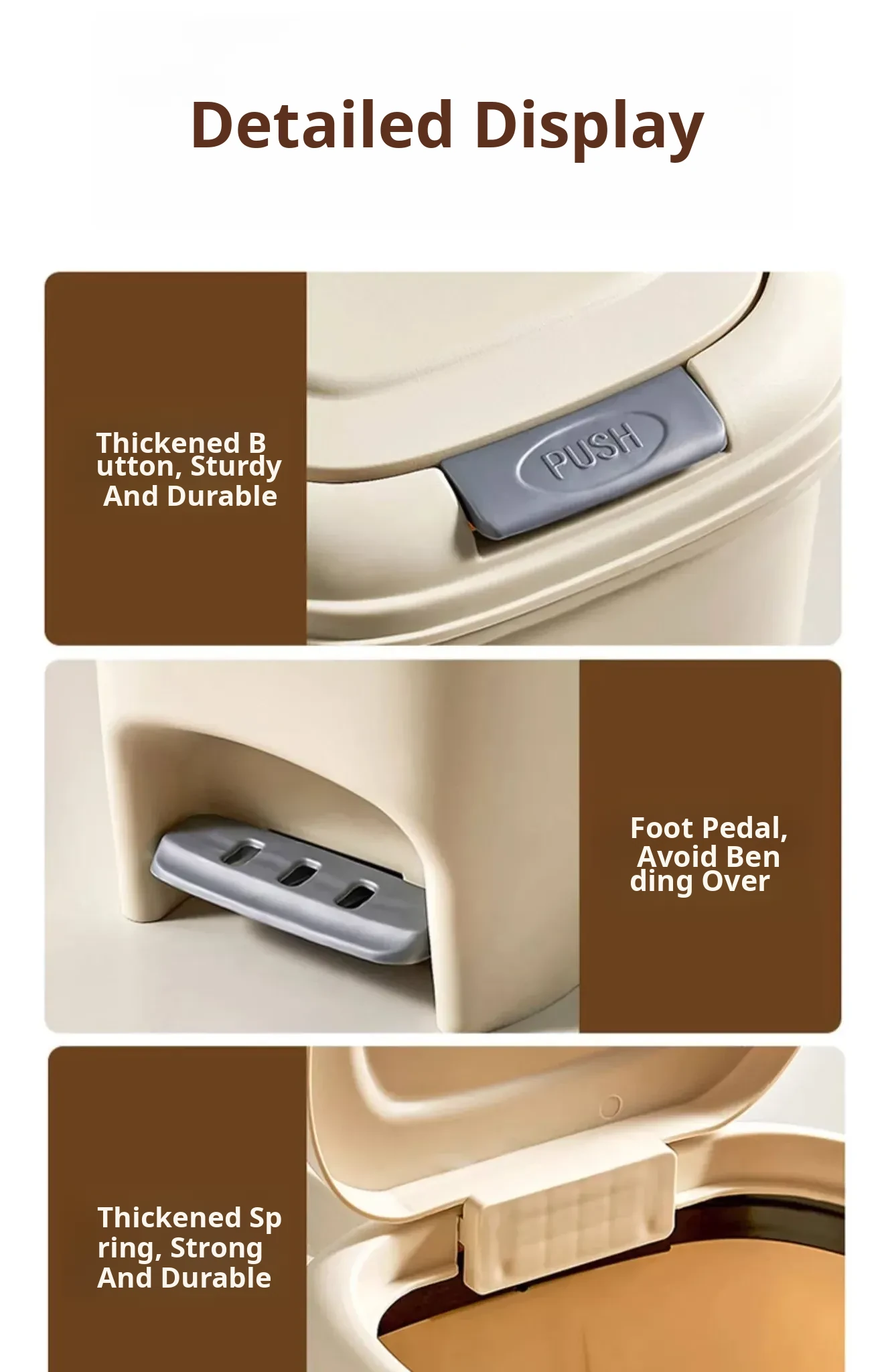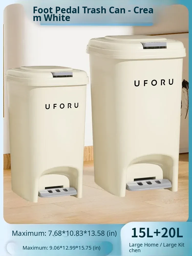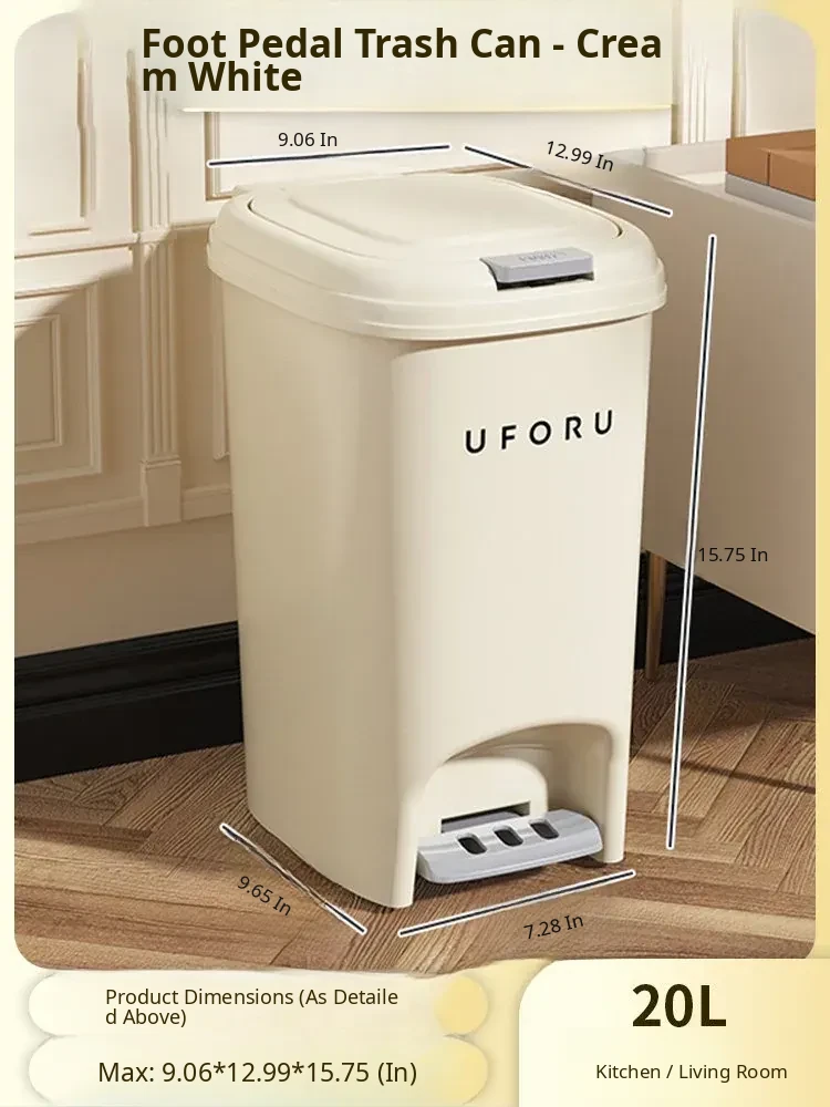 Creamy Foot-Pedal Trash Can - Stylish Large Capacity Waste Bin with Lid for Home, Kitchen, Living Room, Bathroom, and Toilet - Perfect Blend of Elegance and Functionality