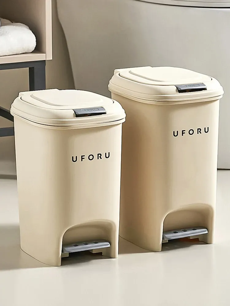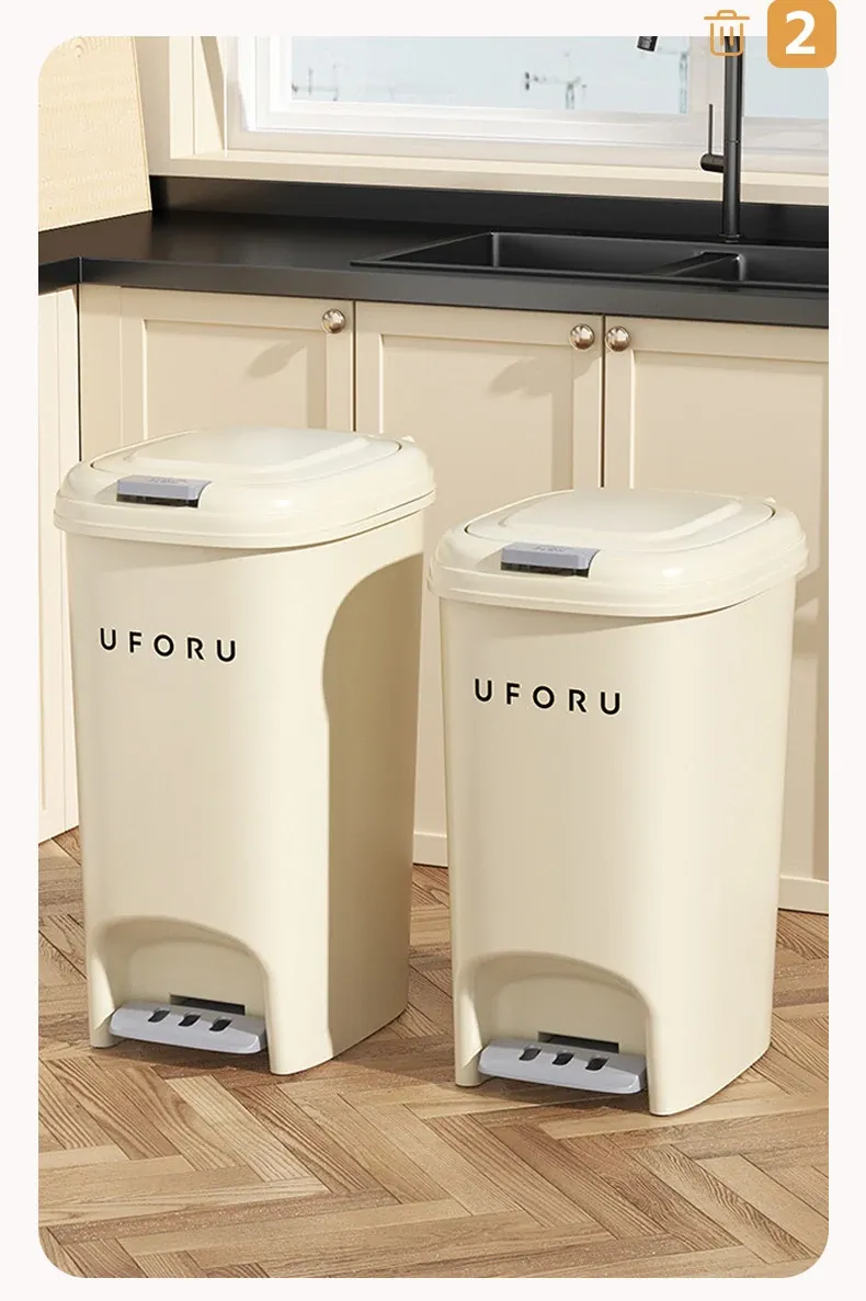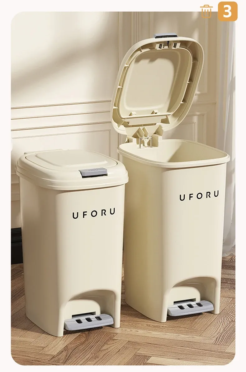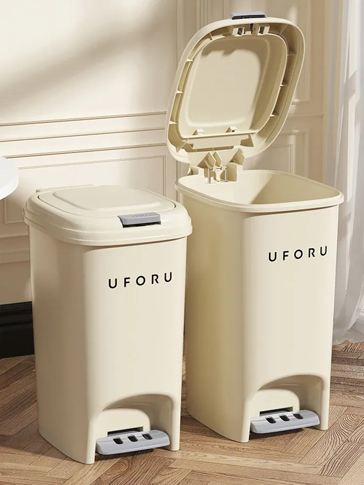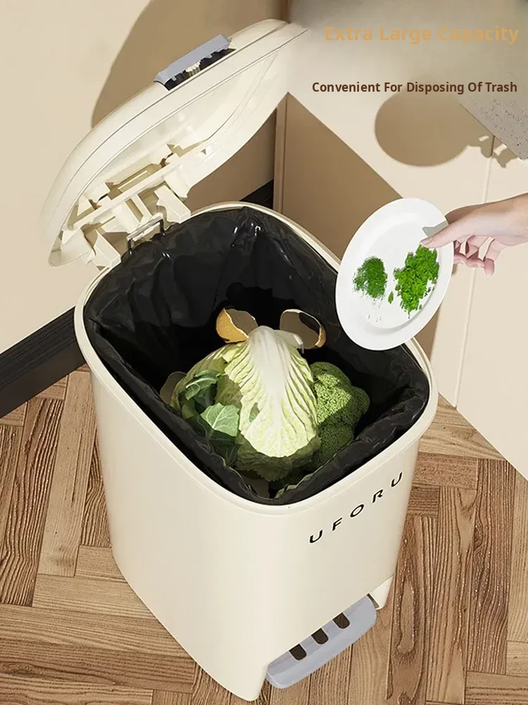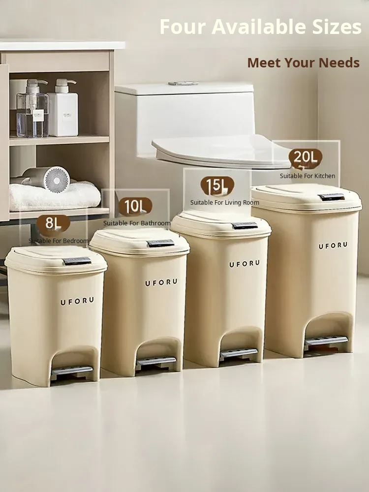 Creamy Foot-Pedal Trash Can - Stylish Large Capacity Waste Bin with Lid for Home, Kitchen, Living Room, Bathroom, and Toilet - Perfect Blend of Elegance and Functionality