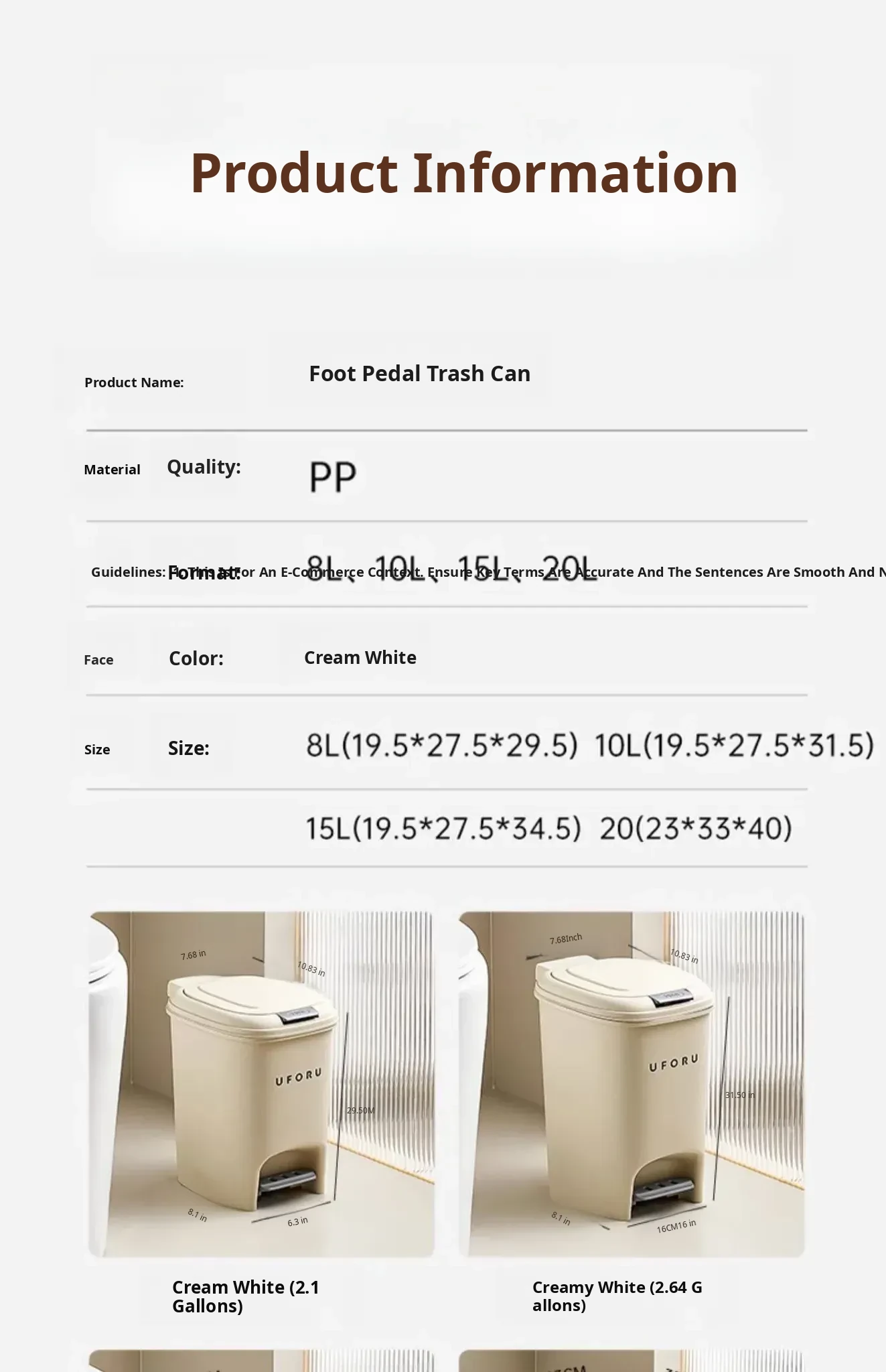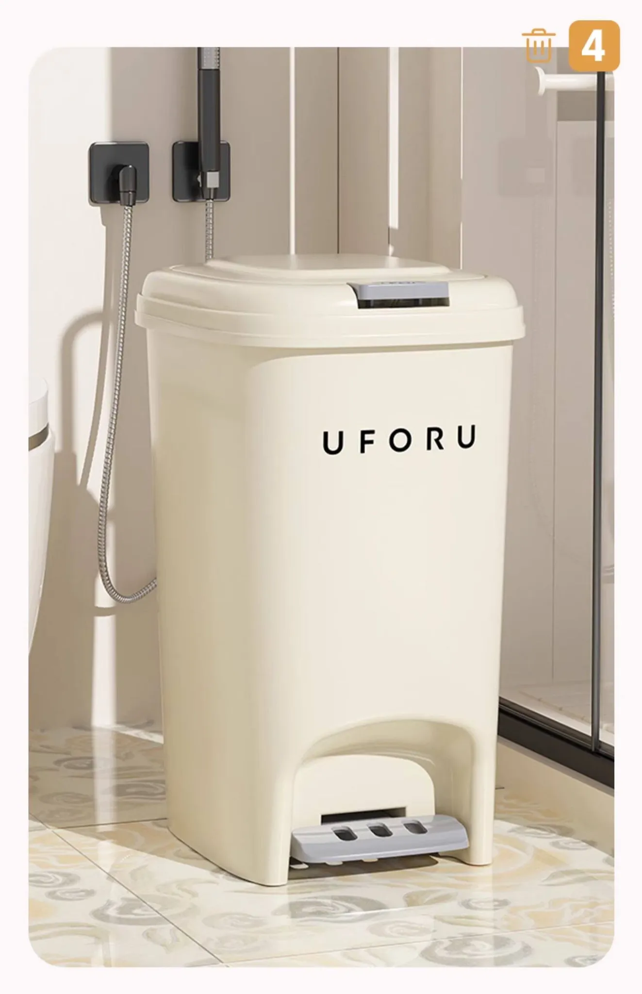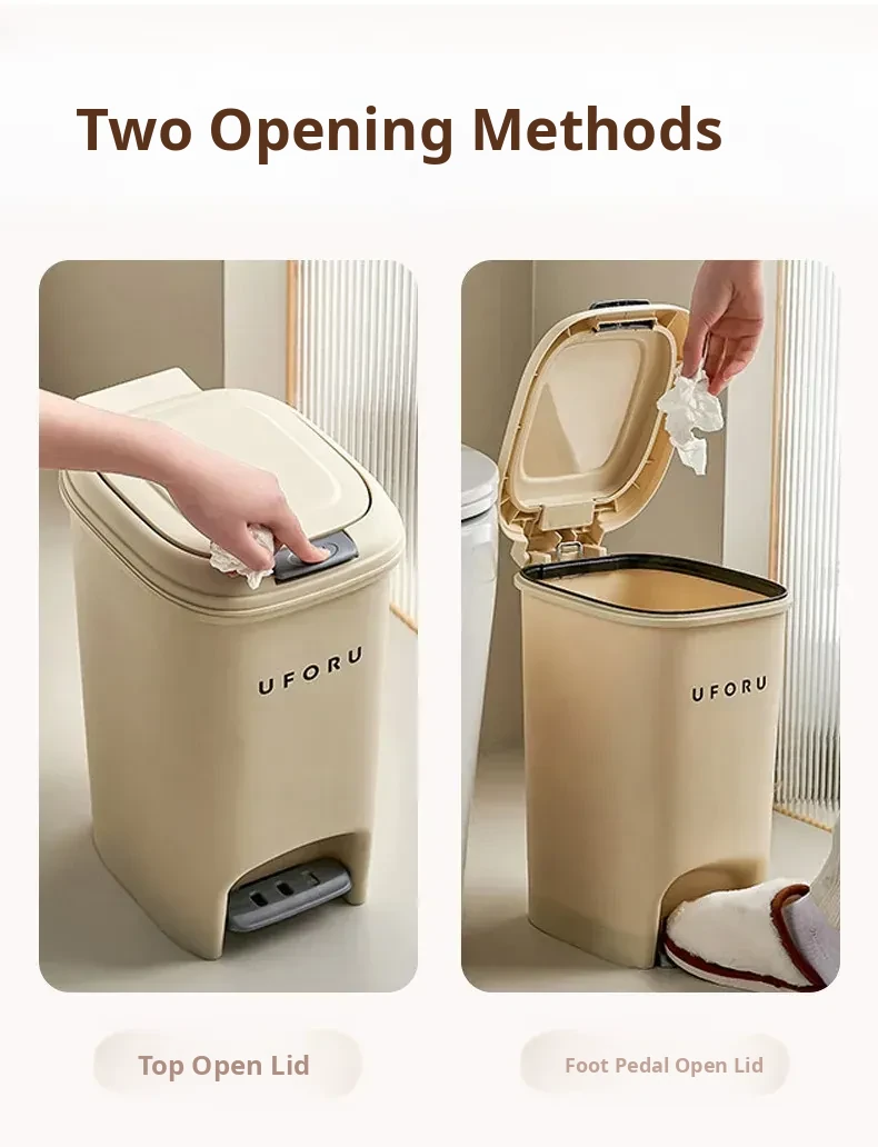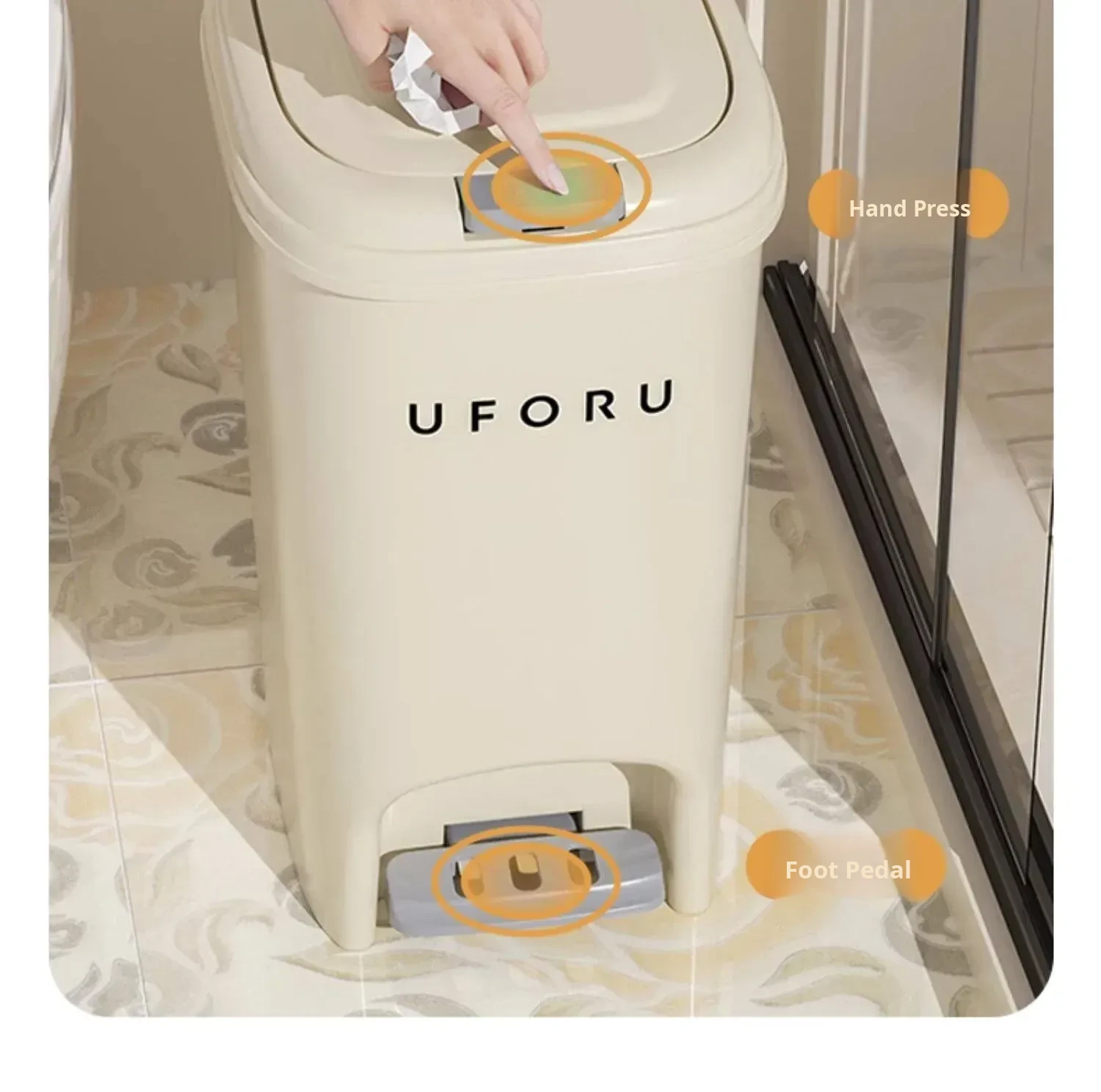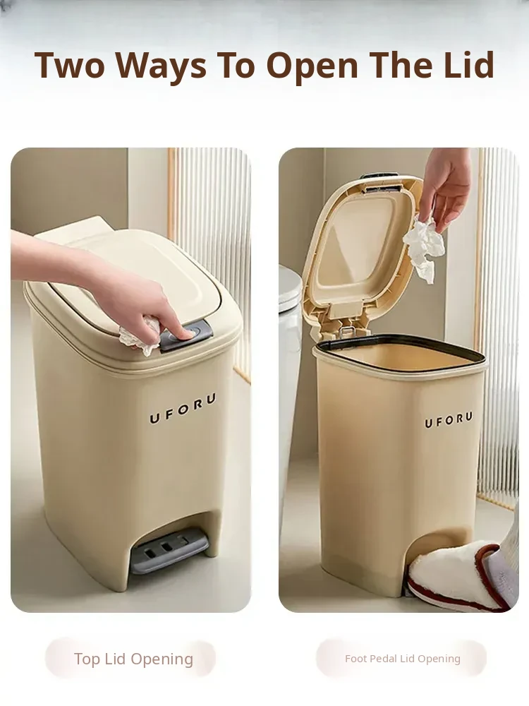 Creamy Foot-Pedal Trash Can - Stylish Large Capacity Waste Bin with Lid for Home, Kitchen, Living Room, Bathroom, and Toilet - Perfect Blend of Elegance and Functionality
