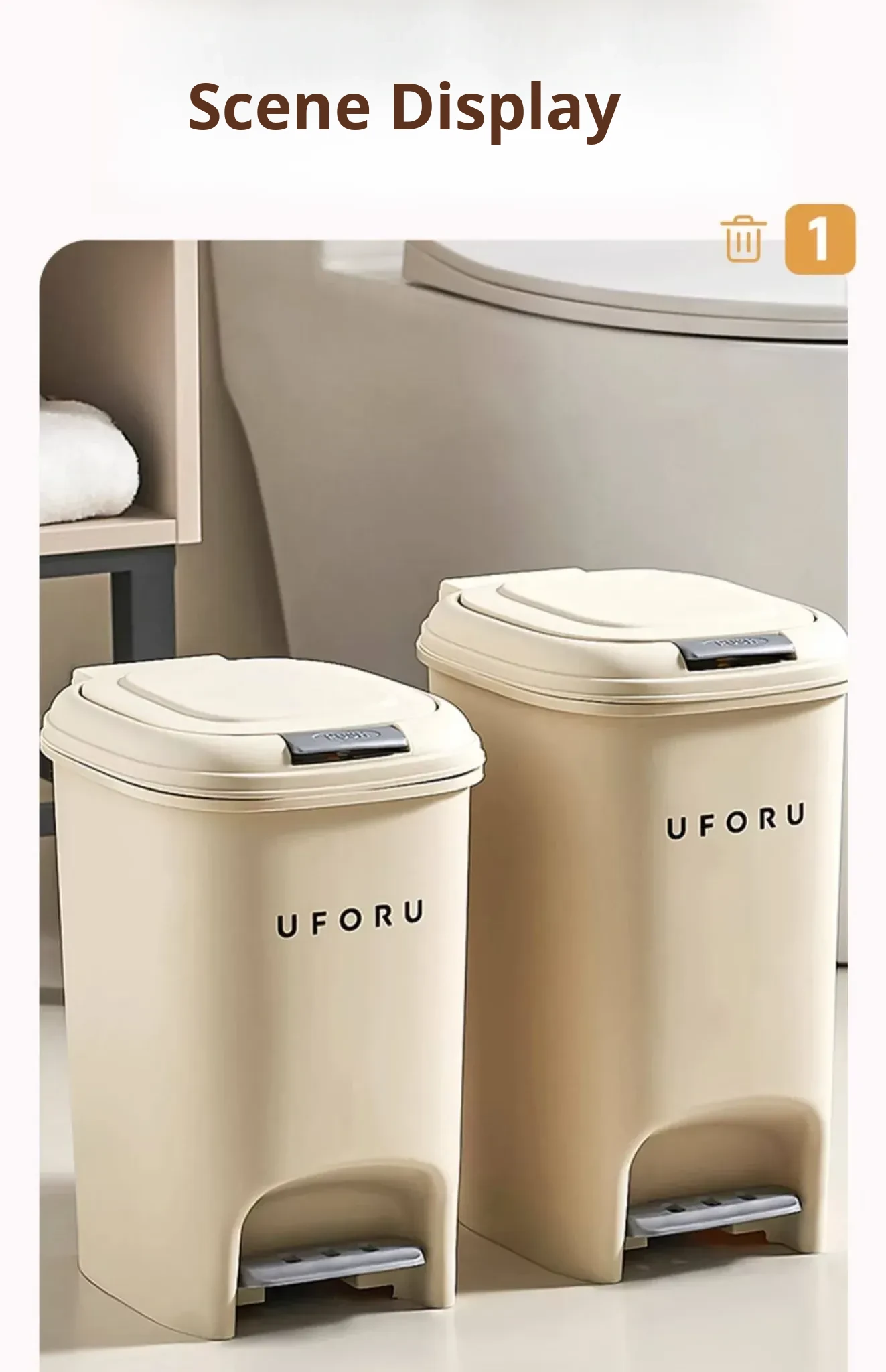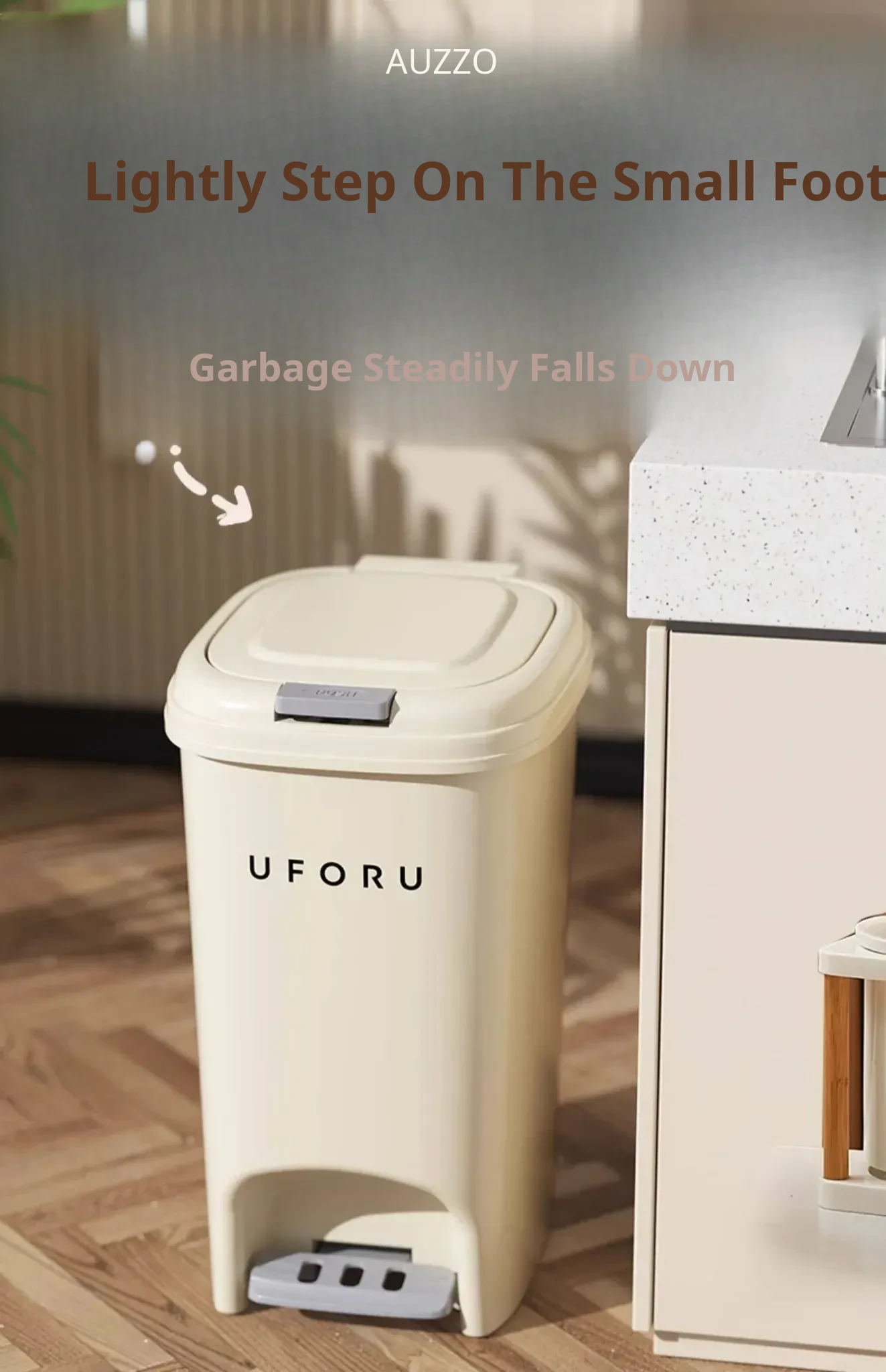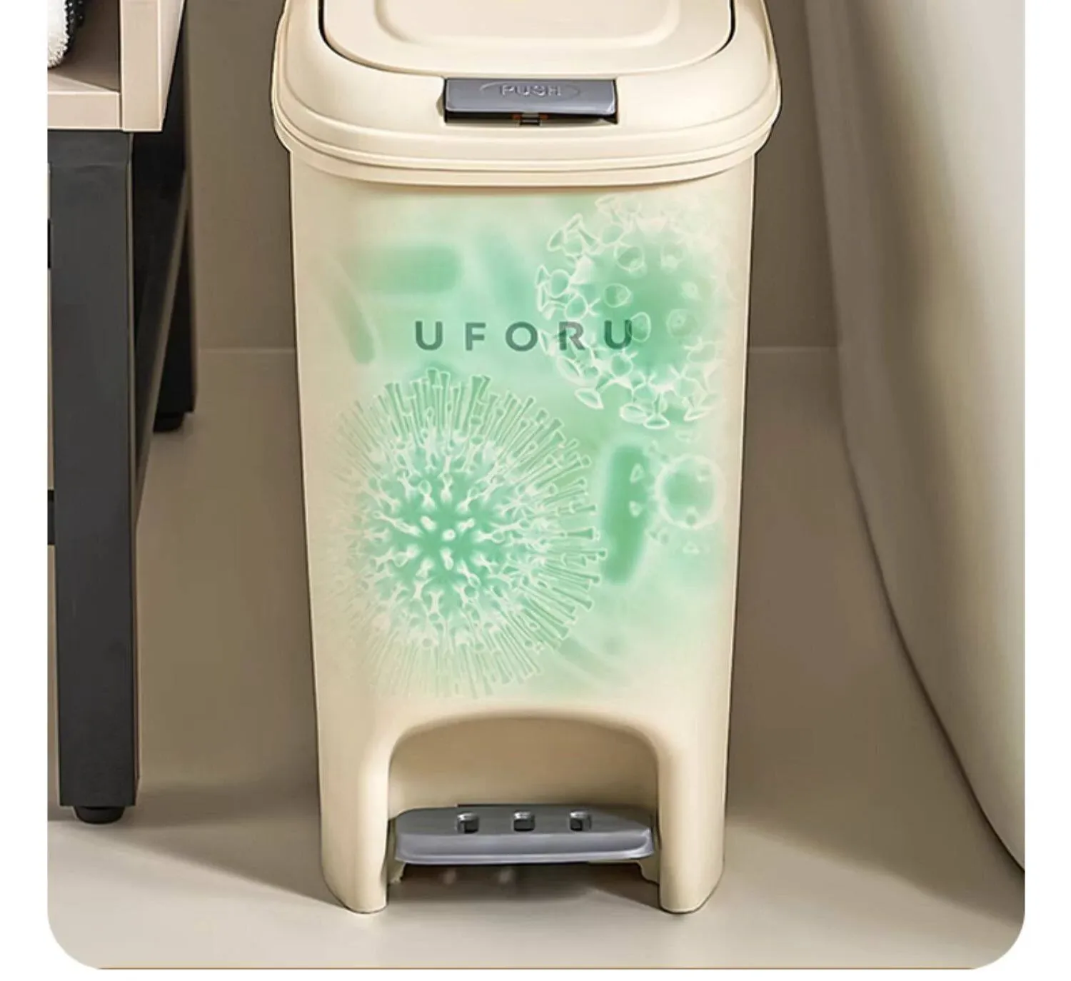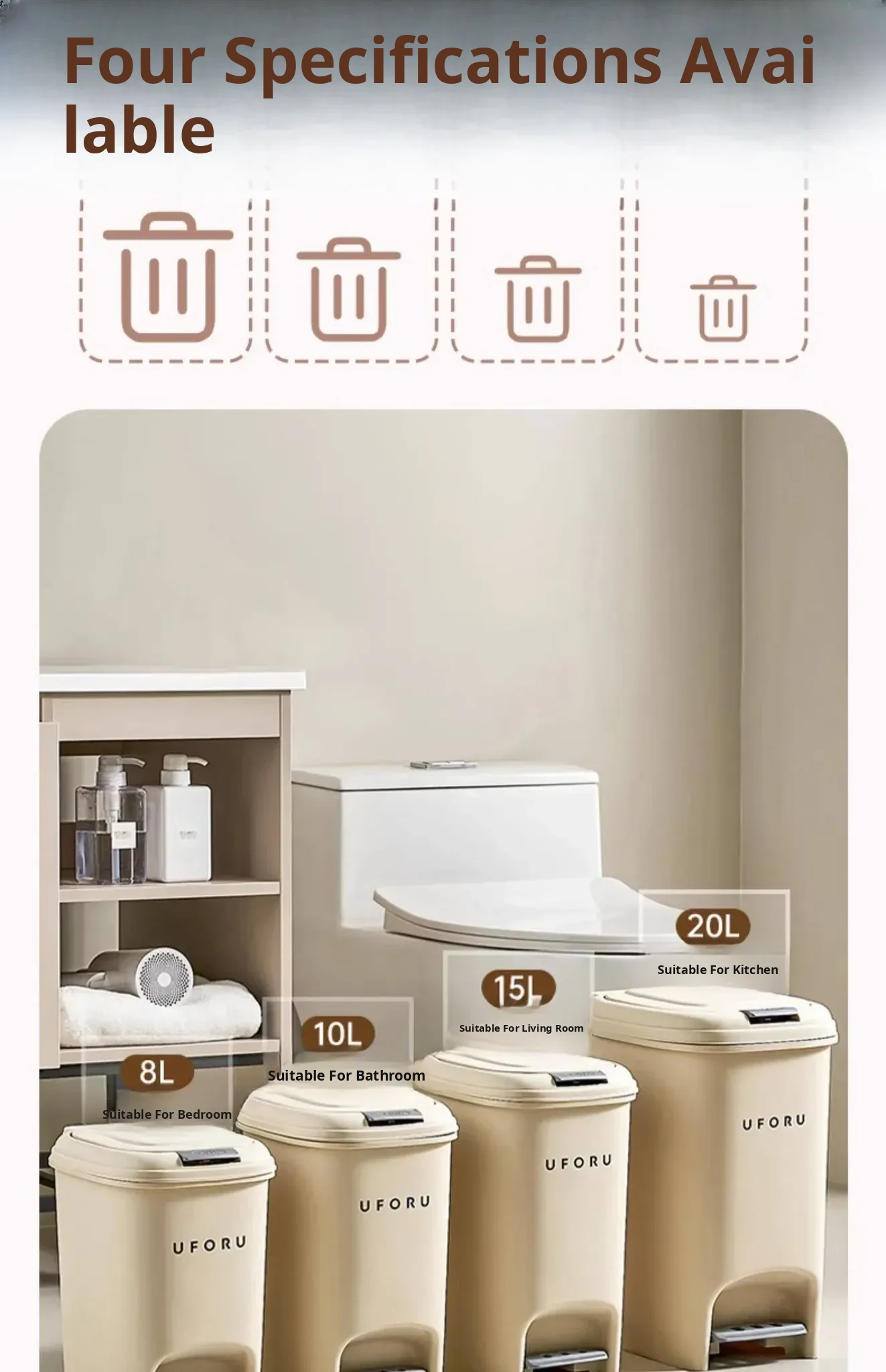 Creamy Foot-Pedal Trash Can - Stylish Large Capacity Waste Bin with Lid for Home, Kitchen, Living Room, Bathroom, and Toilet - Perfect Blend of Elegance and Functionality