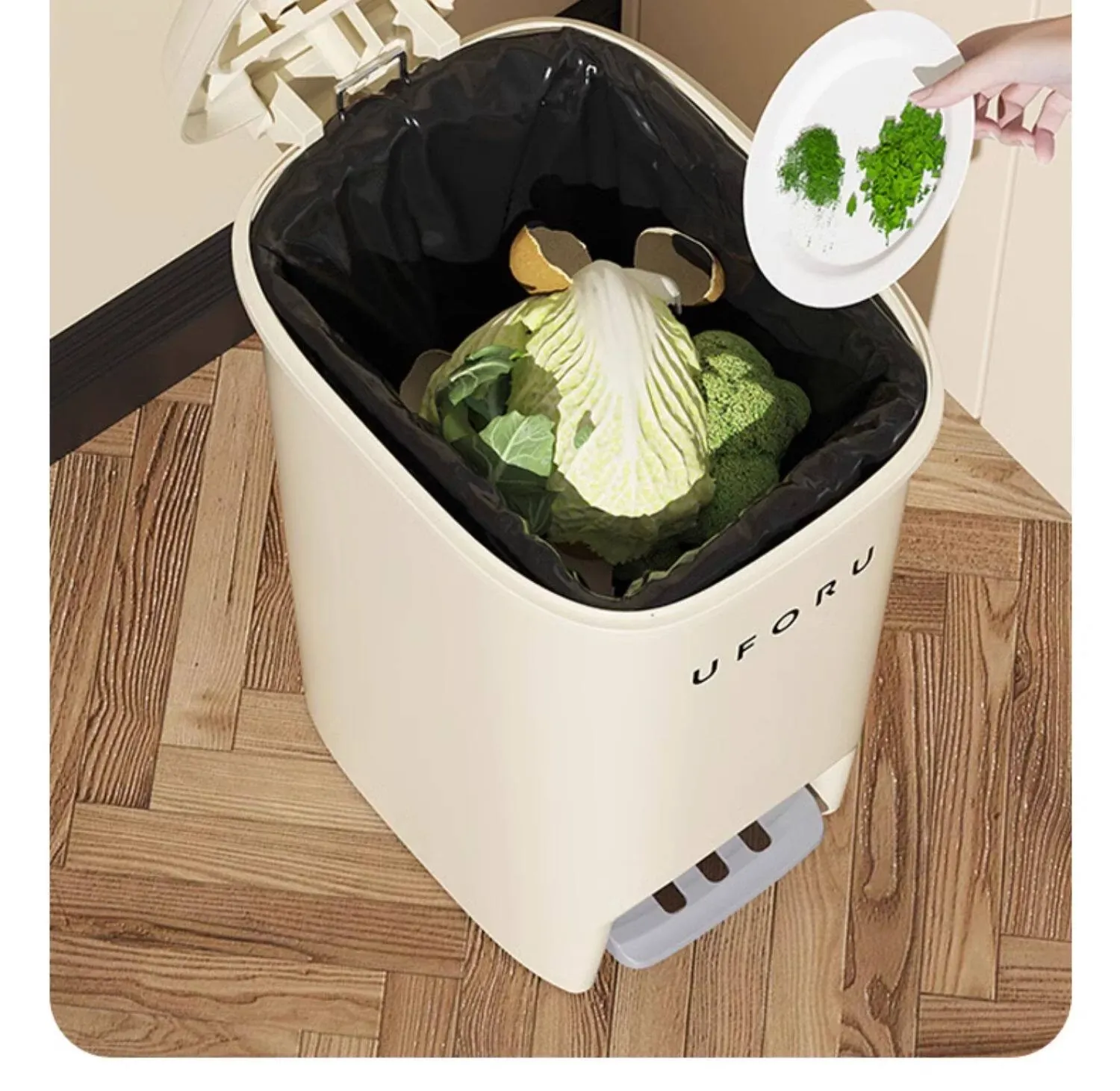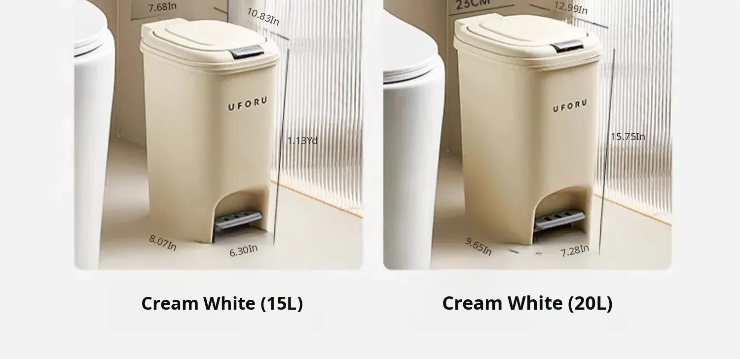 Hand Press + Foot Pedal Trash Can-15L+20L [Cream White]