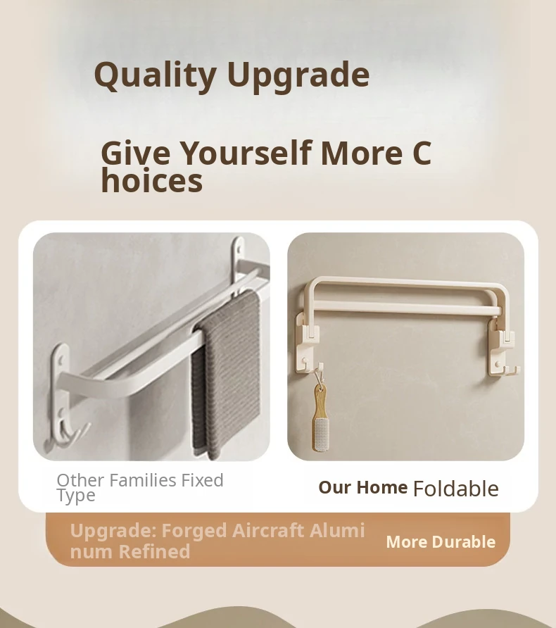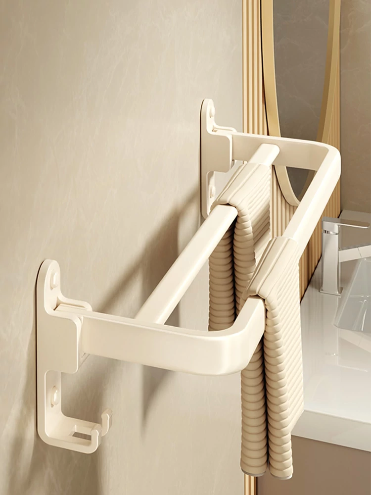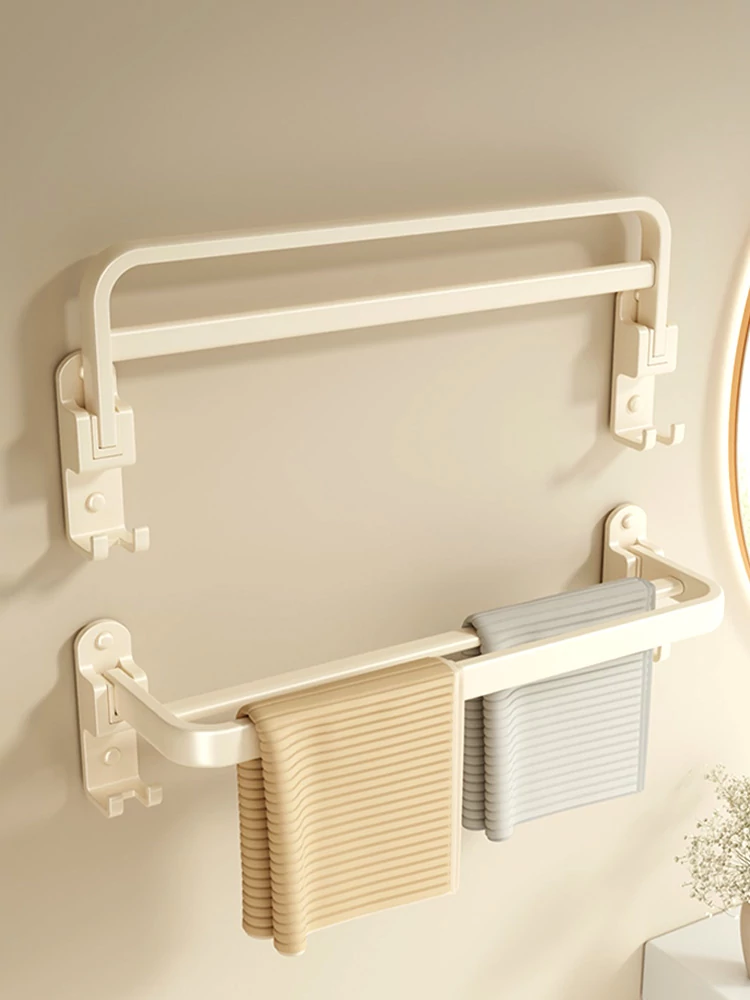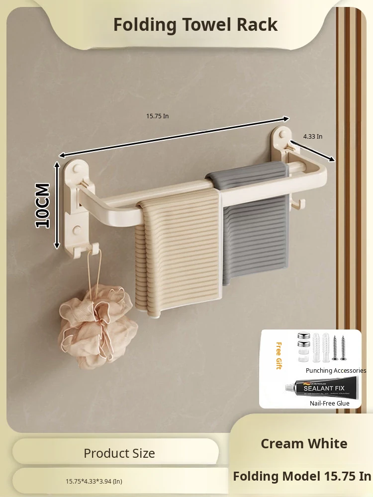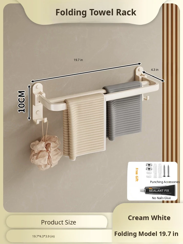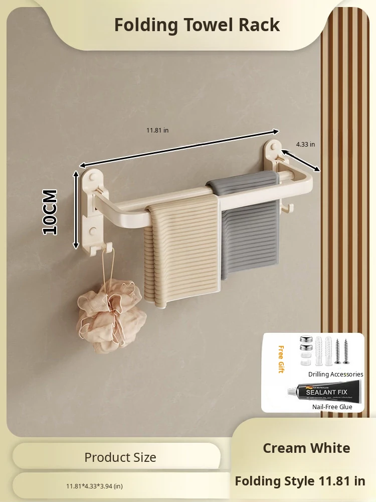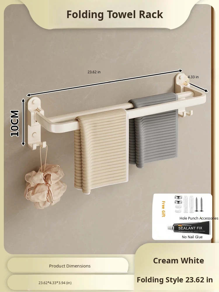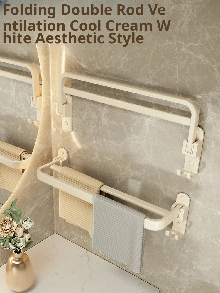 Creamy Wind Towel Rack - No Drill Foldable Towel Hanging Rod for Bathroom, Space-Saving Storage Organizer for Sink Area, Wall-Mounted Solution for Your Bath Essentials