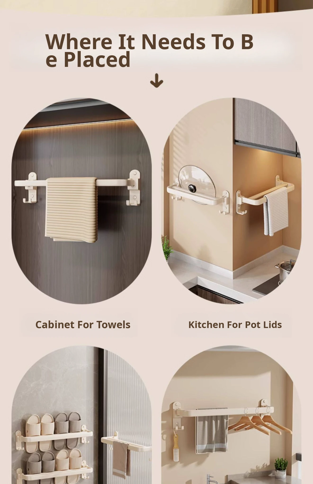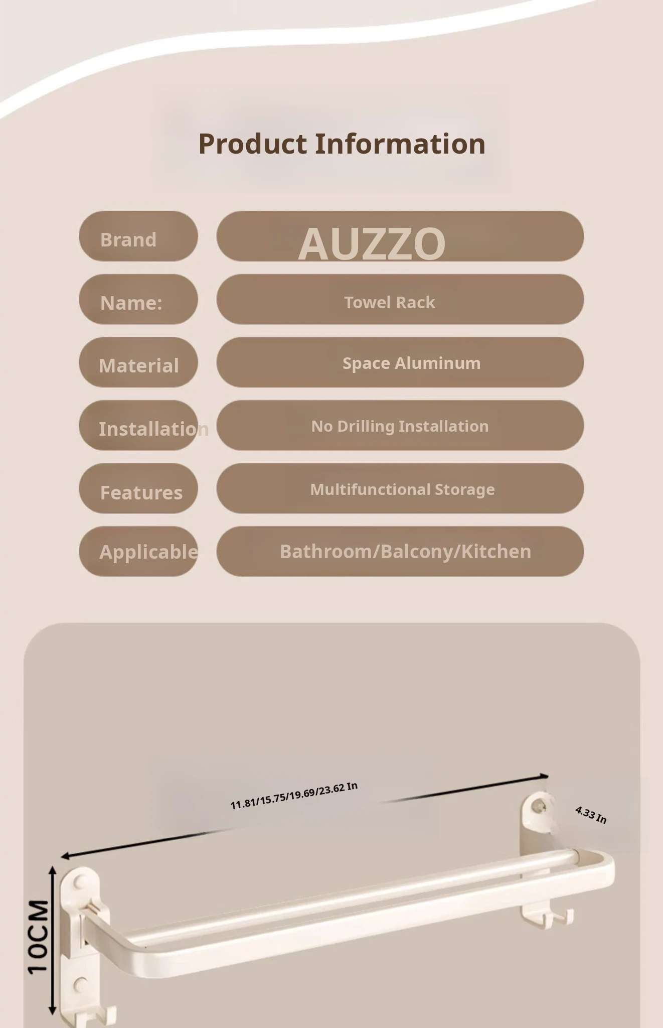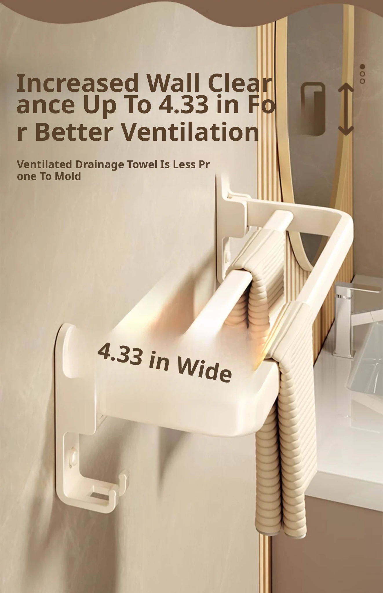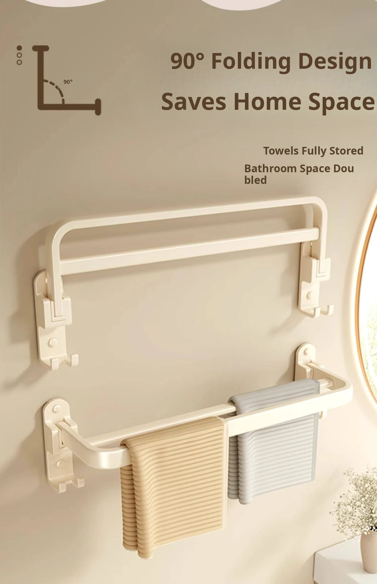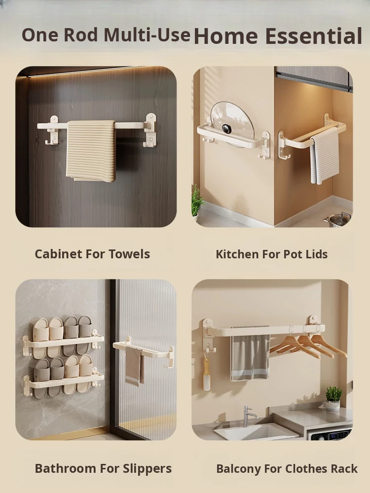 Creamy Wind Towel Rack - No Drill Foldable Towel Hanging Rod for Bathroom, Space-Saving Storage Organizer for Sink Area, Wall-Mounted Solution for Your Bath Essentials