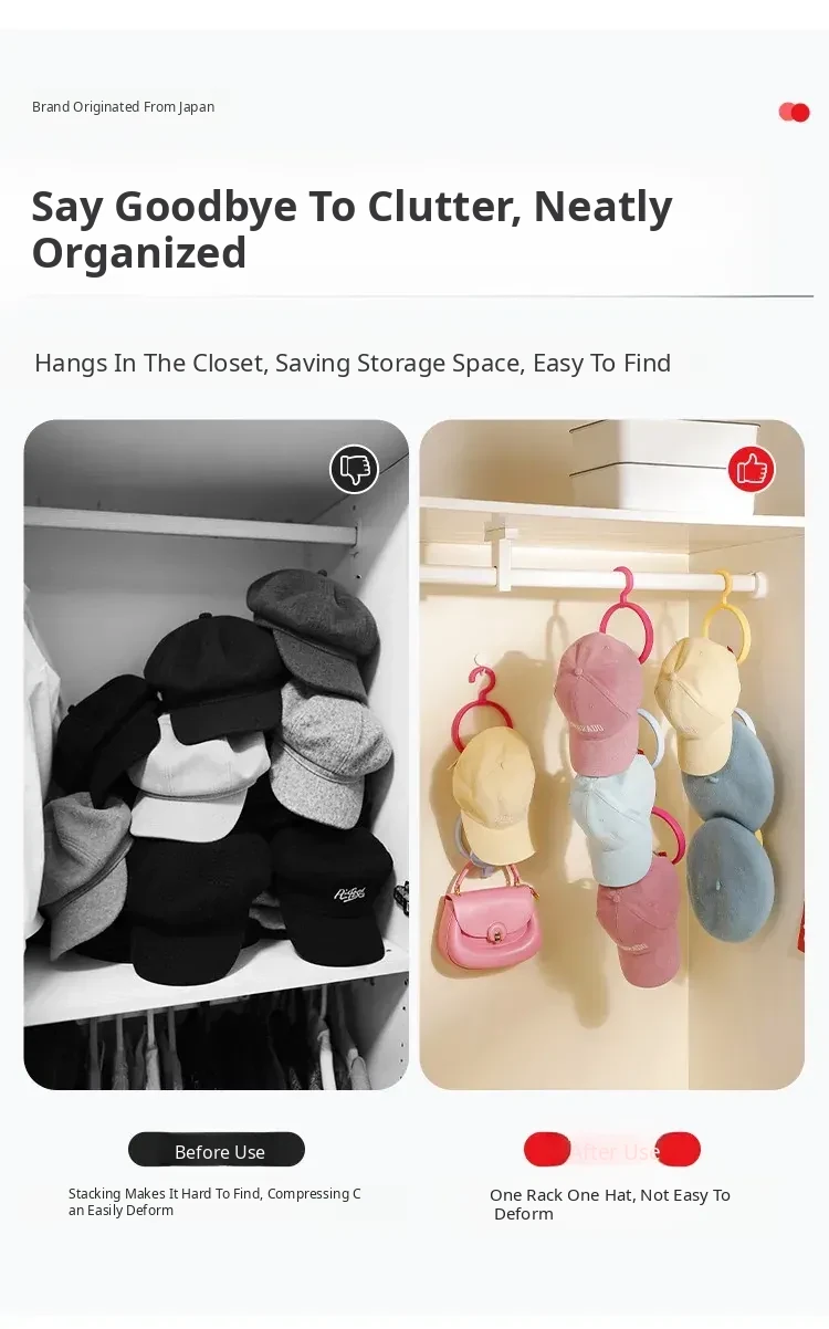 Dopamine Cap Organizer - Home Door & Closet Hat Rack for Baseball Caps and Snapbacks, Keeps Your Hats in Shape with Stylish Display Hooks