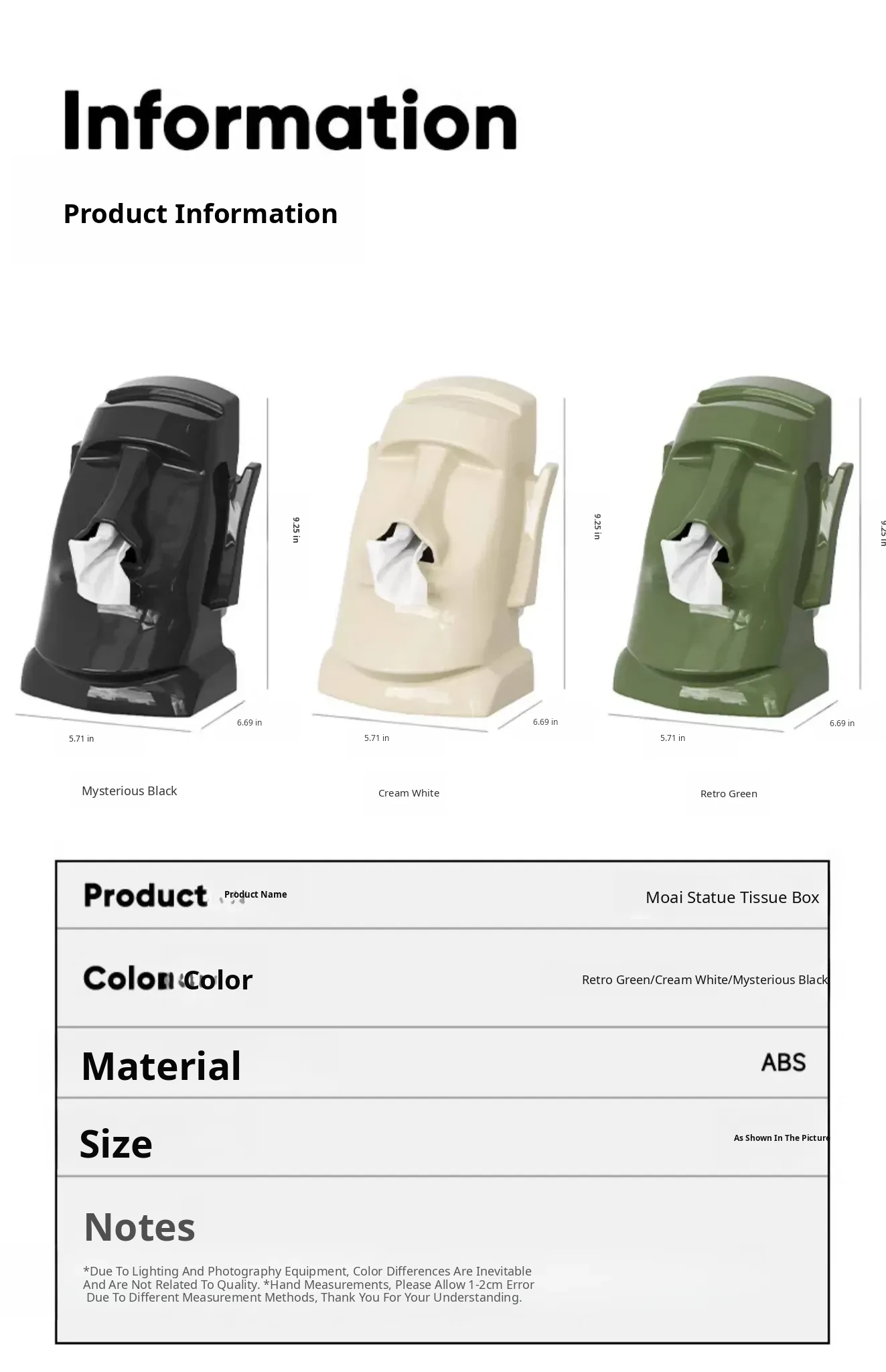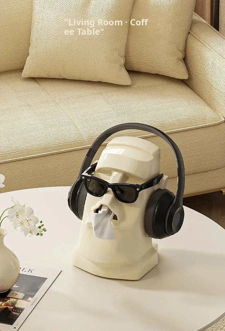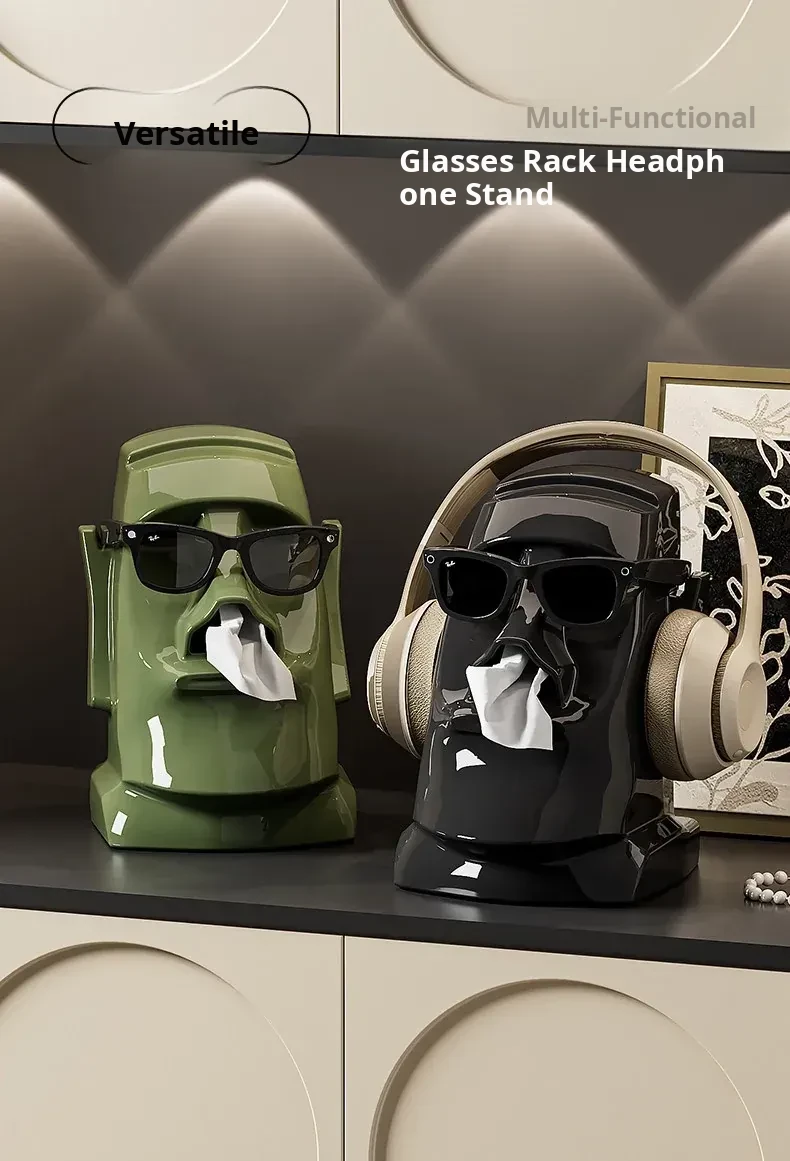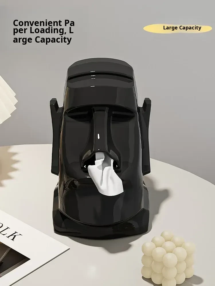 Easter Island Moai Statue Tissue Box - Creative and Unique Design, Perfect for Living Room Coffee Table Decor, Chic Luxury Home Accessory