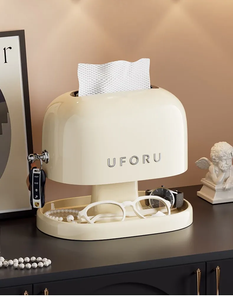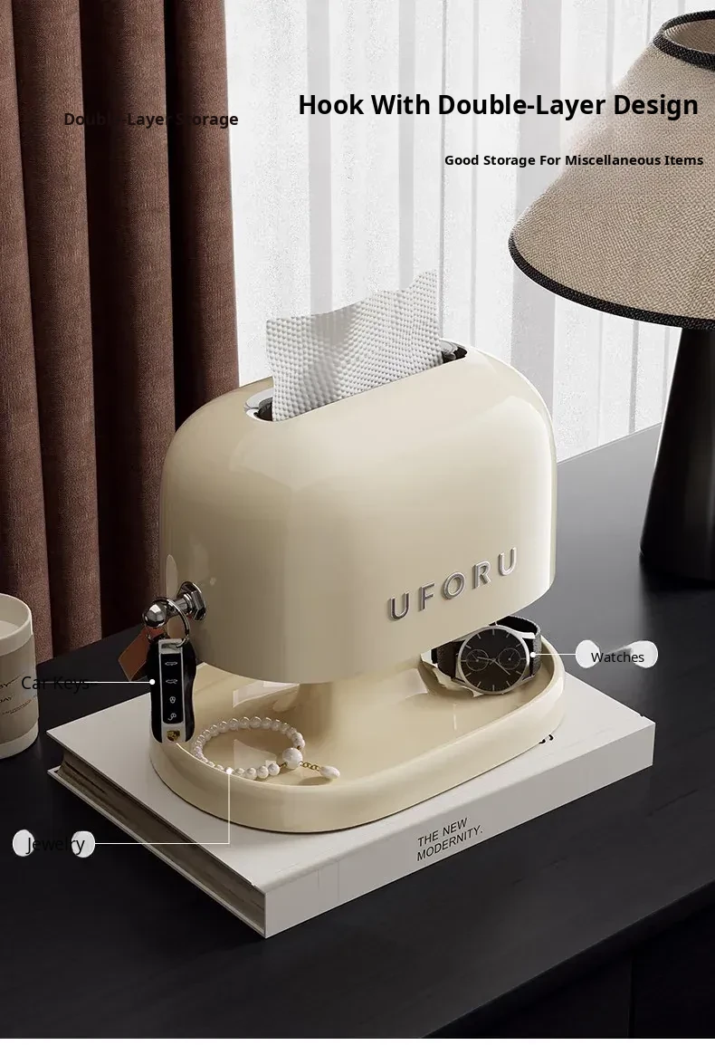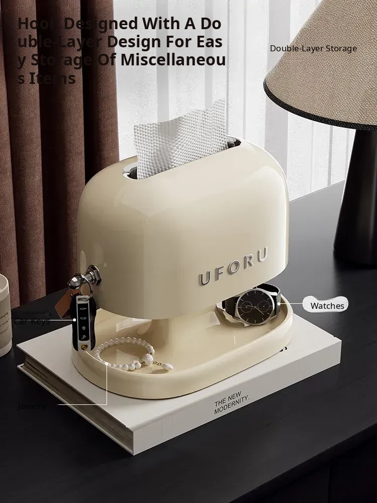 Elegant Double-Layer Cream White Tissue Box - Stylish Desktop Organizer for Living Room and Bedroom, Perfect for Coffee Tables and Home Décor