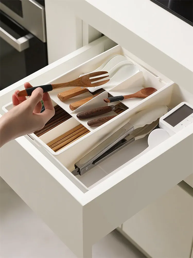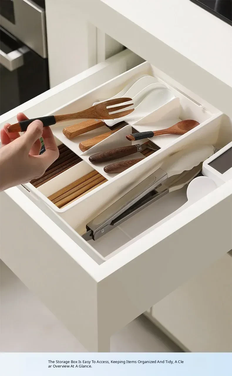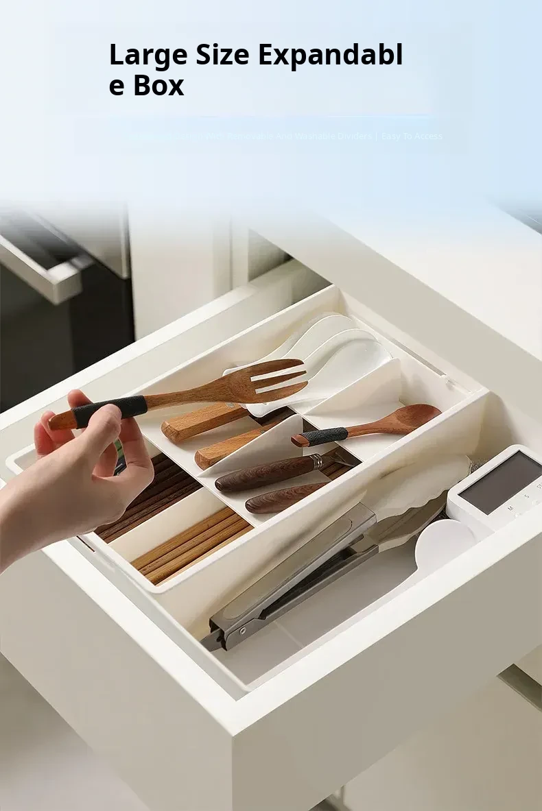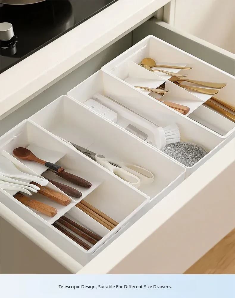 Expandable Drawer Organizer for Cosmetics - Versatile Storage Box with Built-in Dividers for Kitchen Cabinets and Office Organization. Perfect for Makeup and Clutter-Free Spaces!