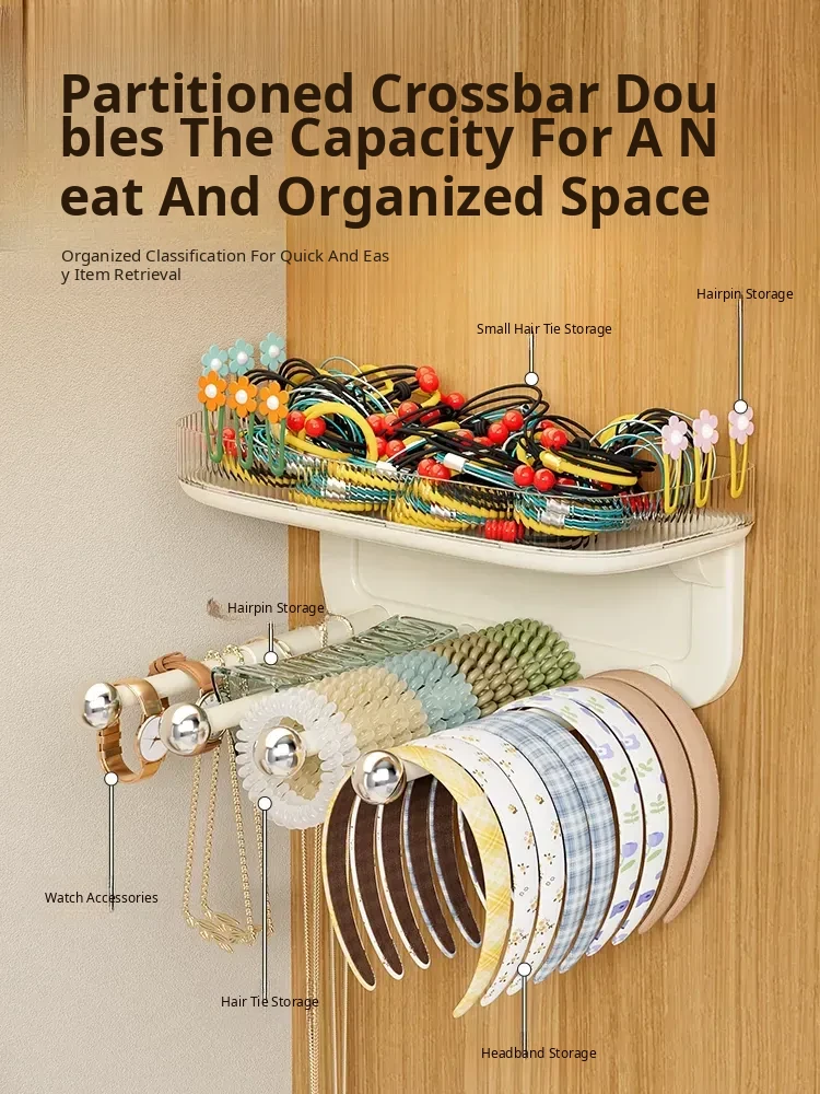 Hair Accessory Organizer - Wall-Mount Storage for Headbands, Clips, and Hair Ties - Perfect for Bathrooms and Jewelry Display - Keep Your Hair Essentials Neat and Tidy!