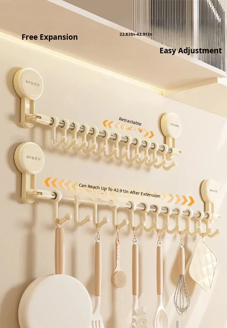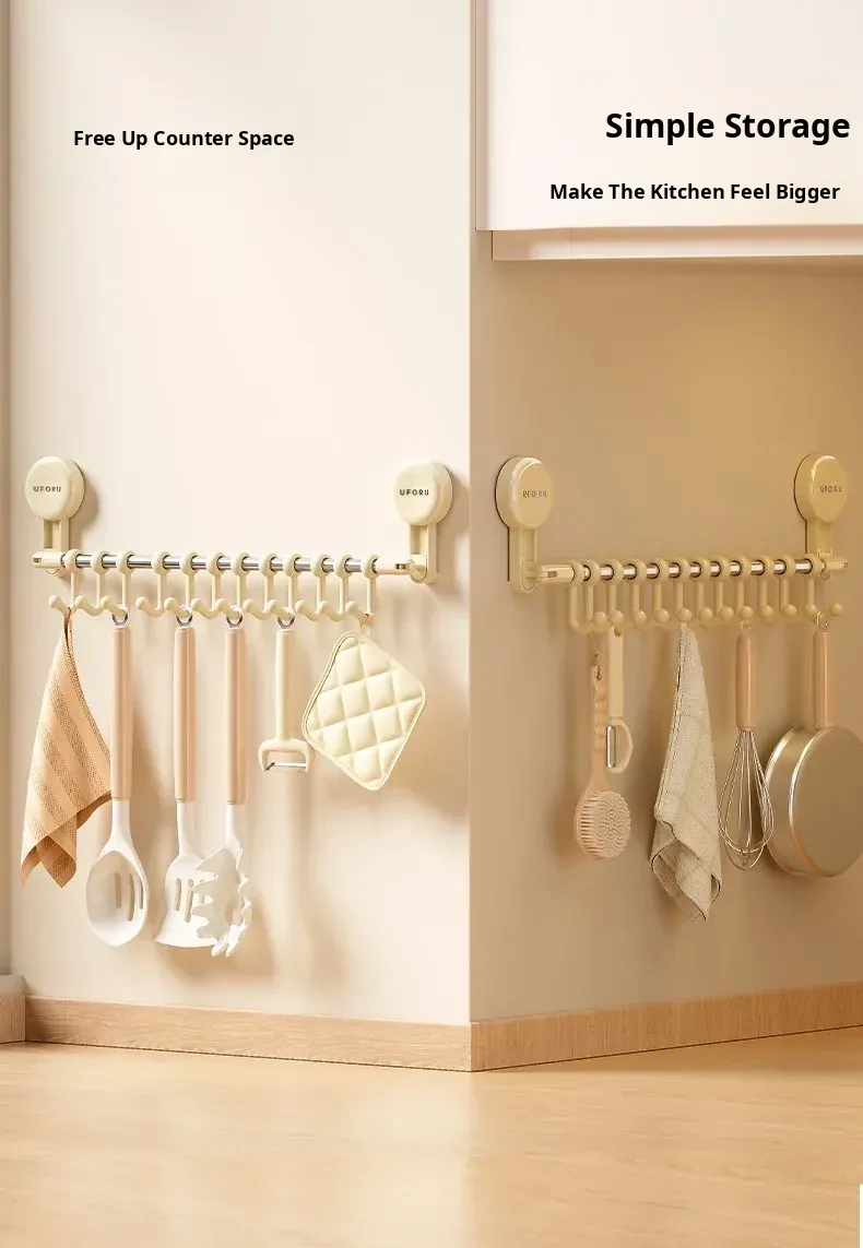 Kitchen Utensil Organizer with Hooks - Wall-Mounted Rack for Spatulas, Knives, and Spoons - Space-Saving Adhesive Hooks for Cabinets and Countertops - Keep Your Kitchen Tidy and Efficient!