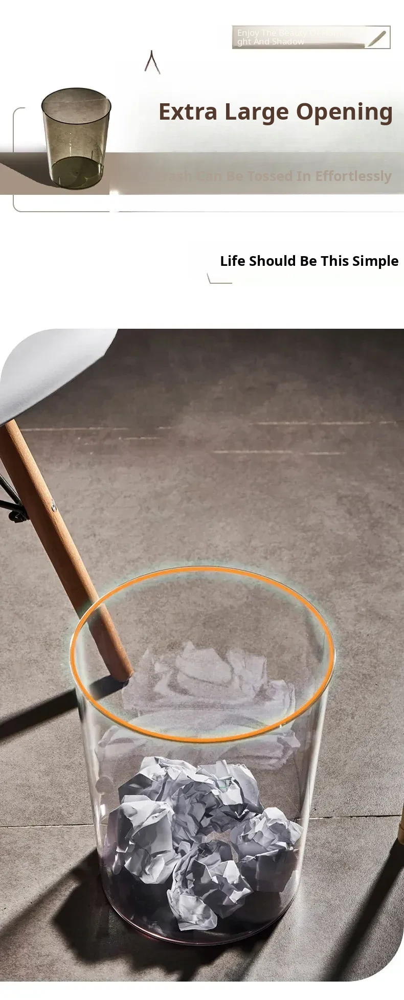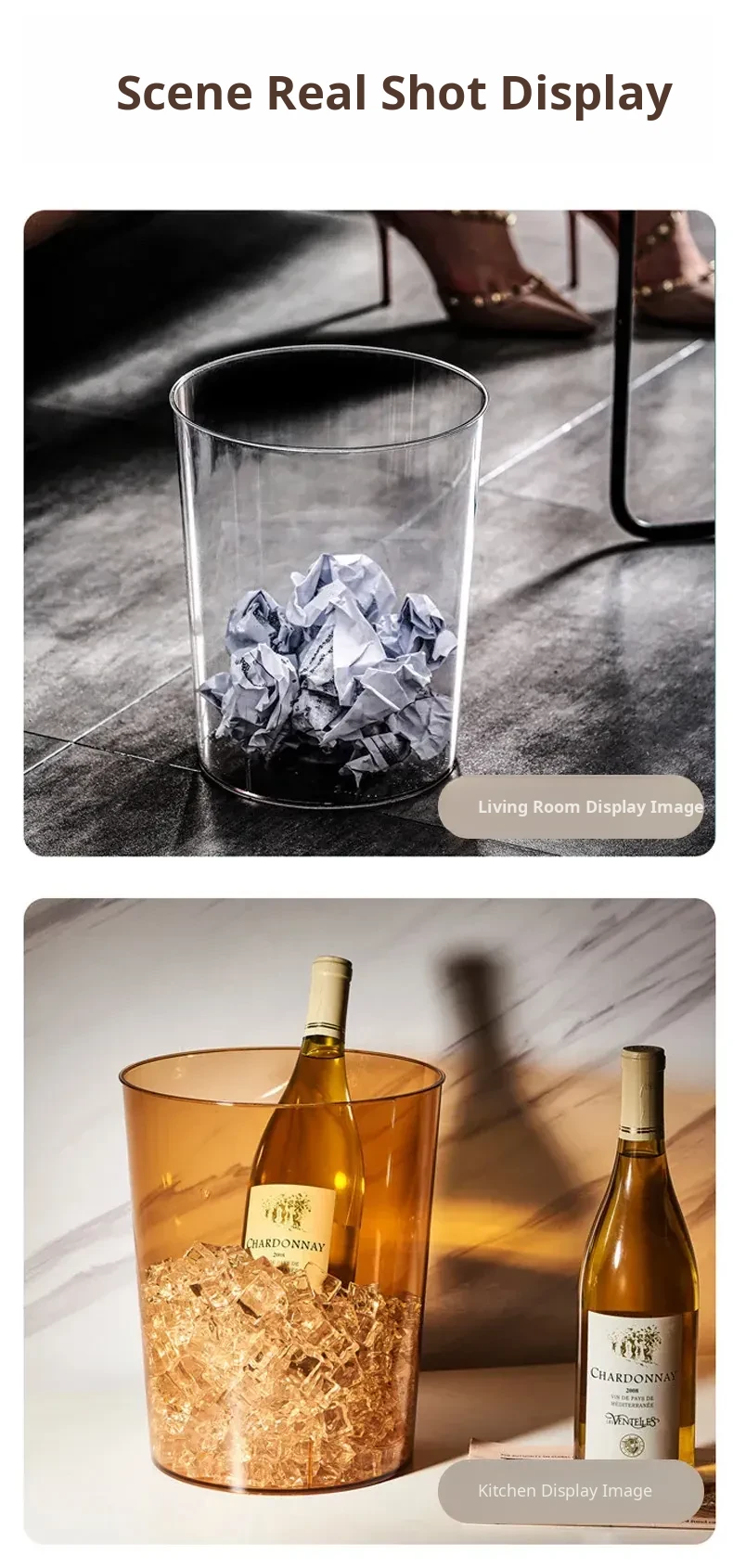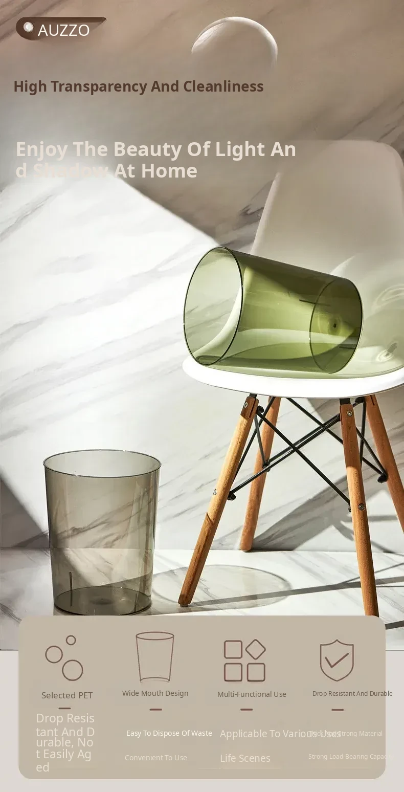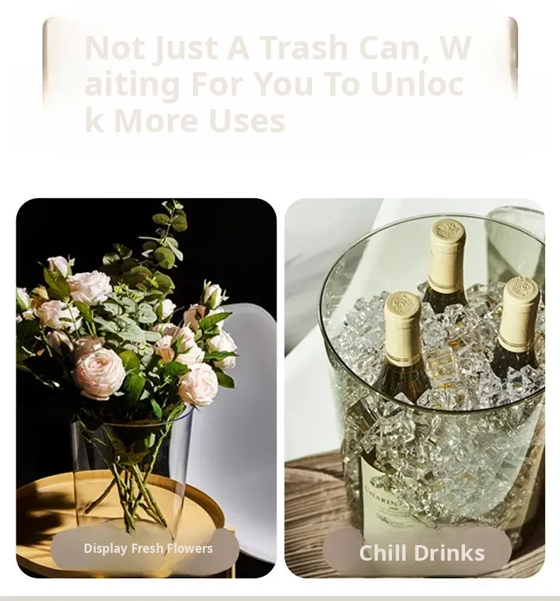Luxury Transparent Trash Can for Home - Spacious Design for Kitchen, Bedroom, Bathroom, Toilet, Office, and Living Room - Ideal Large Capacity Waste Bin for Stylish Organization
