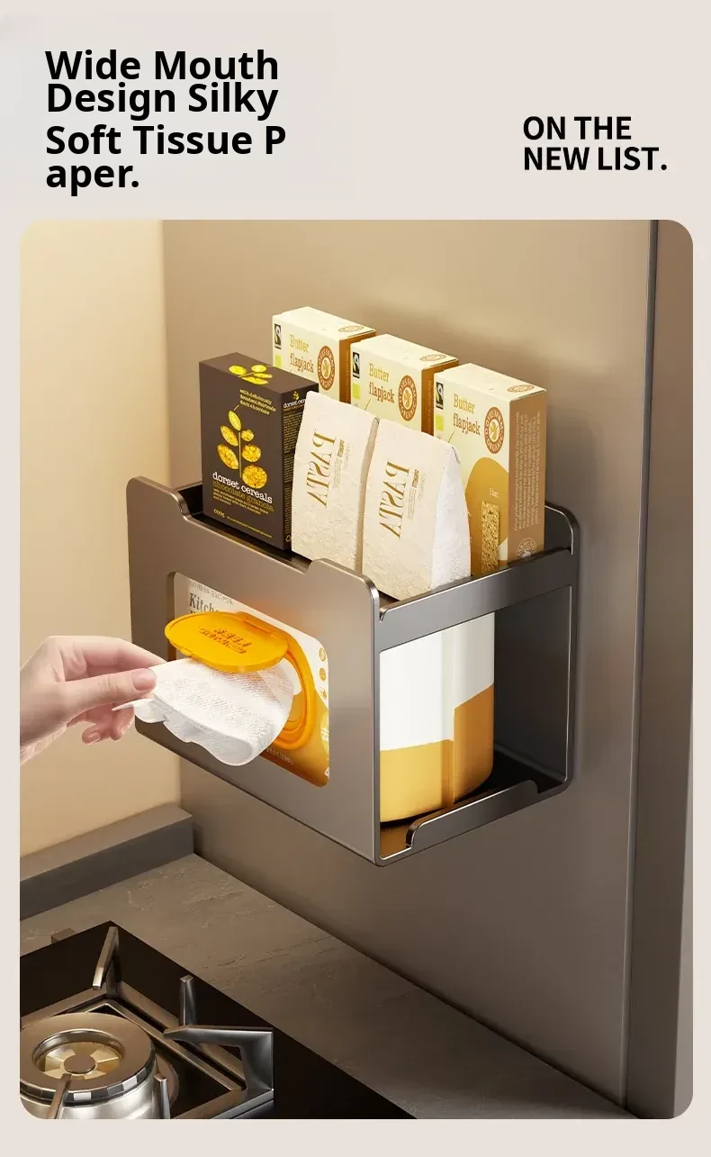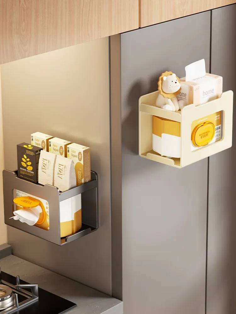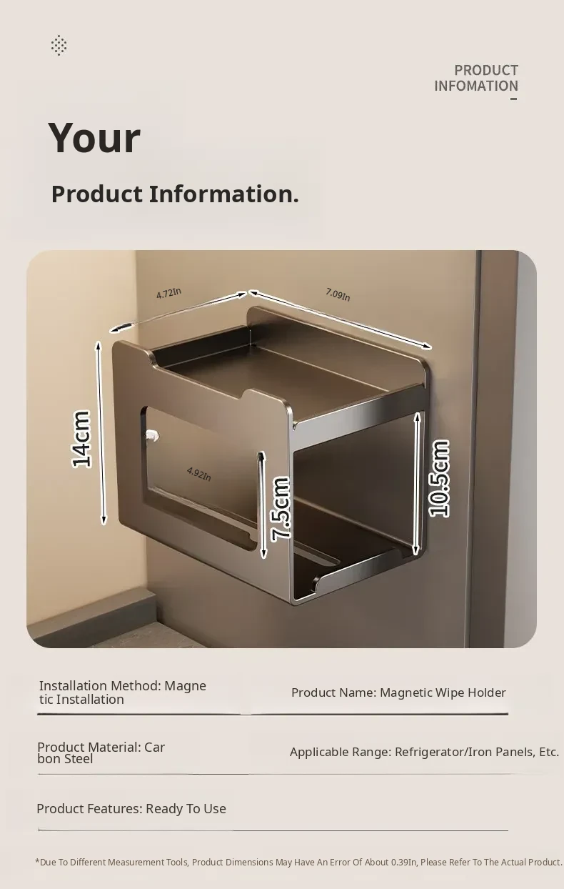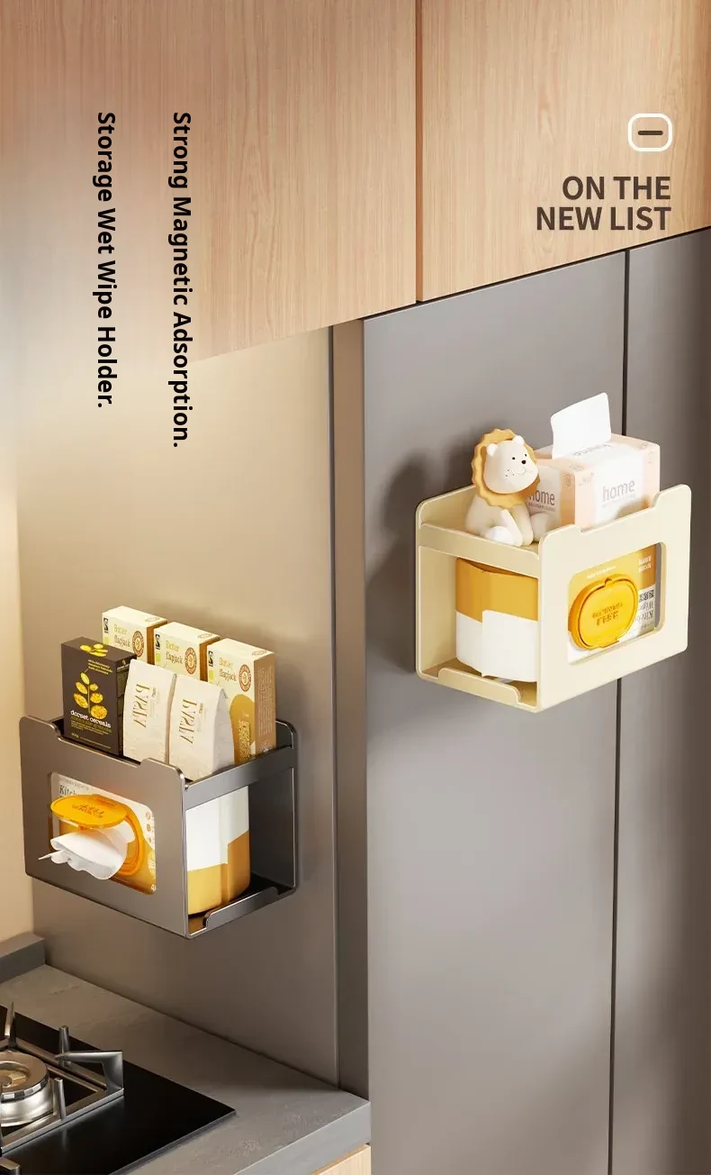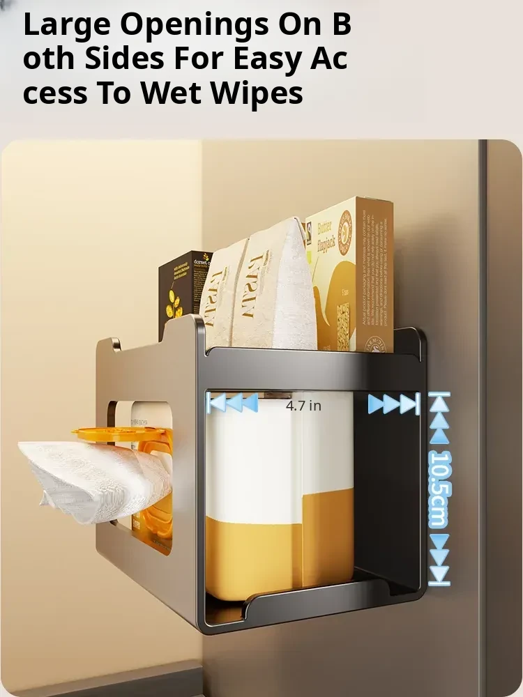 Magnetic Side-Mount Wet Wipes Holder - No Drill Kitchen Tissue Organizer for Easy Access to Moist Towels and Toilet Paper, Perfect for Refrigerators and Compact Spaces!