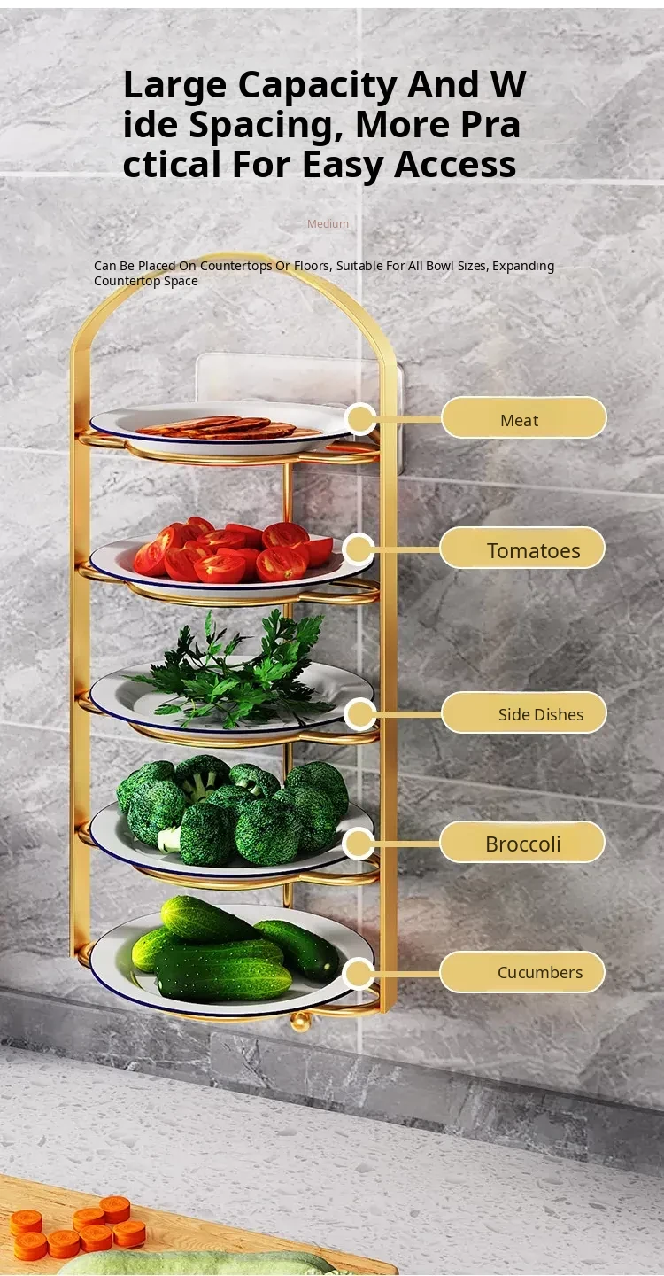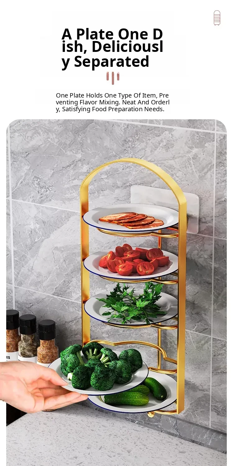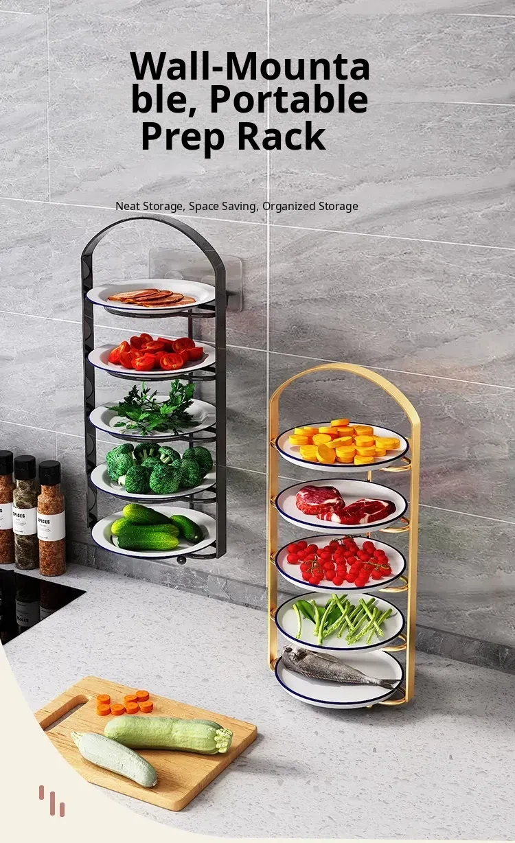 Multi-Functional Kitchen Organizer Rack - Space-Saving Wall-Mounted Vegetable Storage Shelf for Meal Prep and Cooking, Perfect for Plates and Ingredients!
