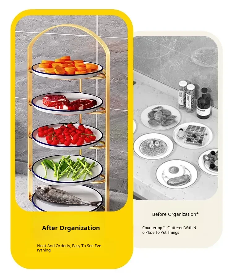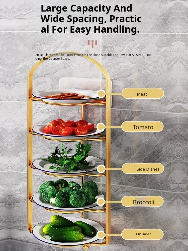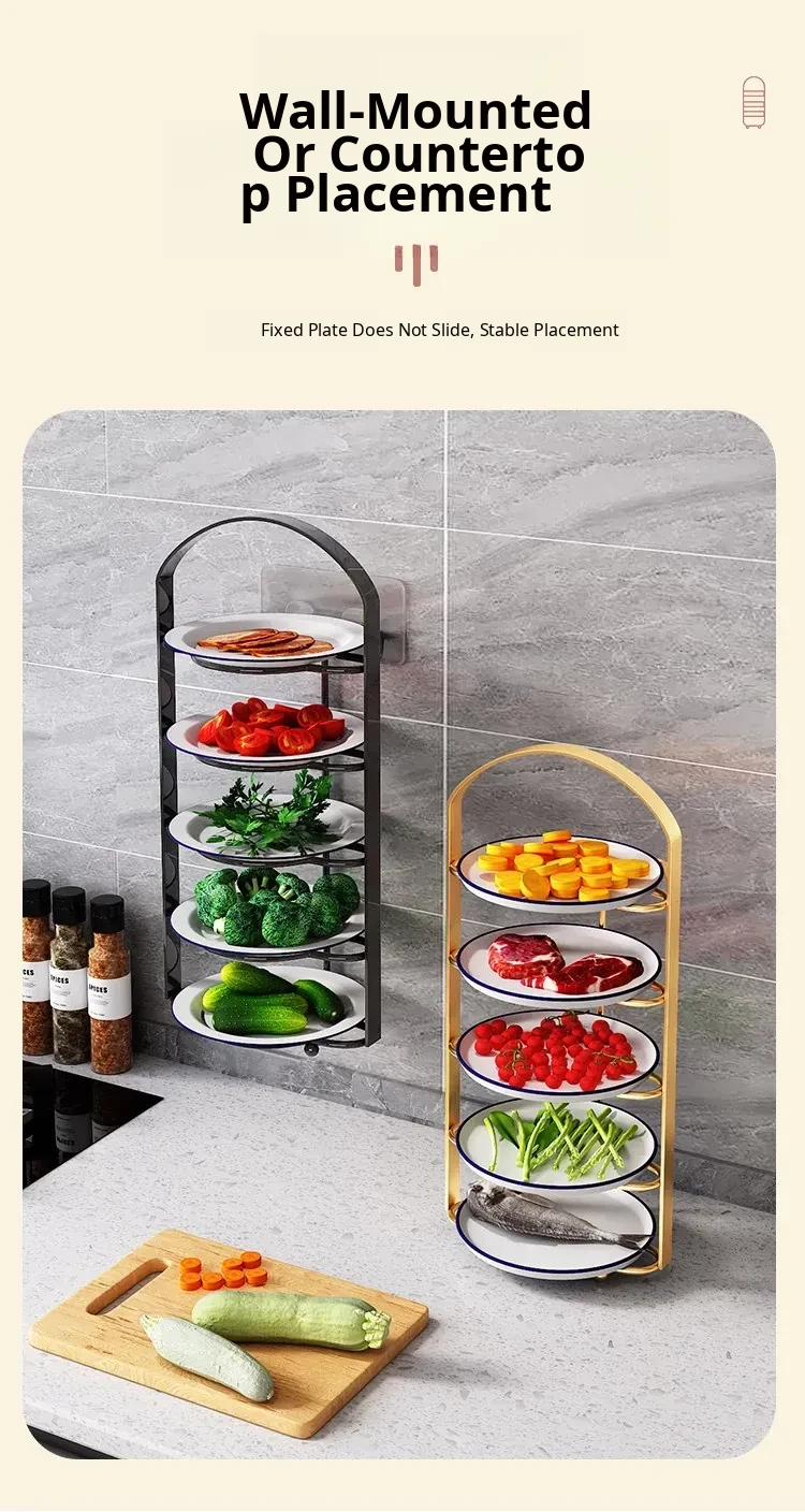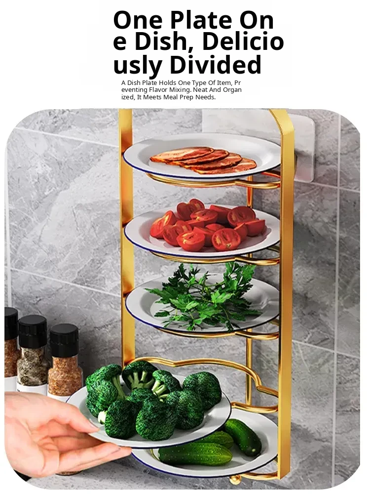 Multi-Functional Kitchen Organizer Rack - Space-Saving Wall-Mounted Vegetable Storage Shelf for Meal Prep and Cooking, Perfect for Plates and Ingredients!