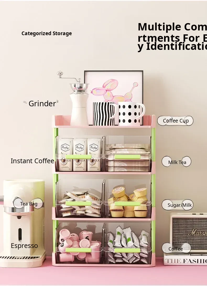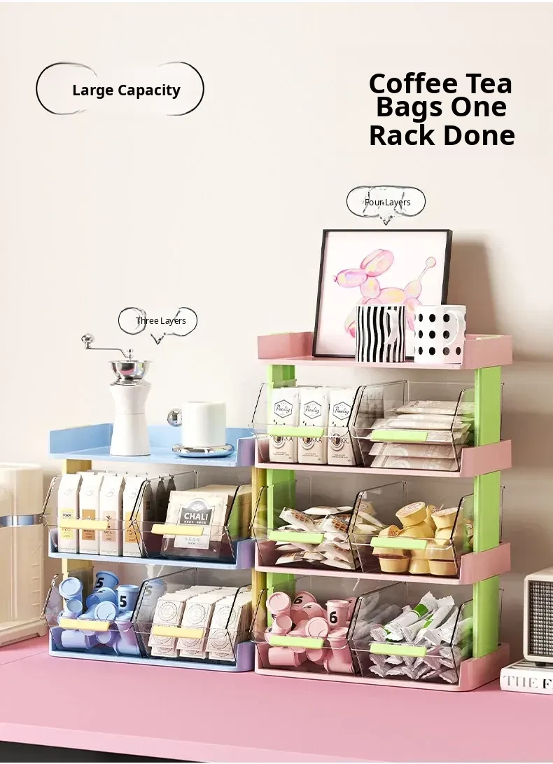 Multi-Layer Tea Bag and Coffee Capsule Organizer - Stylish Storage Box for Office Break Rooms and Desks, Perfect for Snacks and Tea Leaf Organization