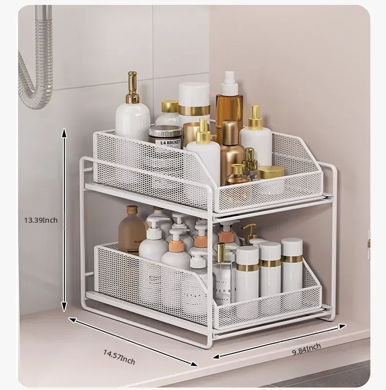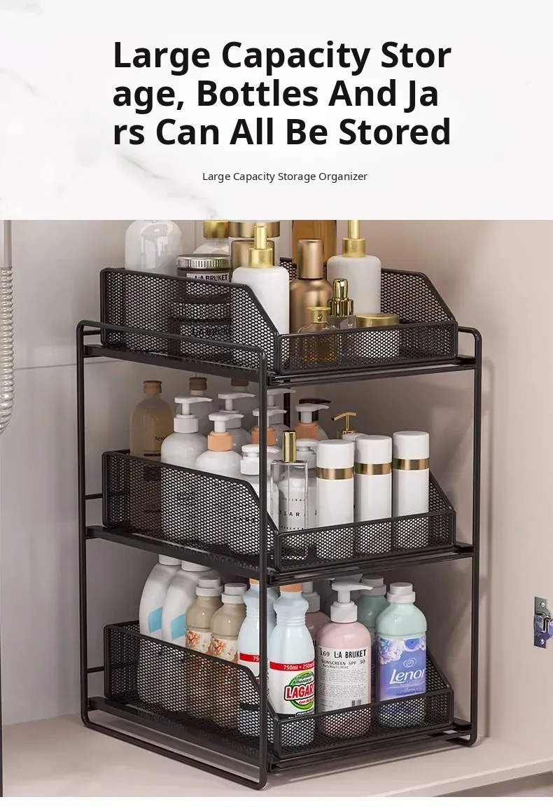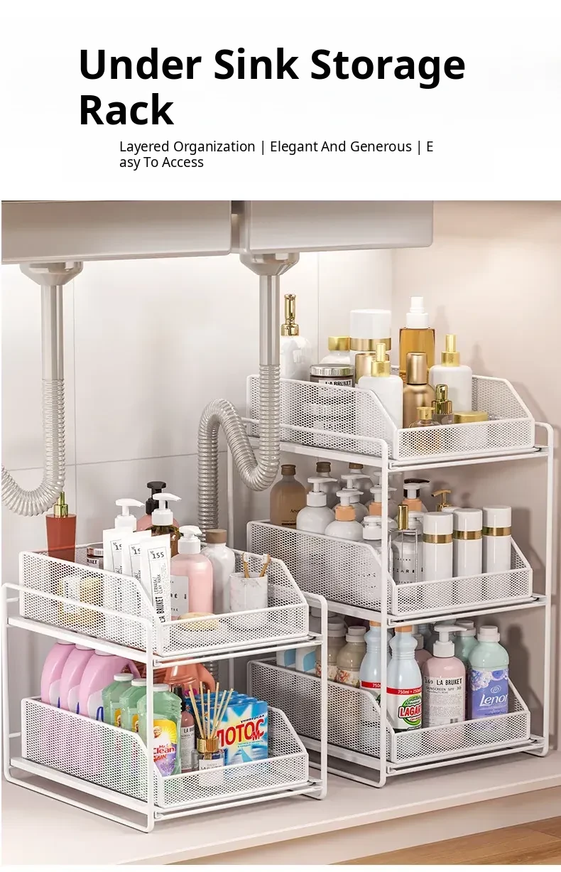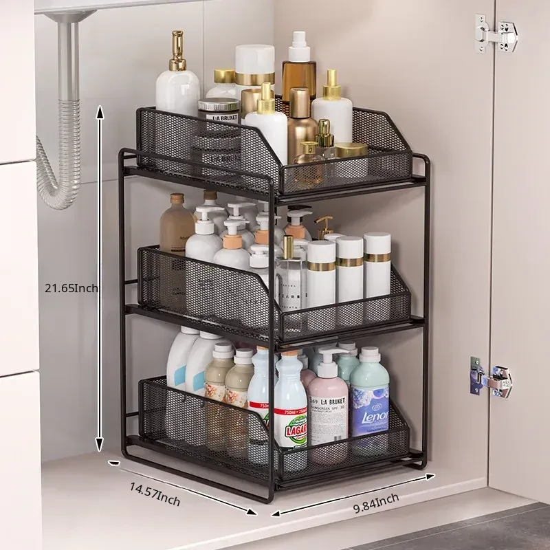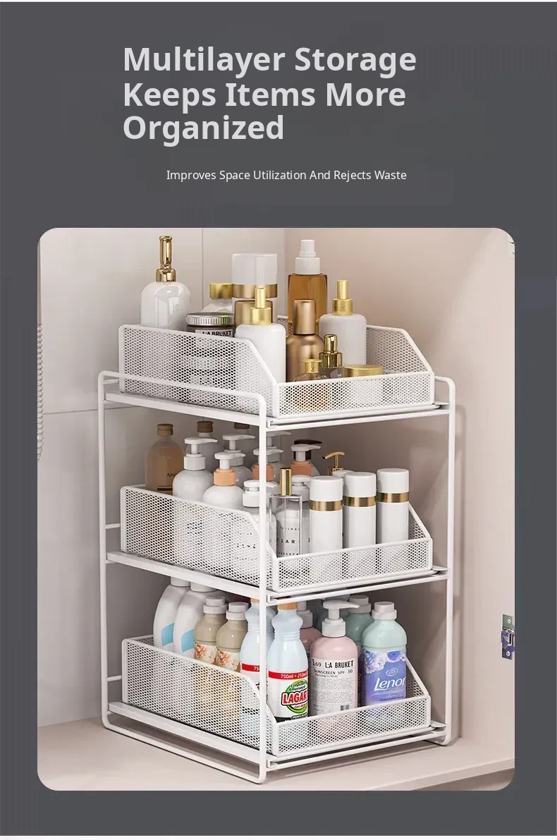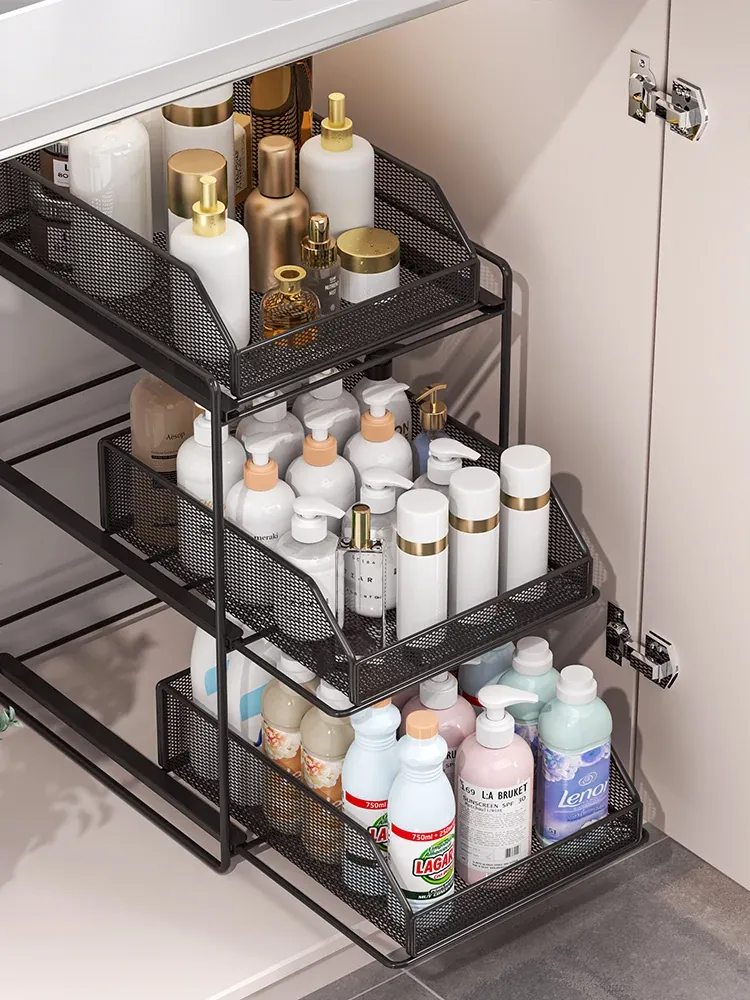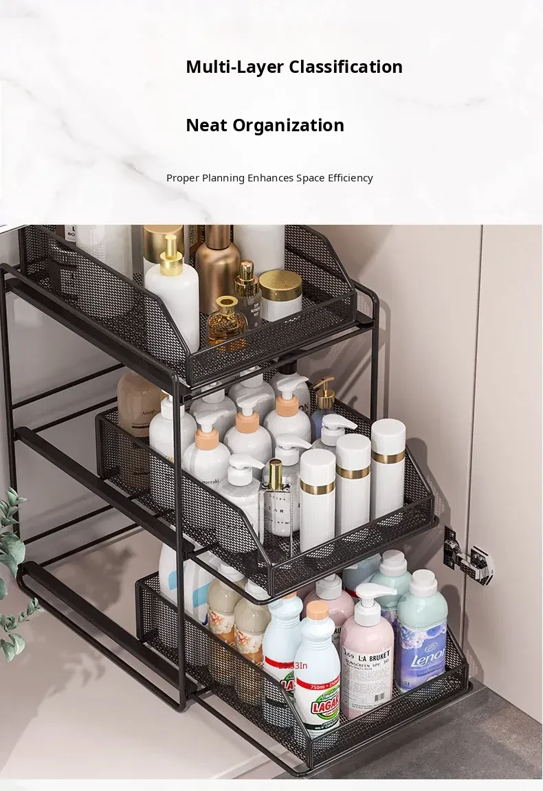 Multi-Tier Pull-Out Storage Rack for Bathroom Sink - Versatile Under-Sink Organizer with Divided Baskets for Efficient Bathroom Storage Solutions