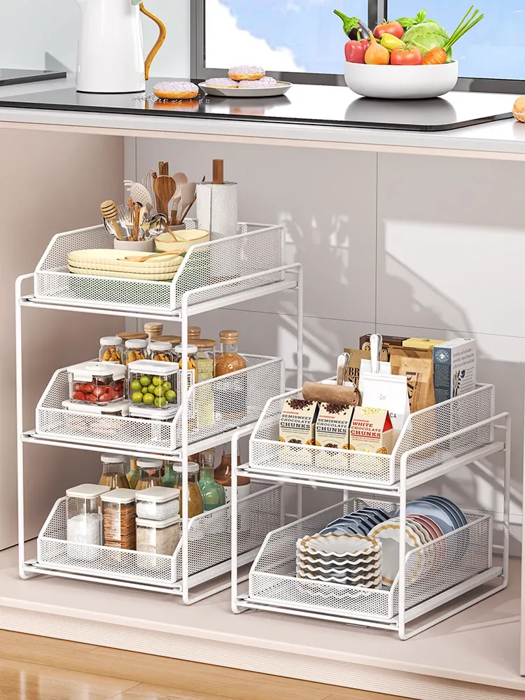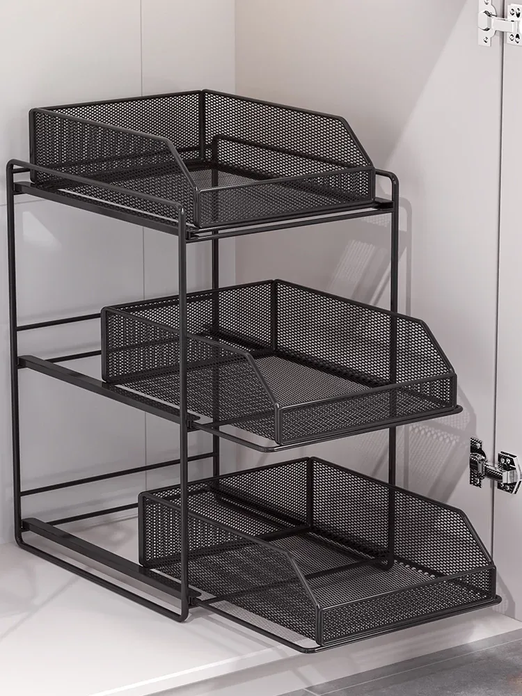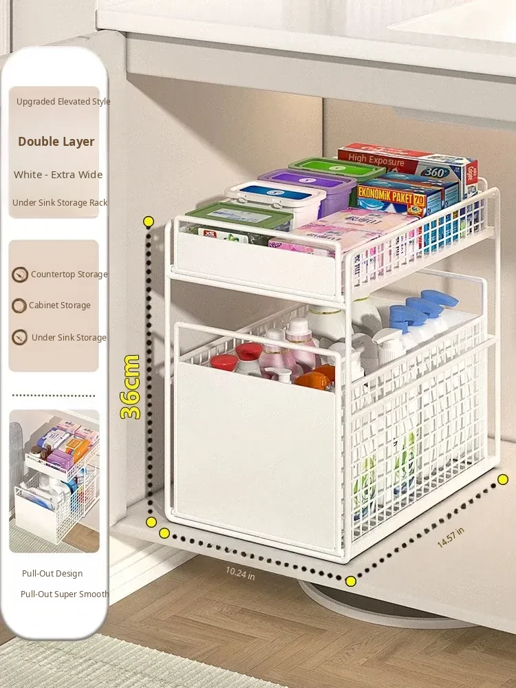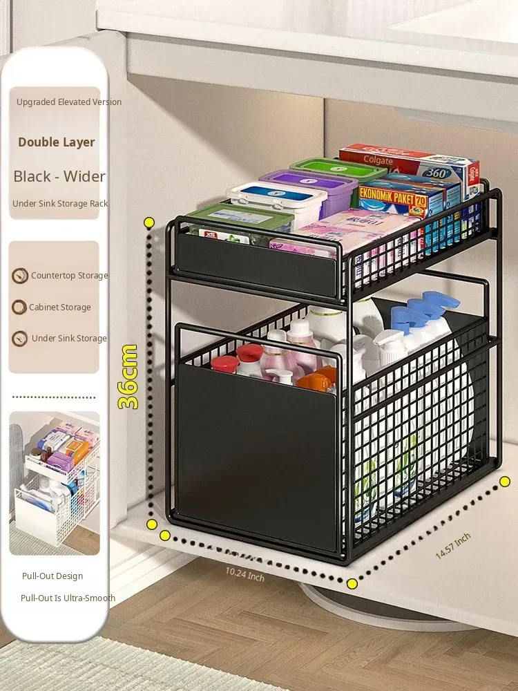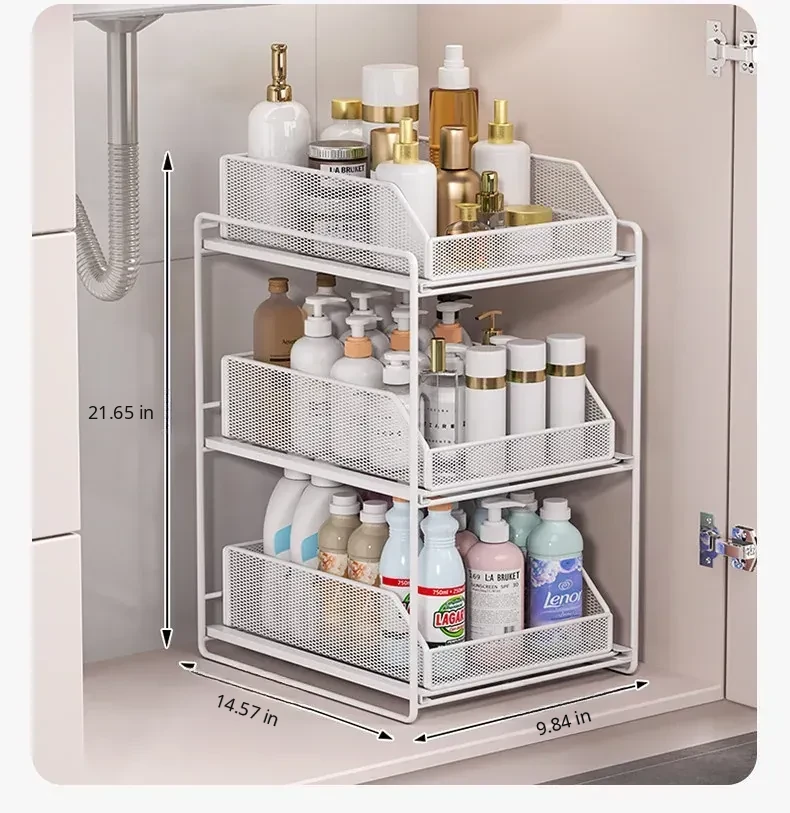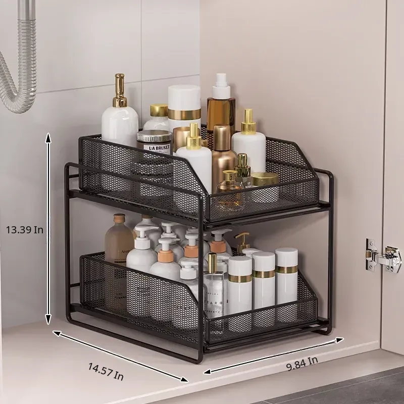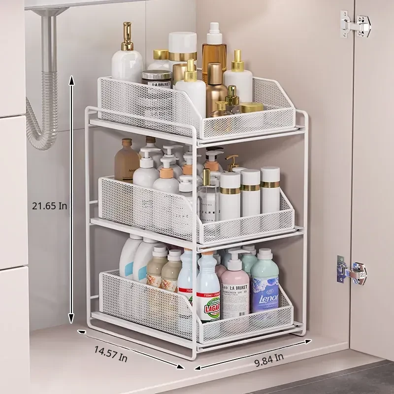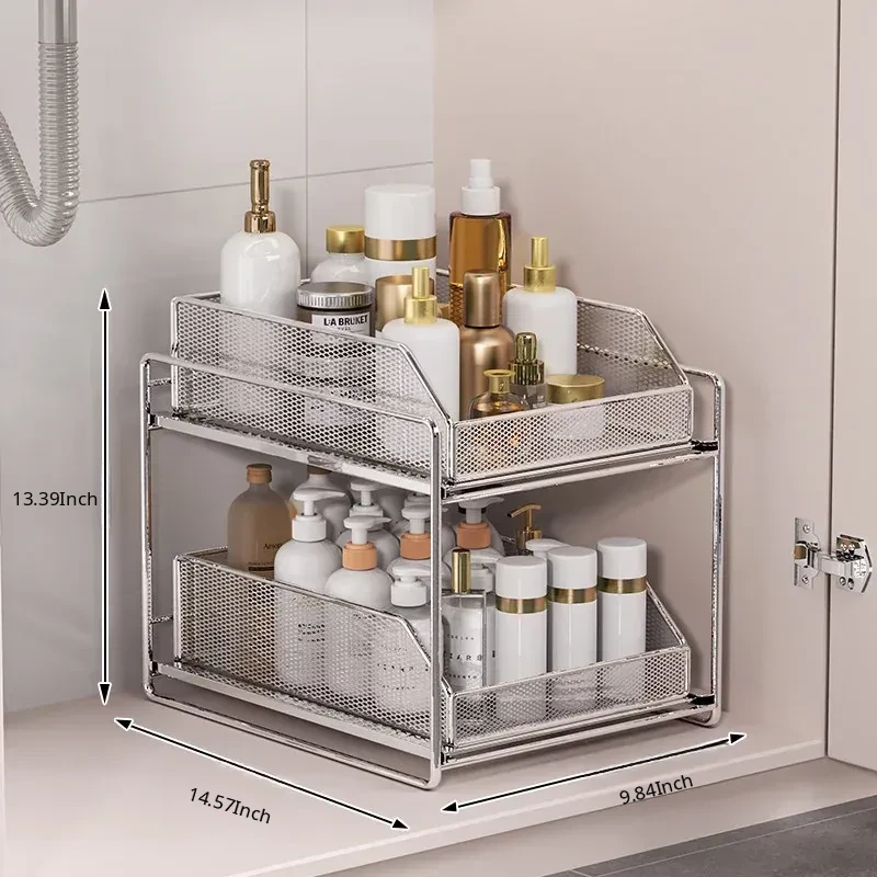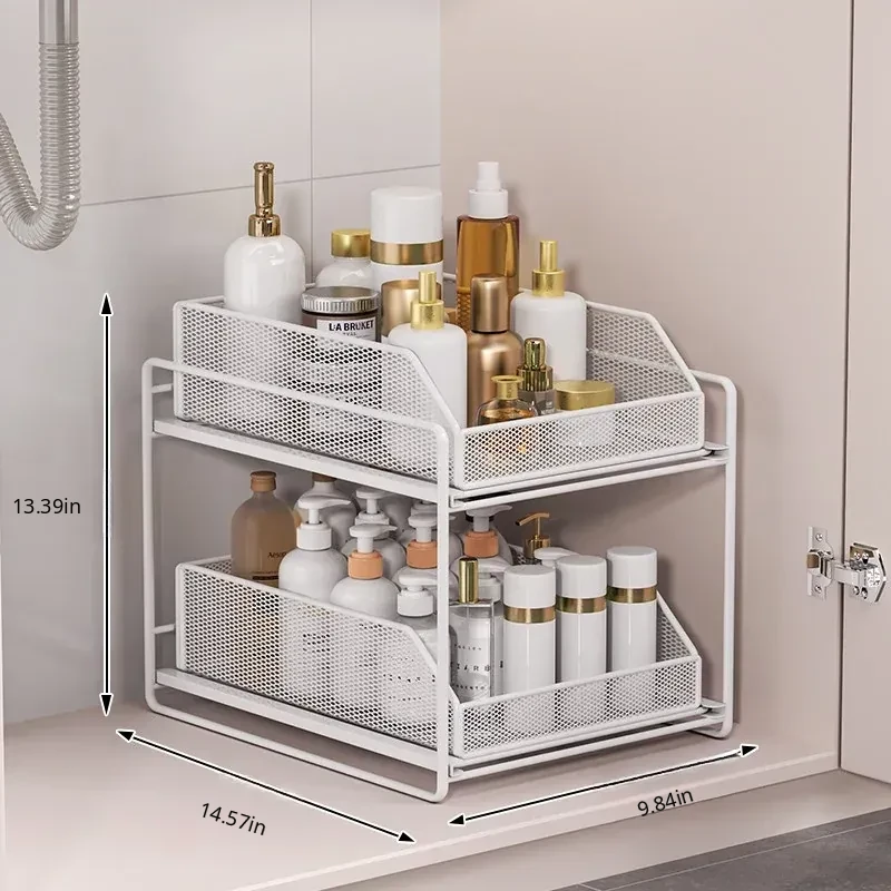 Multi-Tier Pull-Out Storage Rack for Bathroom Sink - Versatile Under-Sink Organizer with Divided Baskets for Efficient Bathroom Storage Solutions