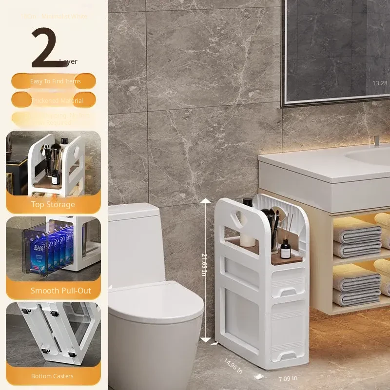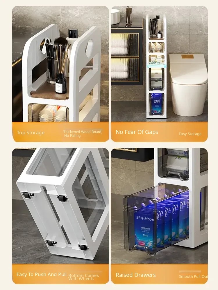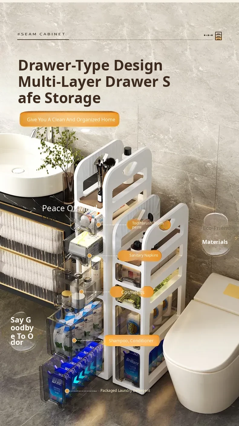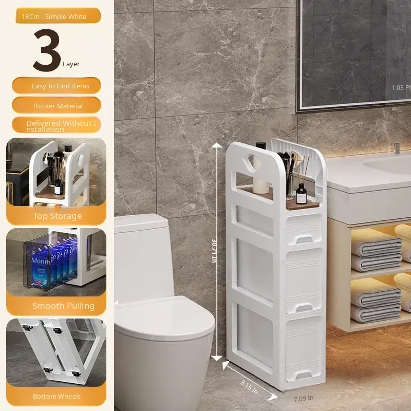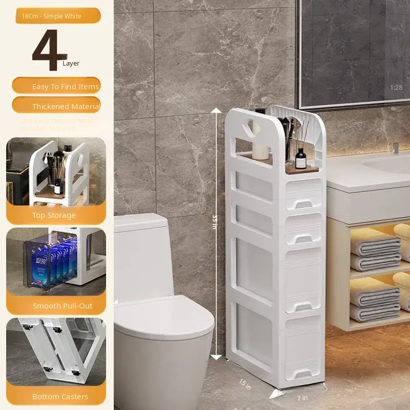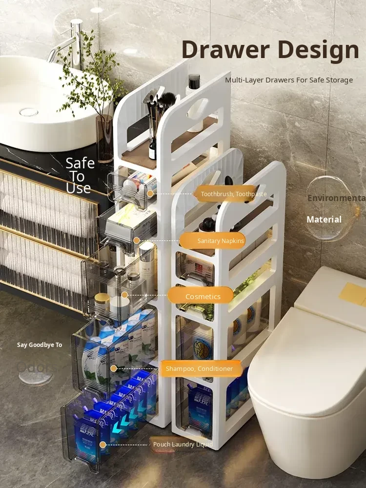 Narrow Space Storage Cabinet with Drawers - Slim Bathroom Organizer for Tight Gaps - Plastic Toilet Side Cabinet for Efficient Bathroom Storage Solutions