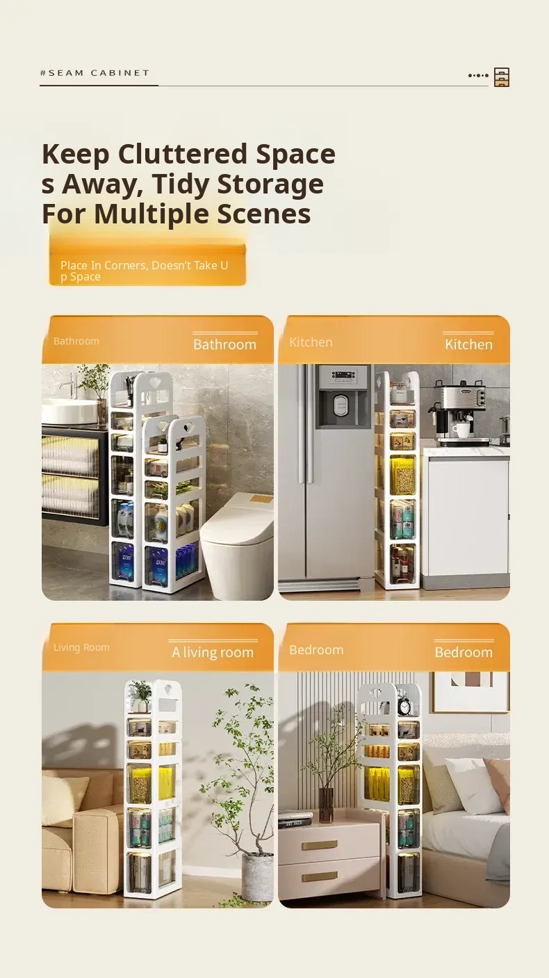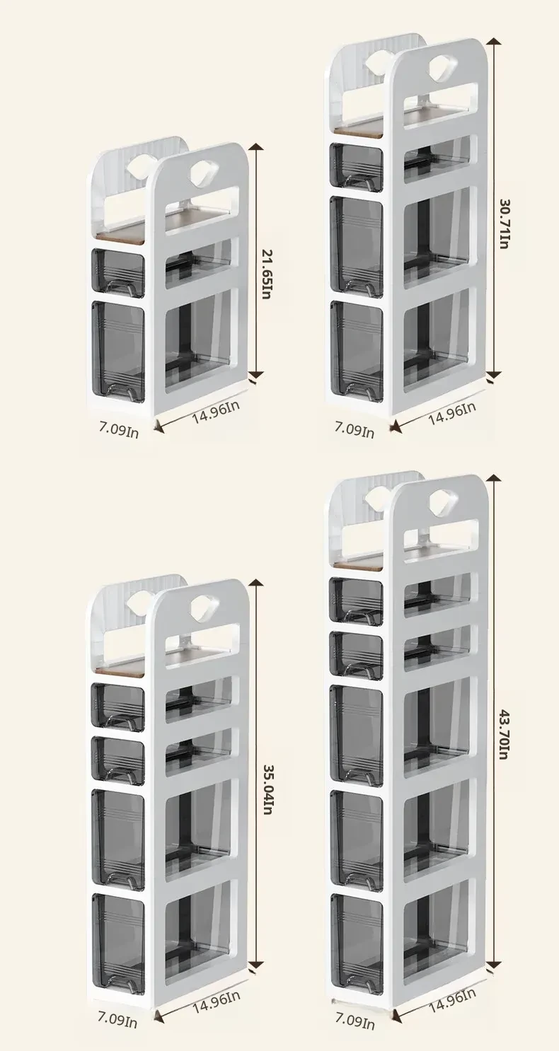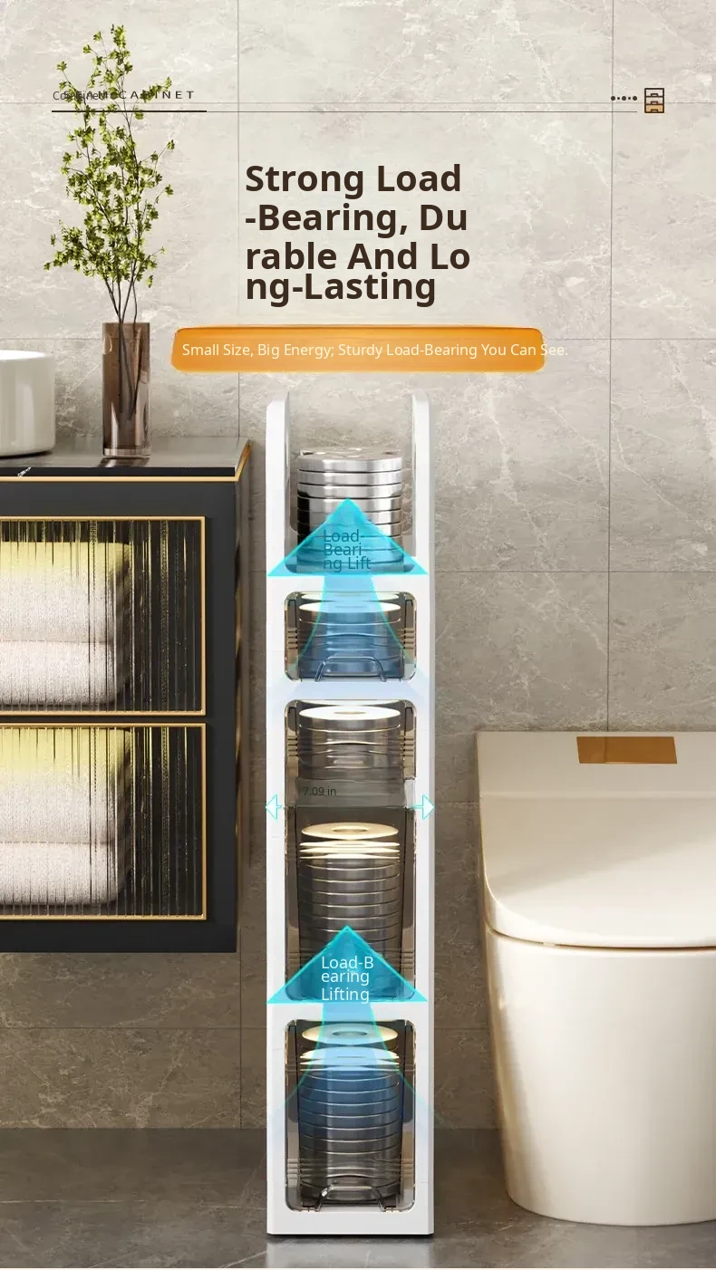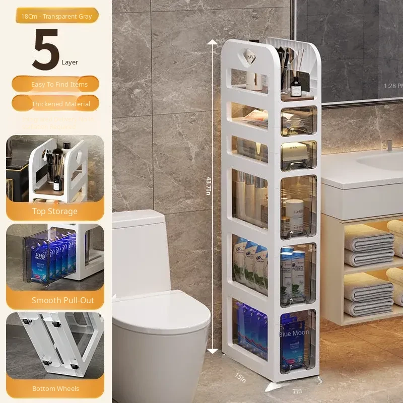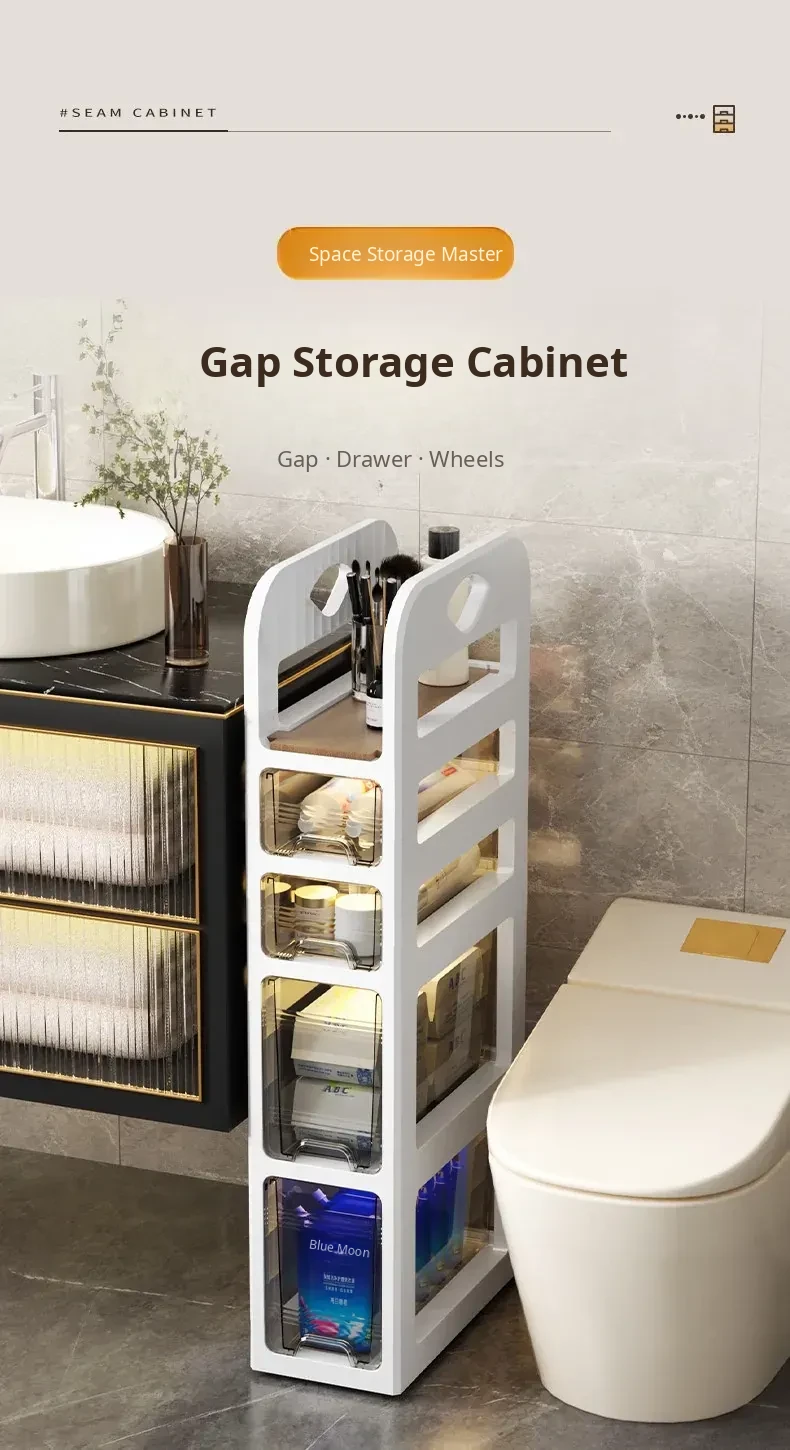 Narrow Space Storage Cabinet with Drawers - Slim Bathroom Organizer for Tight Gaps - Plastic Toilet Side Cabinet for Efficient Bathroom Storage Solutions