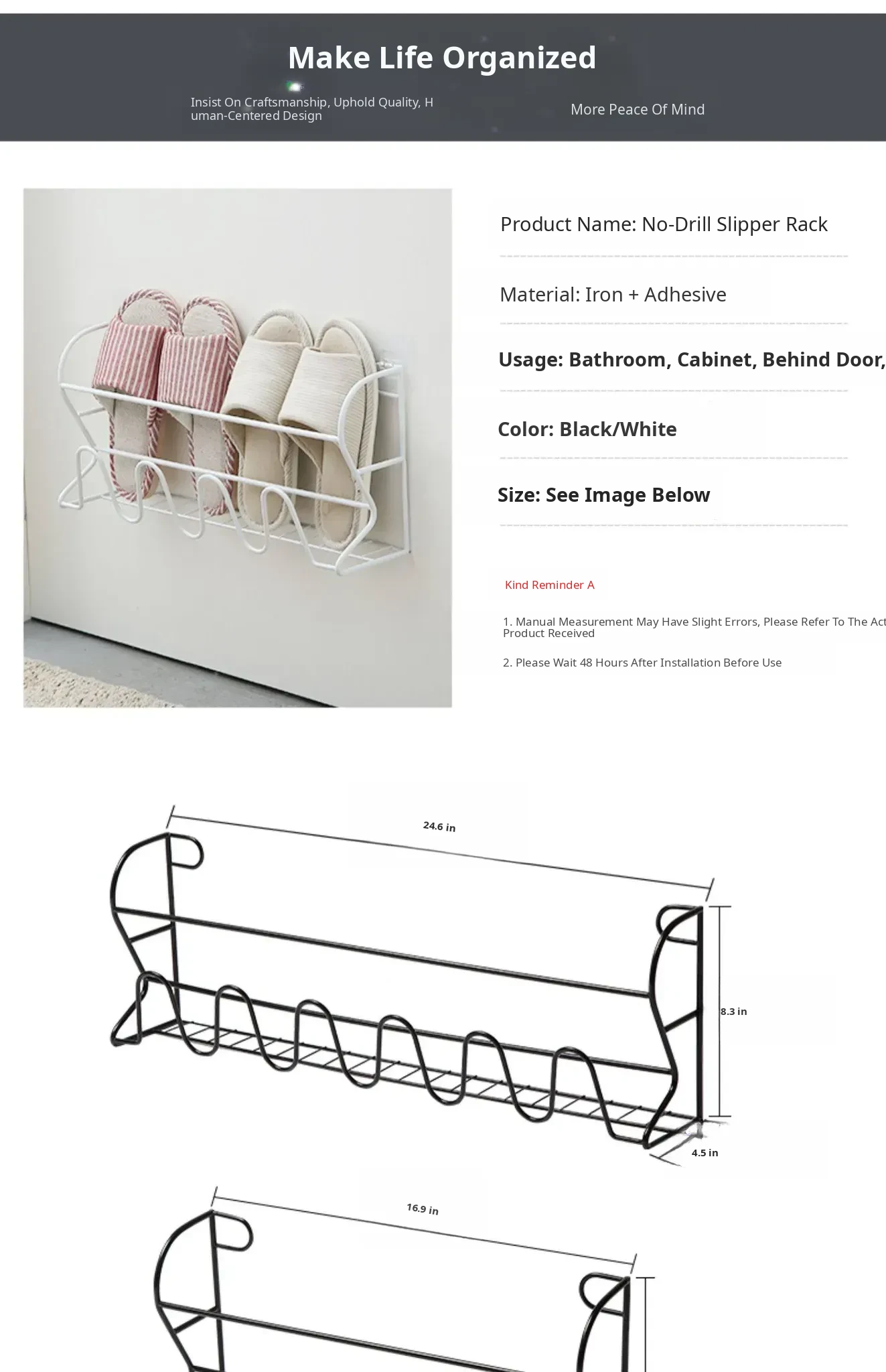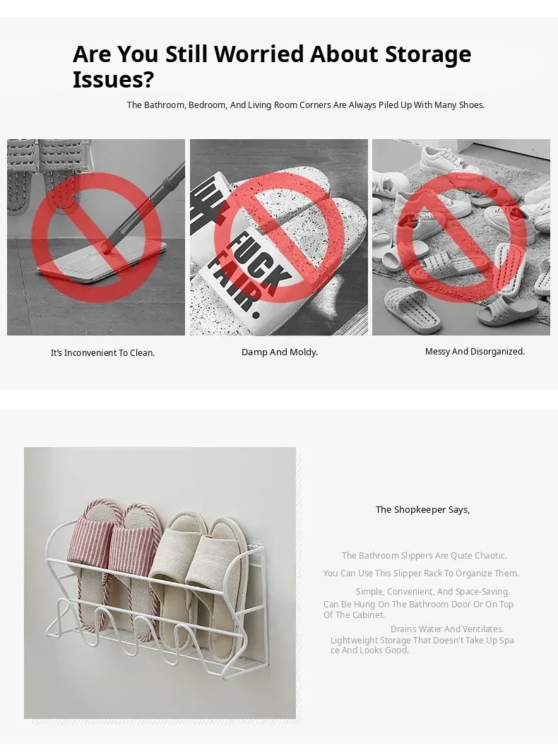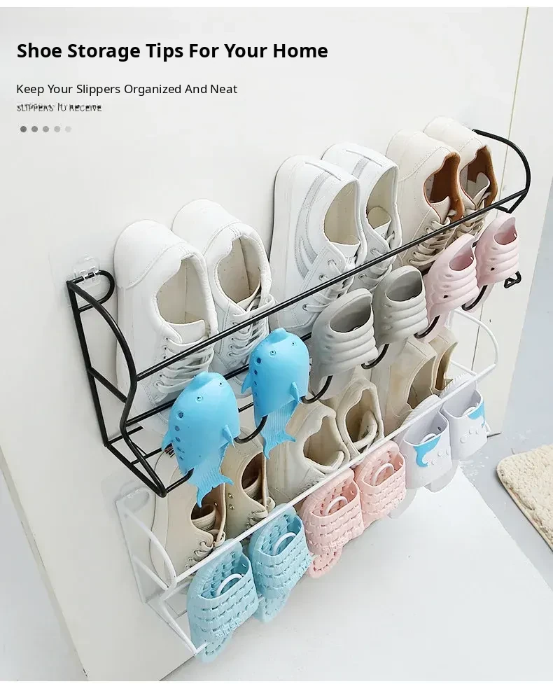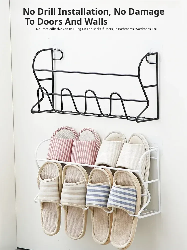 No Drill Door Shoe Rack - Easy Wall-Mounted Storage Solution for Home, Indoor, and Bathroom - Perfect for Organizing Slippers and Footwear!
