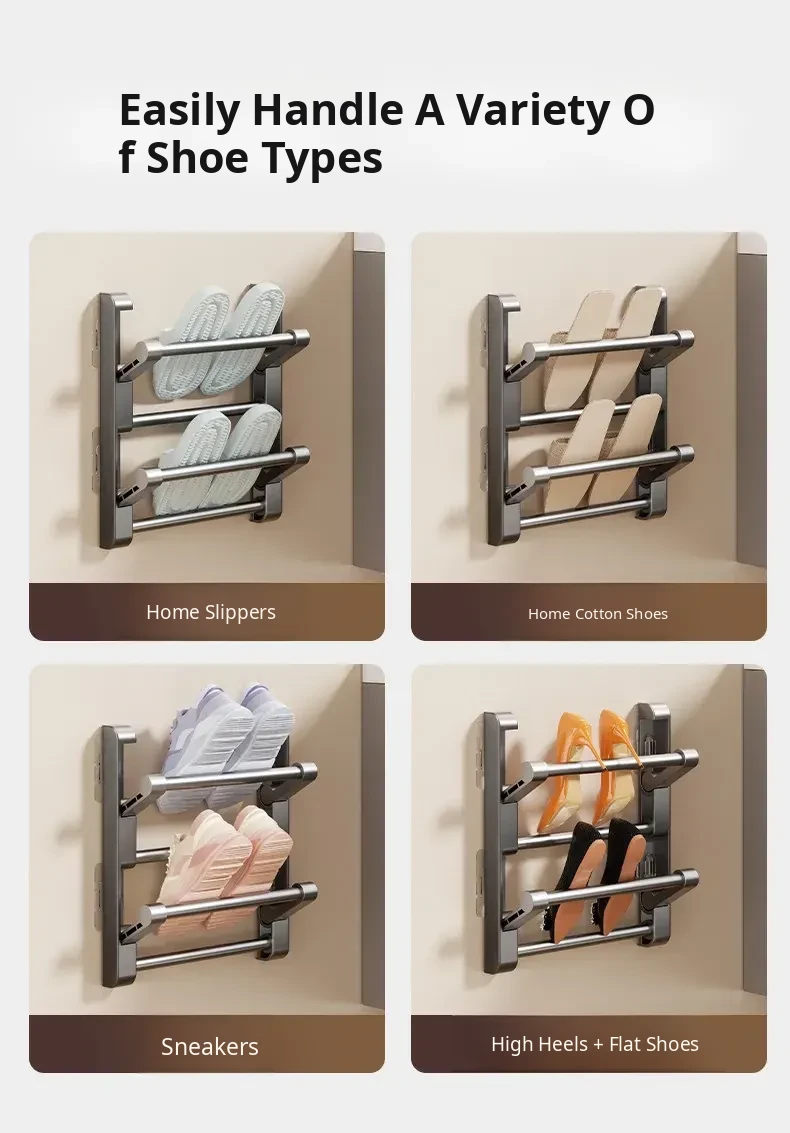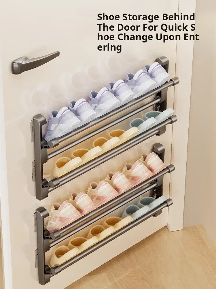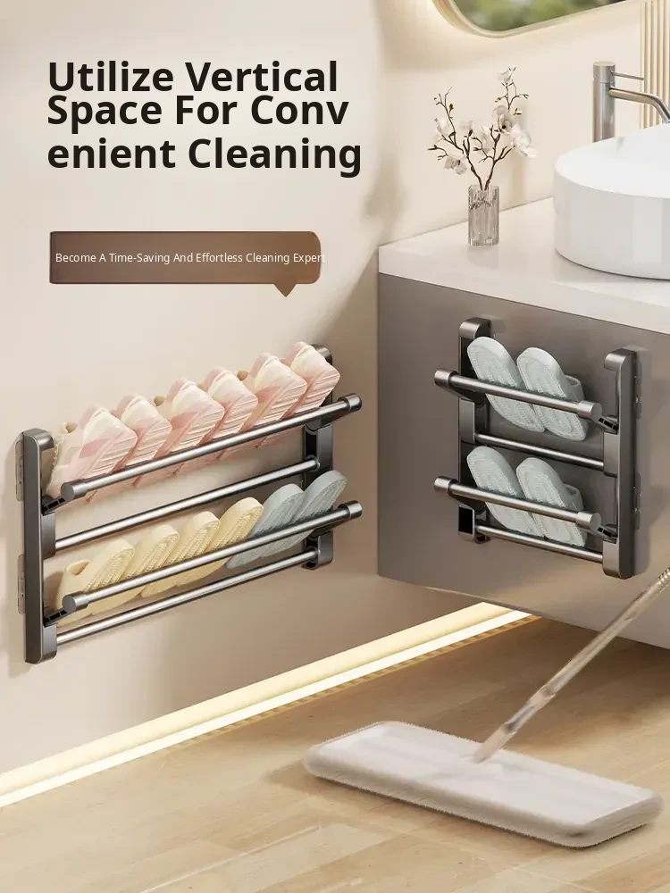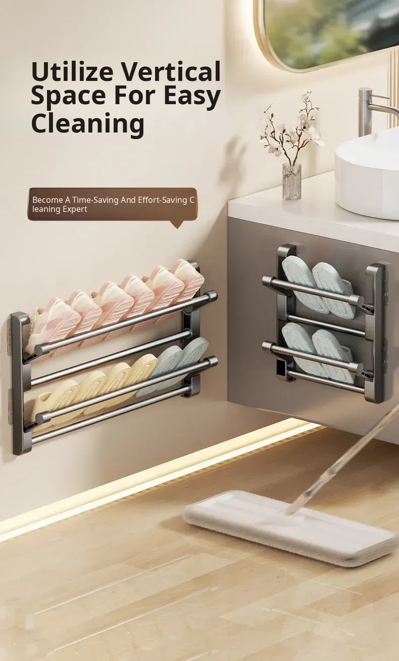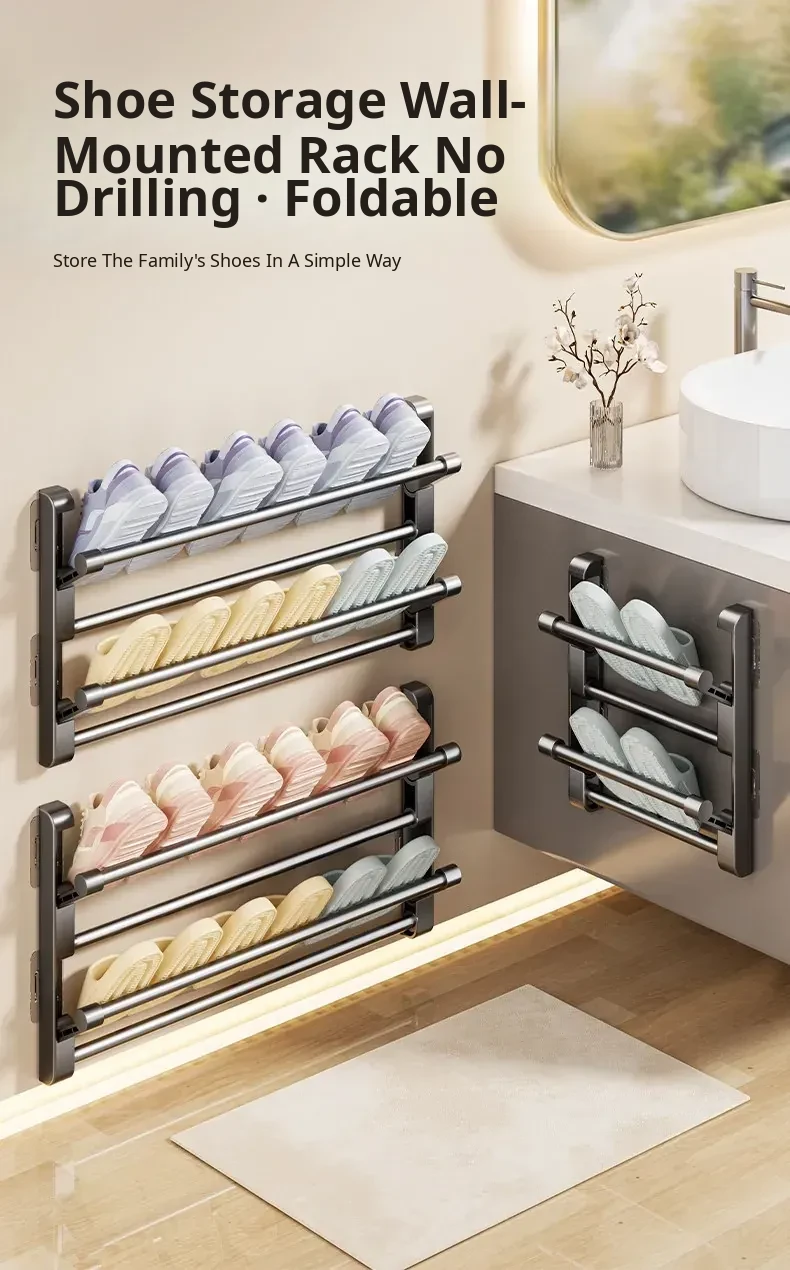 No-Drill Bathroom Slipper Rack - Multi-Layer Space-Saving Organizer, Wall-Mounted, Foldable Design for Behind the Door - The Ultimate Space-Saving Solution for Your Bathroom!