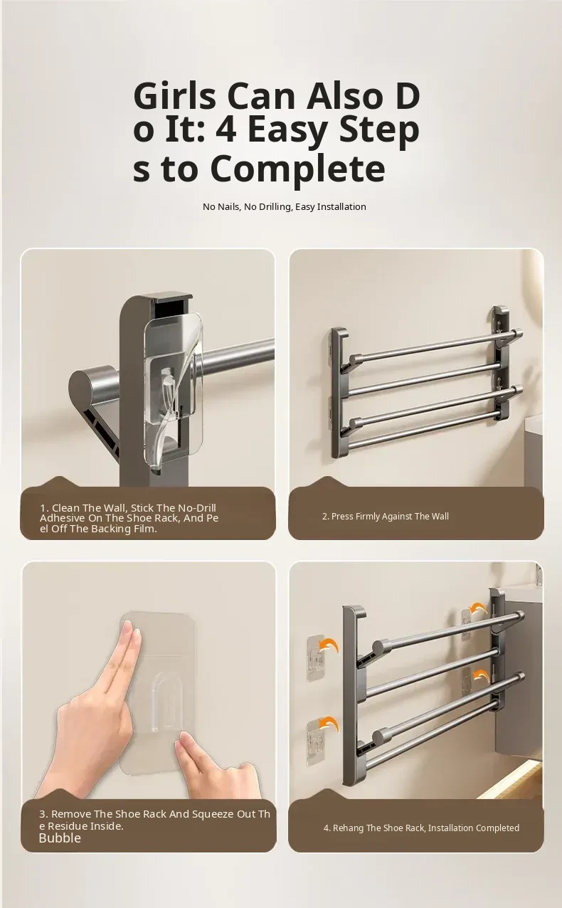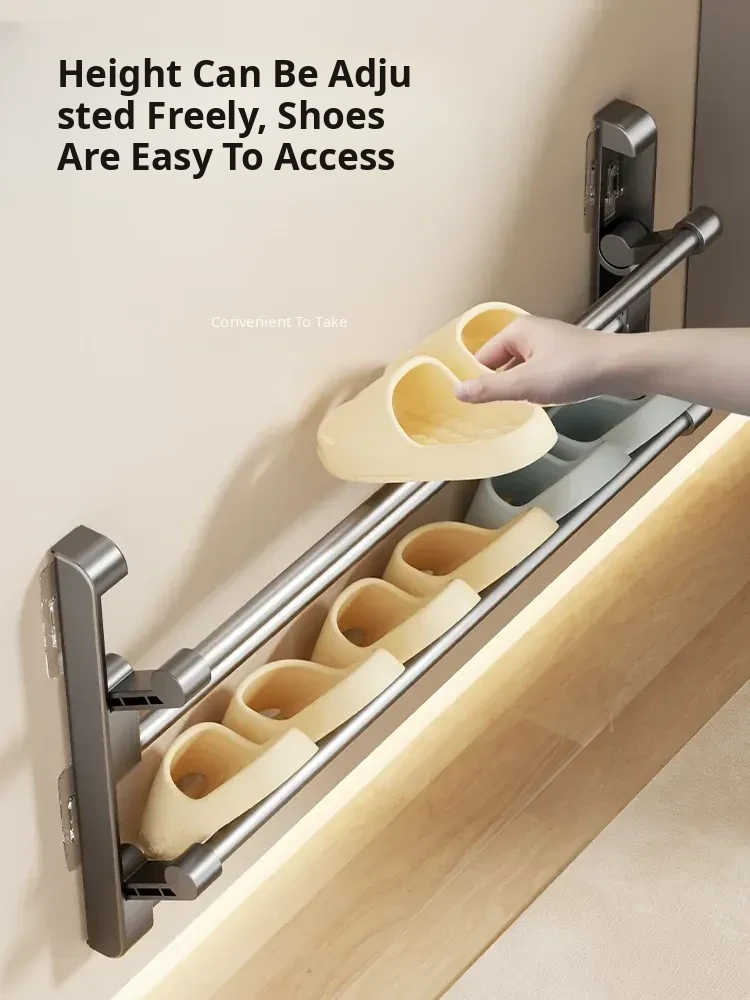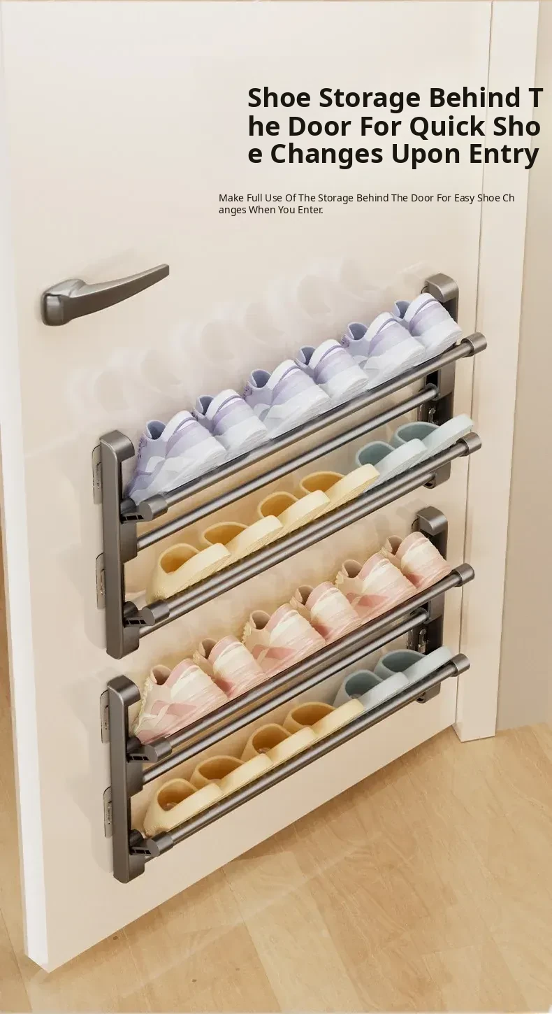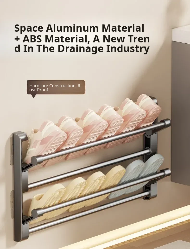 No-Drill Bathroom Slipper Rack - Multi-Layer Space-Saving Organizer, Wall-Mounted, Foldable Design for Behind the Door - The Ultimate Space-Saving Solution for Your Bathroom!