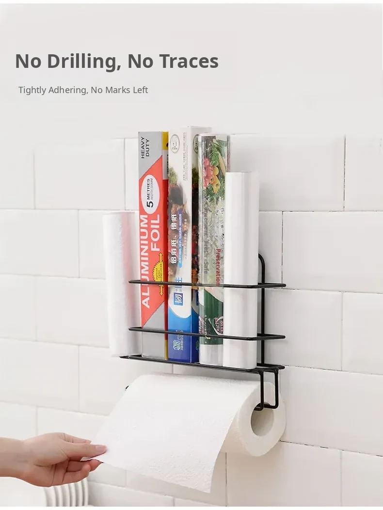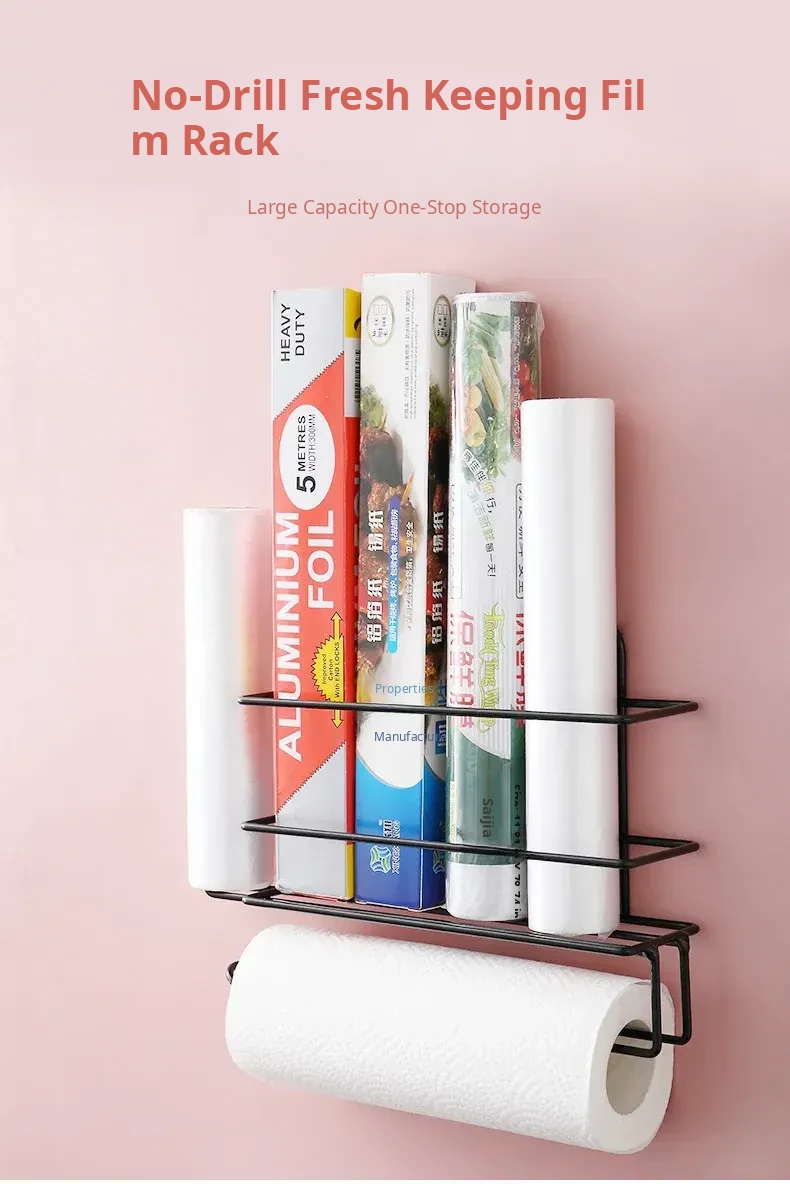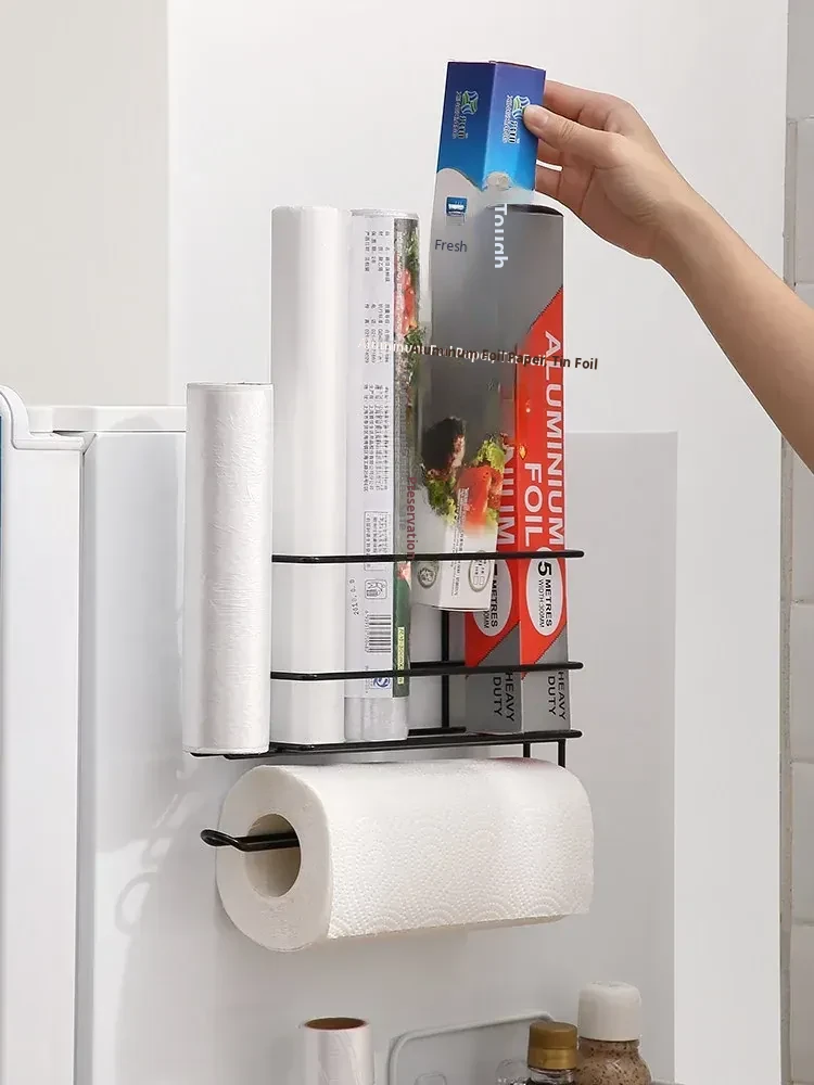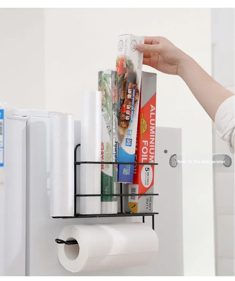 No-Drill Plastic Wrap Organizer - Side-Mount Rack for Refrigerator, Kitchen Towel Holder and Storage Shelf, Perfect for Keeping Food Fresh with Easy Access to Food Storage Bags.