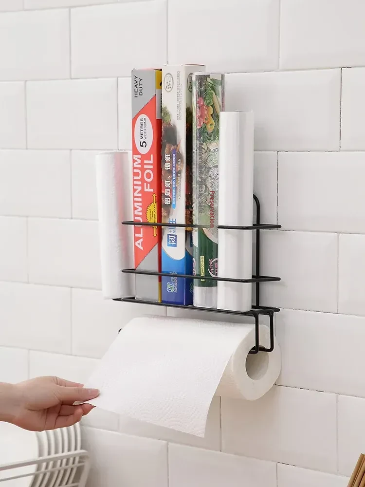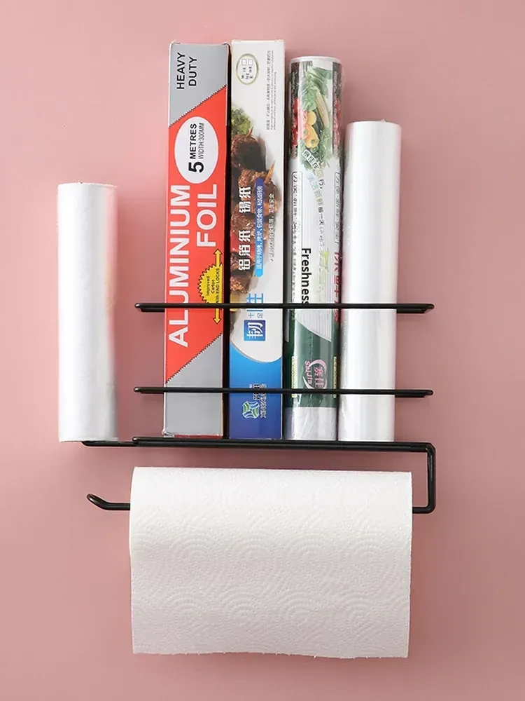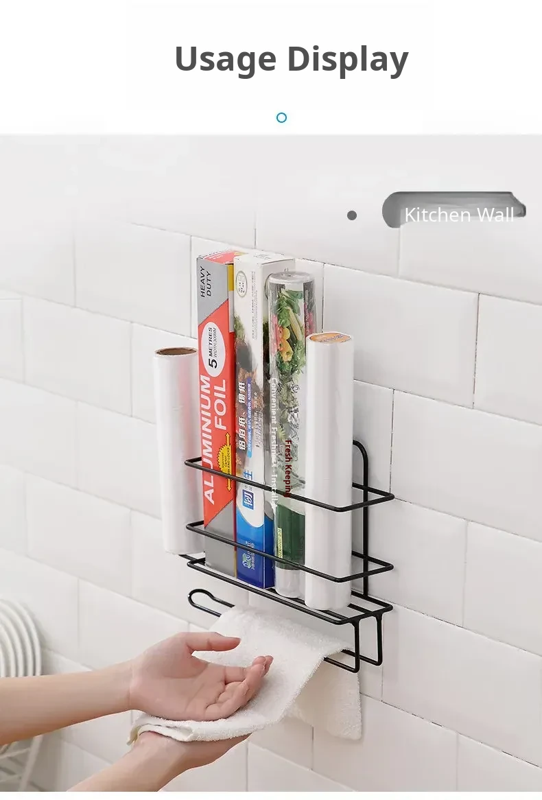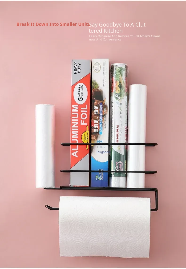 No-Drill Plastic Wrap Organizer - Side-Mount Rack for Refrigerator, Kitchen Towel Holder and Storage Shelf, Perfect for Keeping Food Fresh with Easy Access to Food Storage Bags.