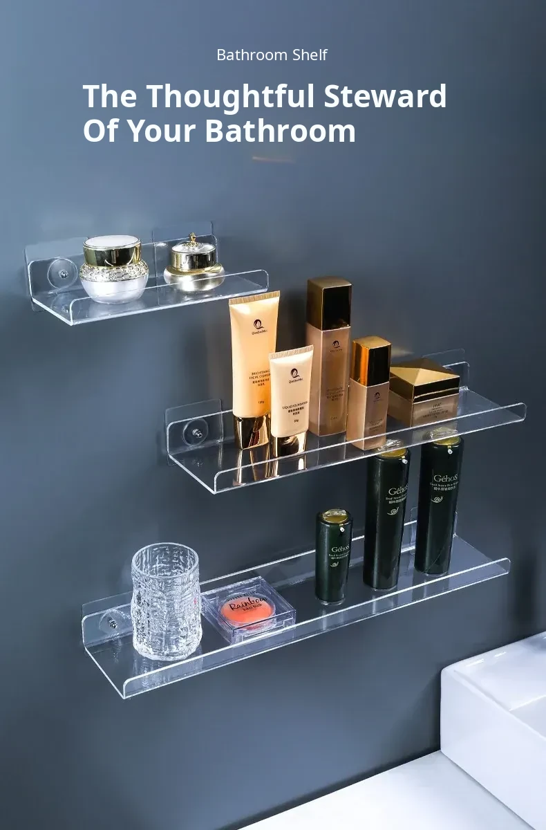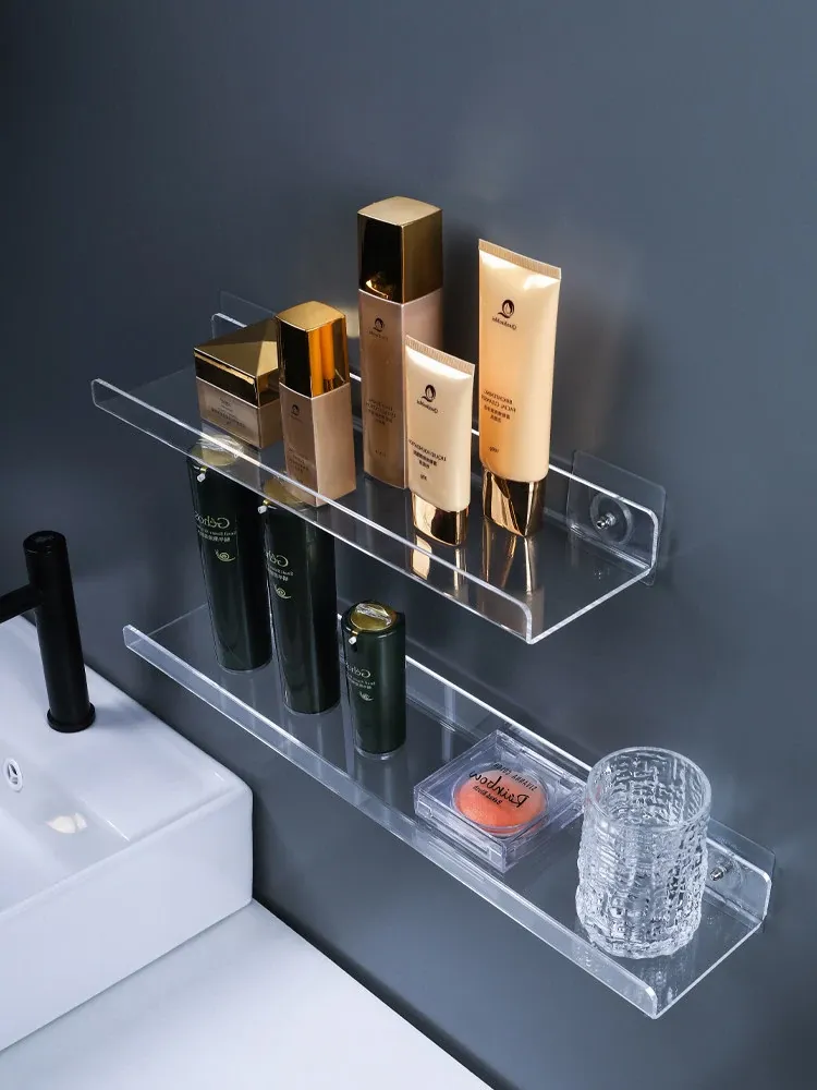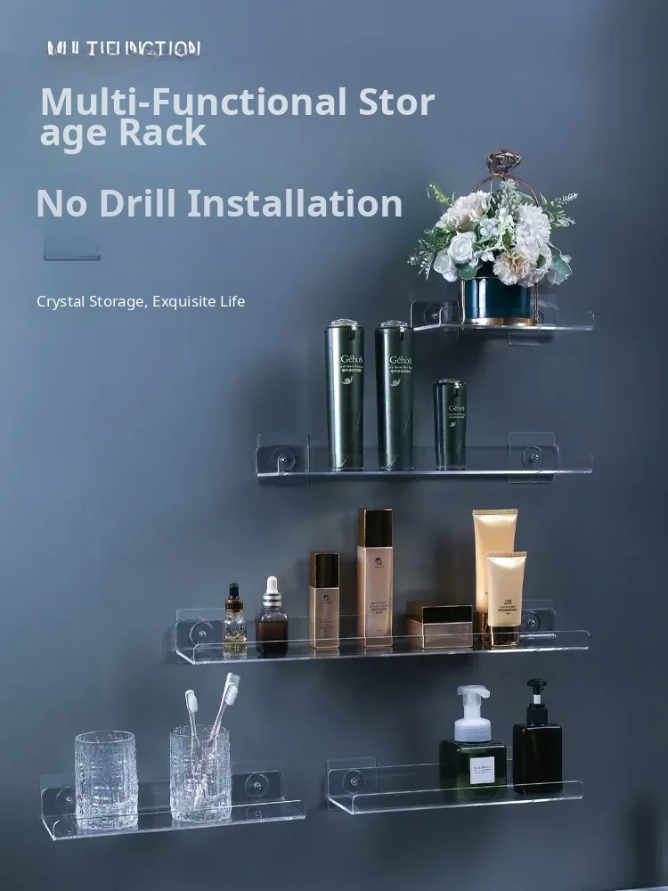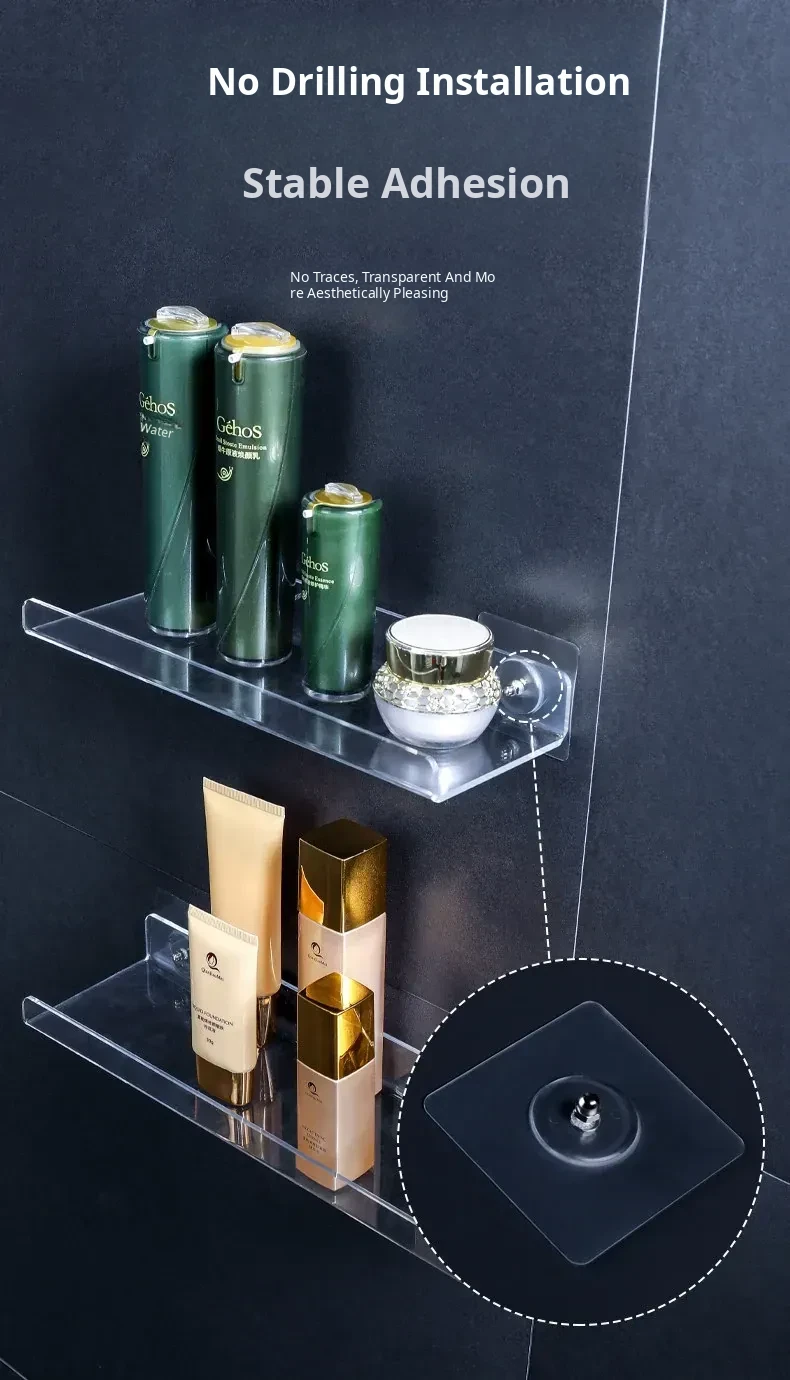No-Drill Transparent Wall-Mounted Storage Shelves for Bathroom and Kitchen – Innovative Organizer for Easy Access and Stylish Storage Solutions!