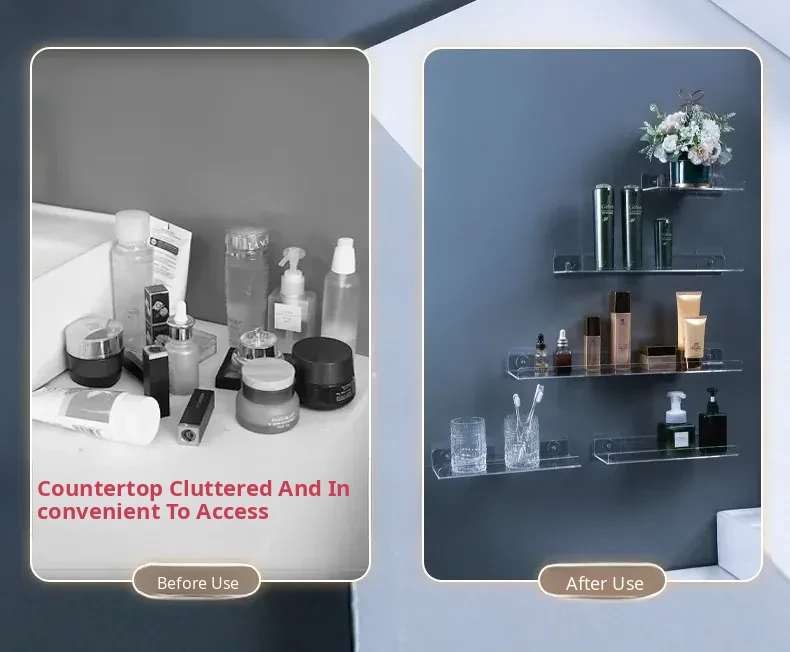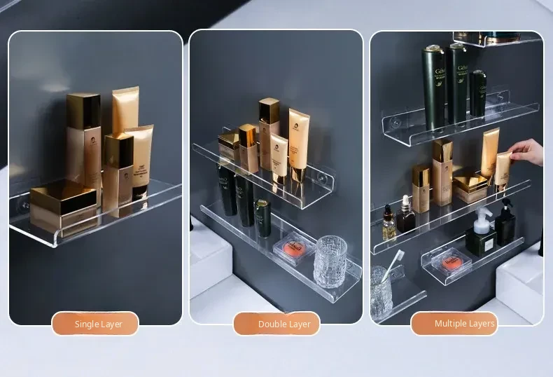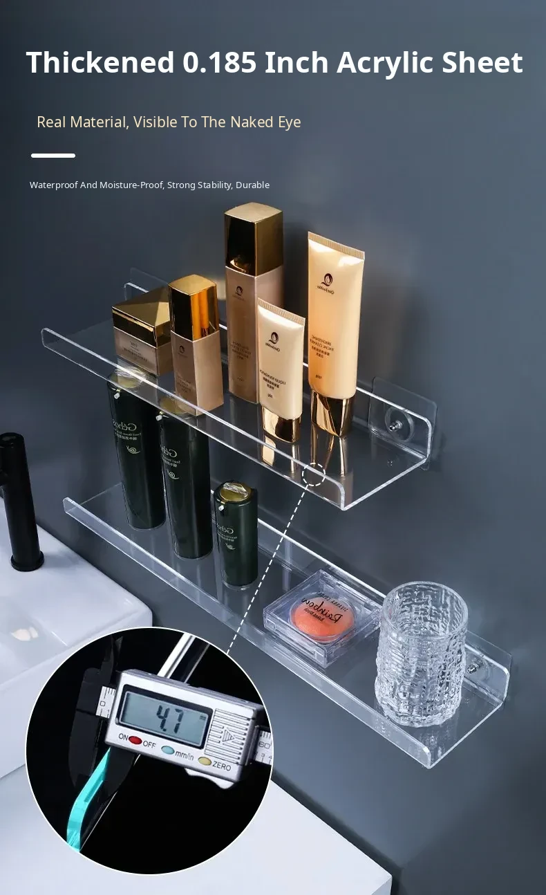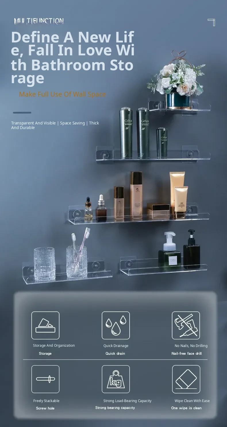 No-Drill Transparent Wall-Mounted Storage Shelves for Bathroom and Kitchen – Innovative Organizer for Easy Access and Stylish Storage Solutions!