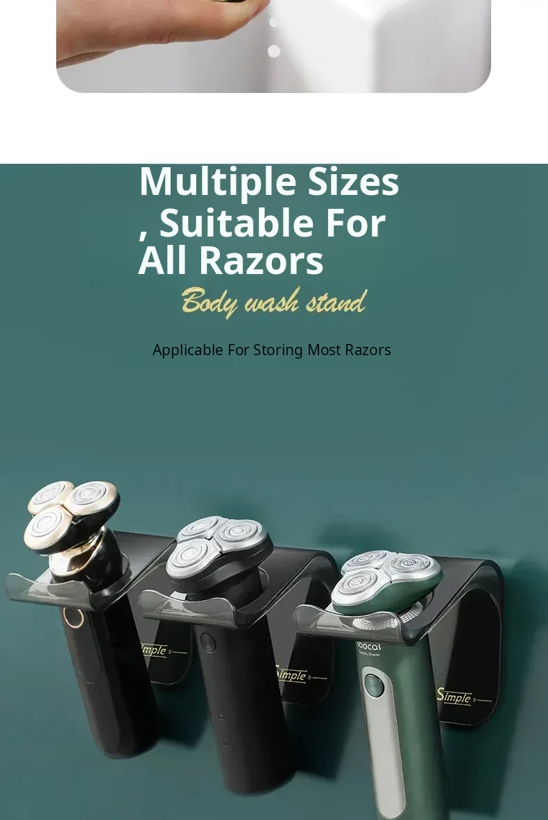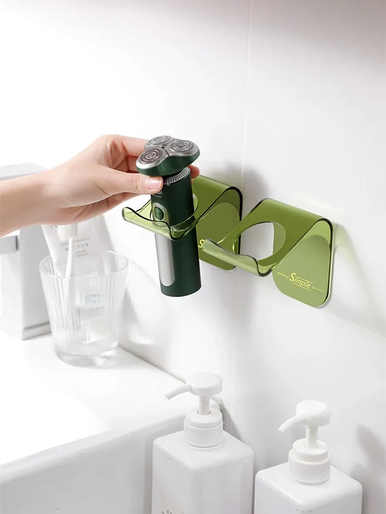No-Drill Wall-Mounted Razor Holder - Electric Shaver Storage Rack with Hooks for Easy Organization and Access - Perfect for a Clutter-Free Bathroom!
