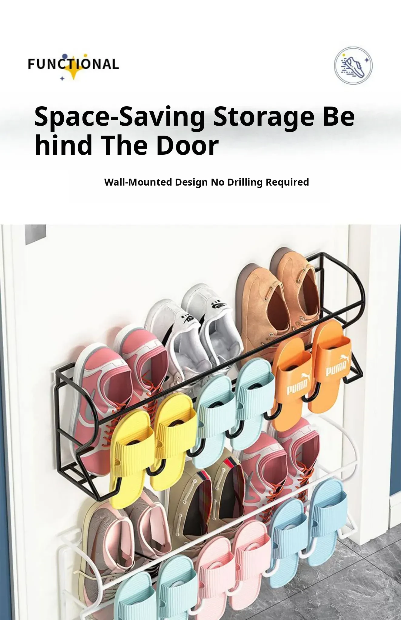 No-Drill Wall-Mounted Shoe Rack for Dorms and Bathrooms - Simple Shoe Organizer for Doorways, Perfect for Easy Shoe Storage and Drying!