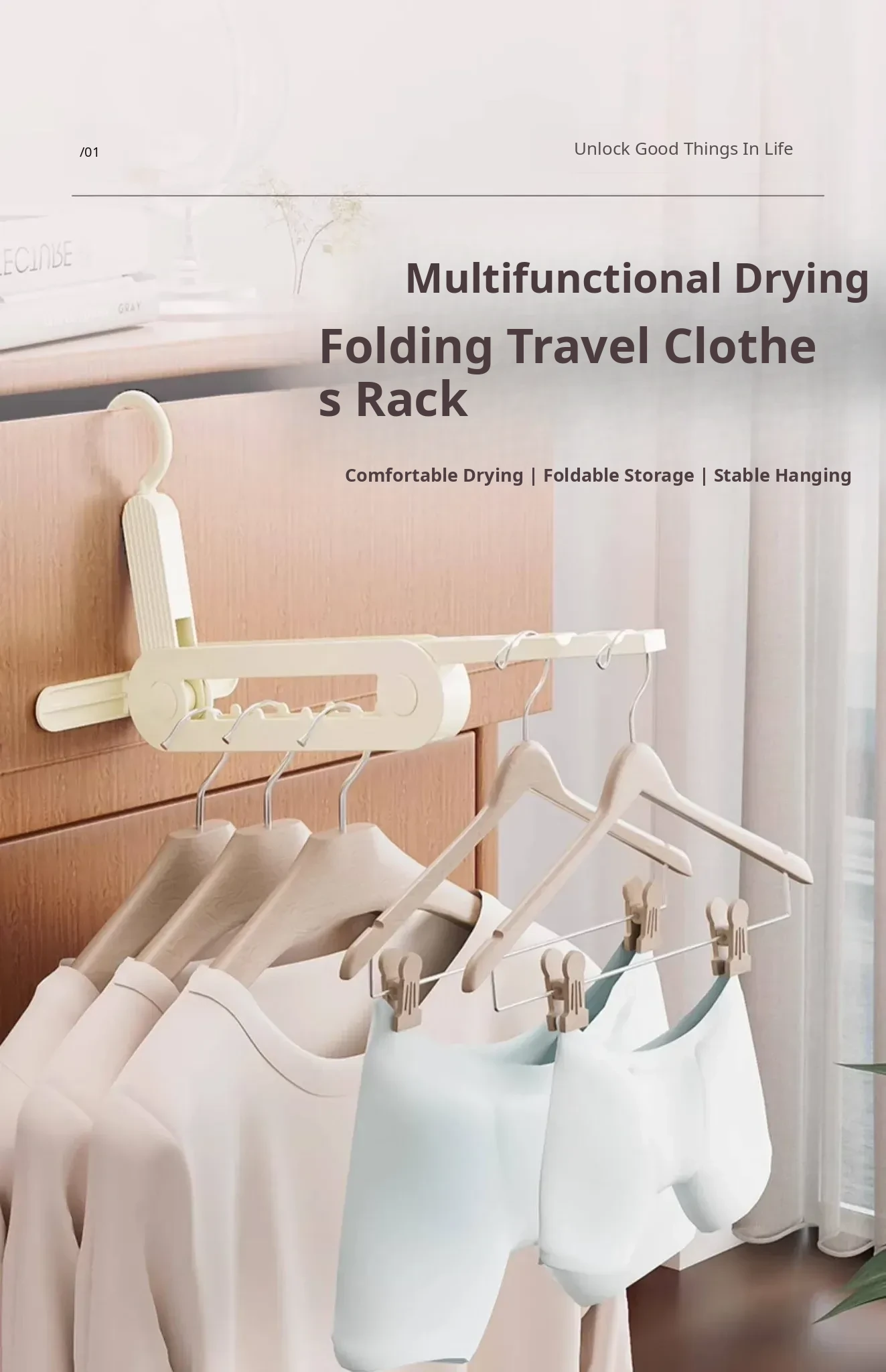 Portable Travel Clothes Drying Rack - Foldable, No-Drill, Adjustable Hanger for Hotels and Indoor Use - Perfect for Business Trips and Vacations!