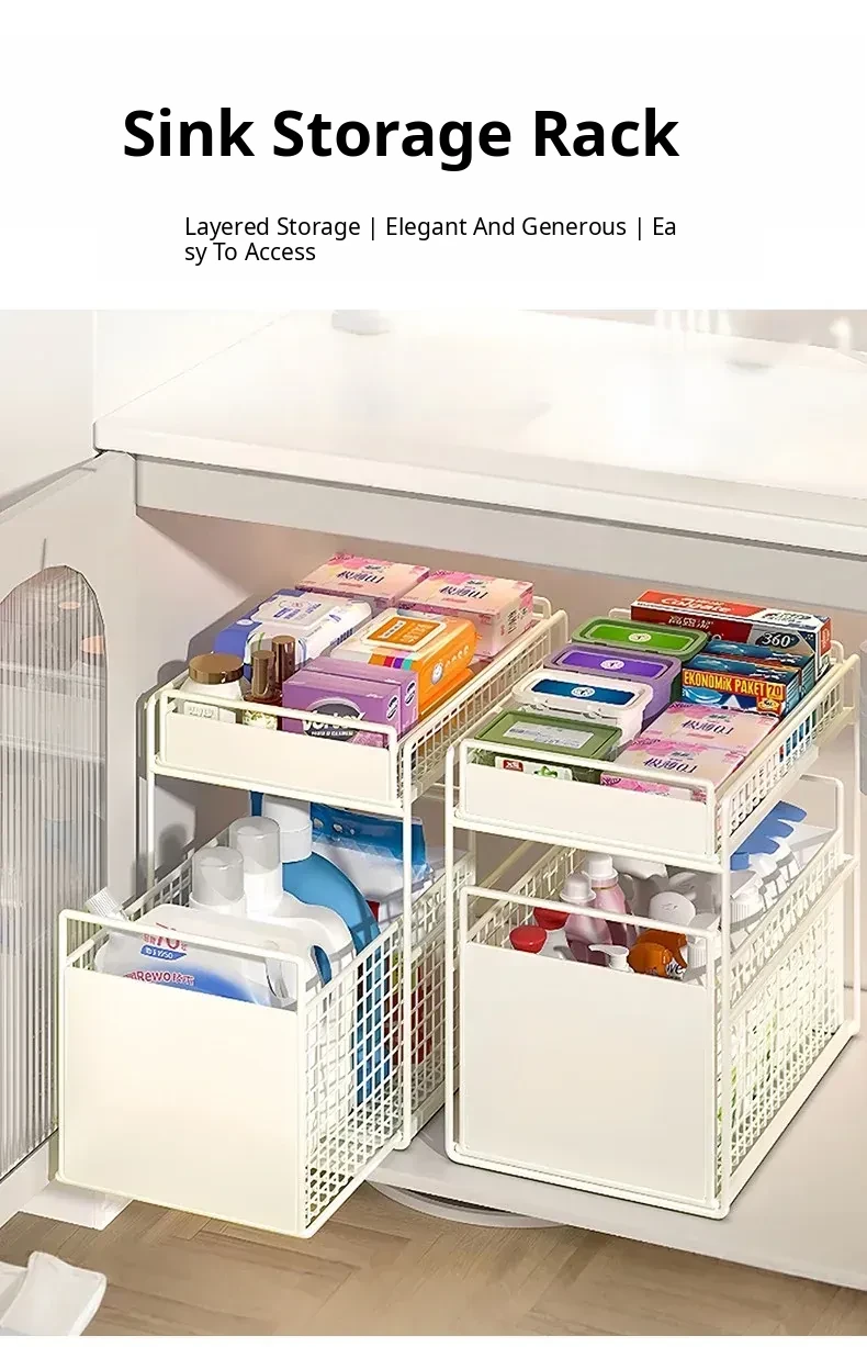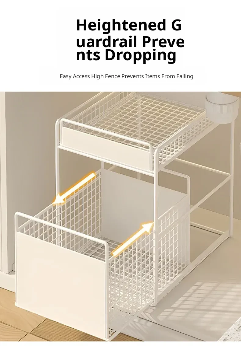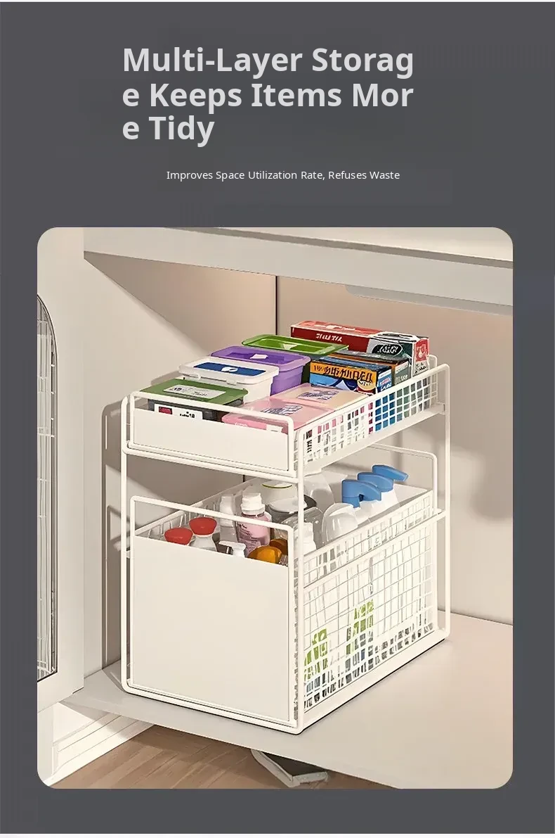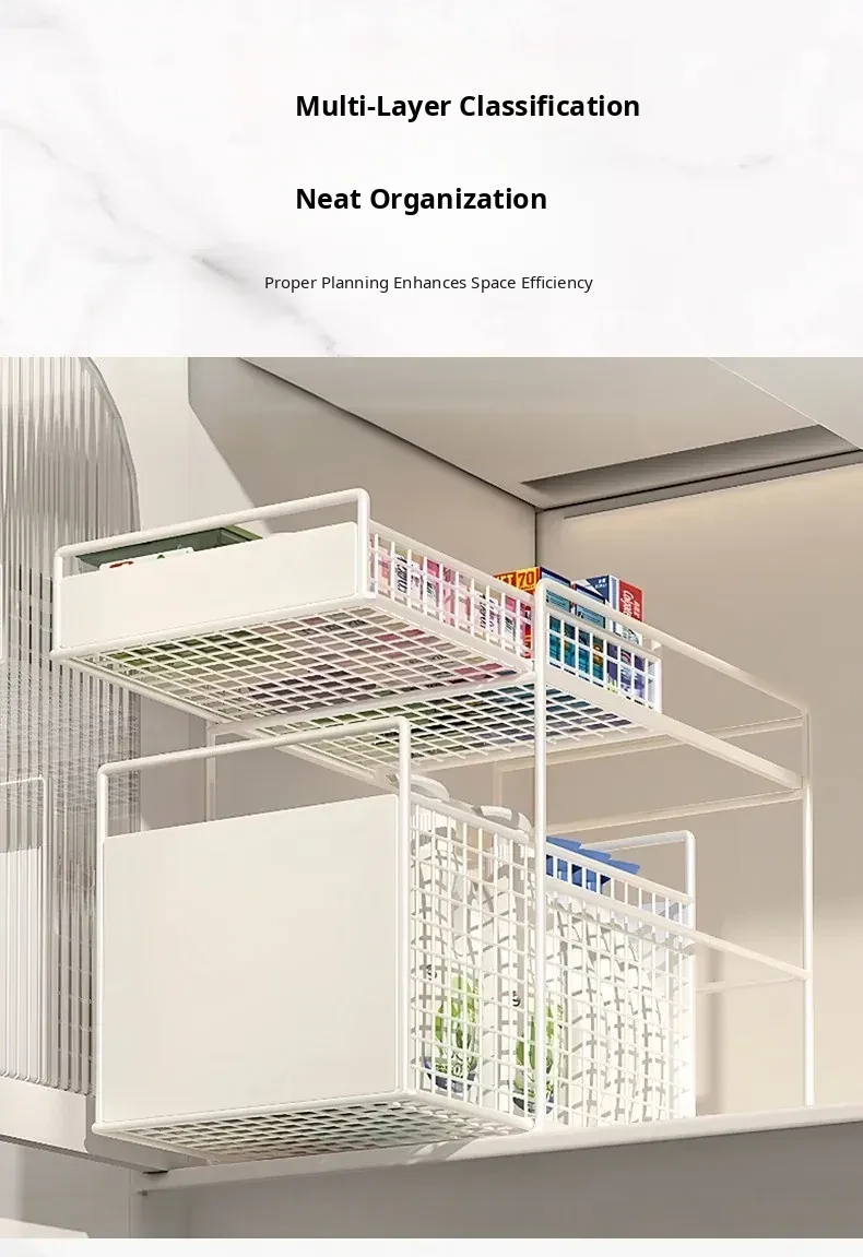 Pull-Out Double-Layer Storage Basket for Bathroom Vanity - Under-Sink Organizer Rack for Efficient Bathroom Storage Solutions