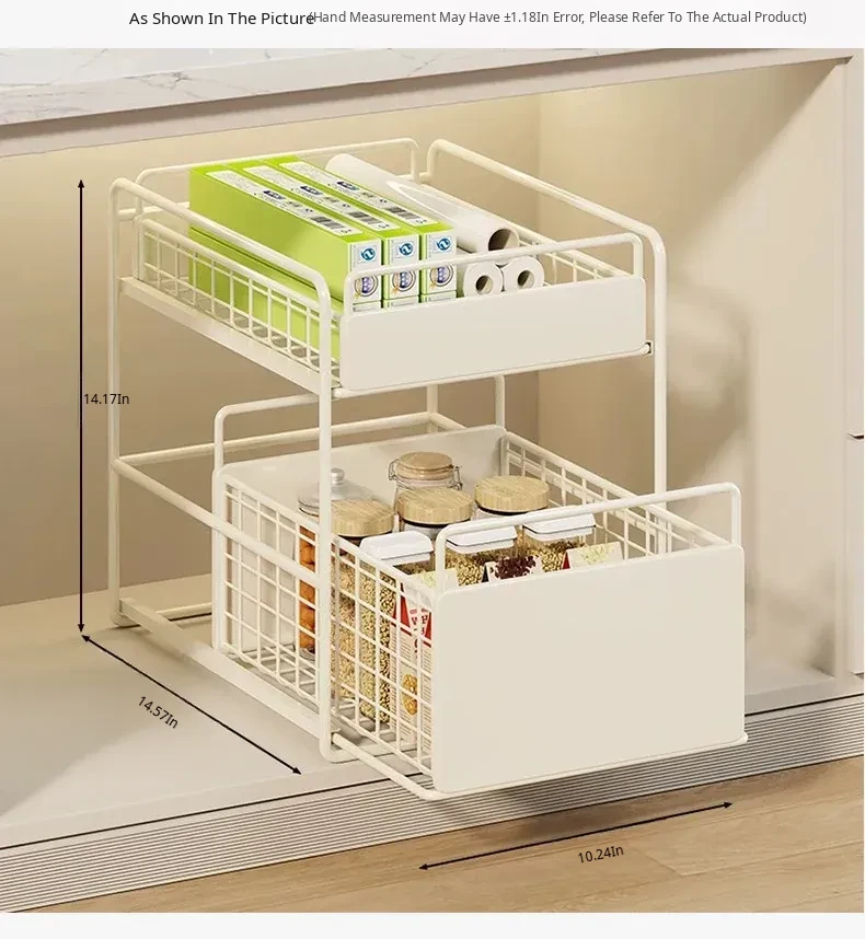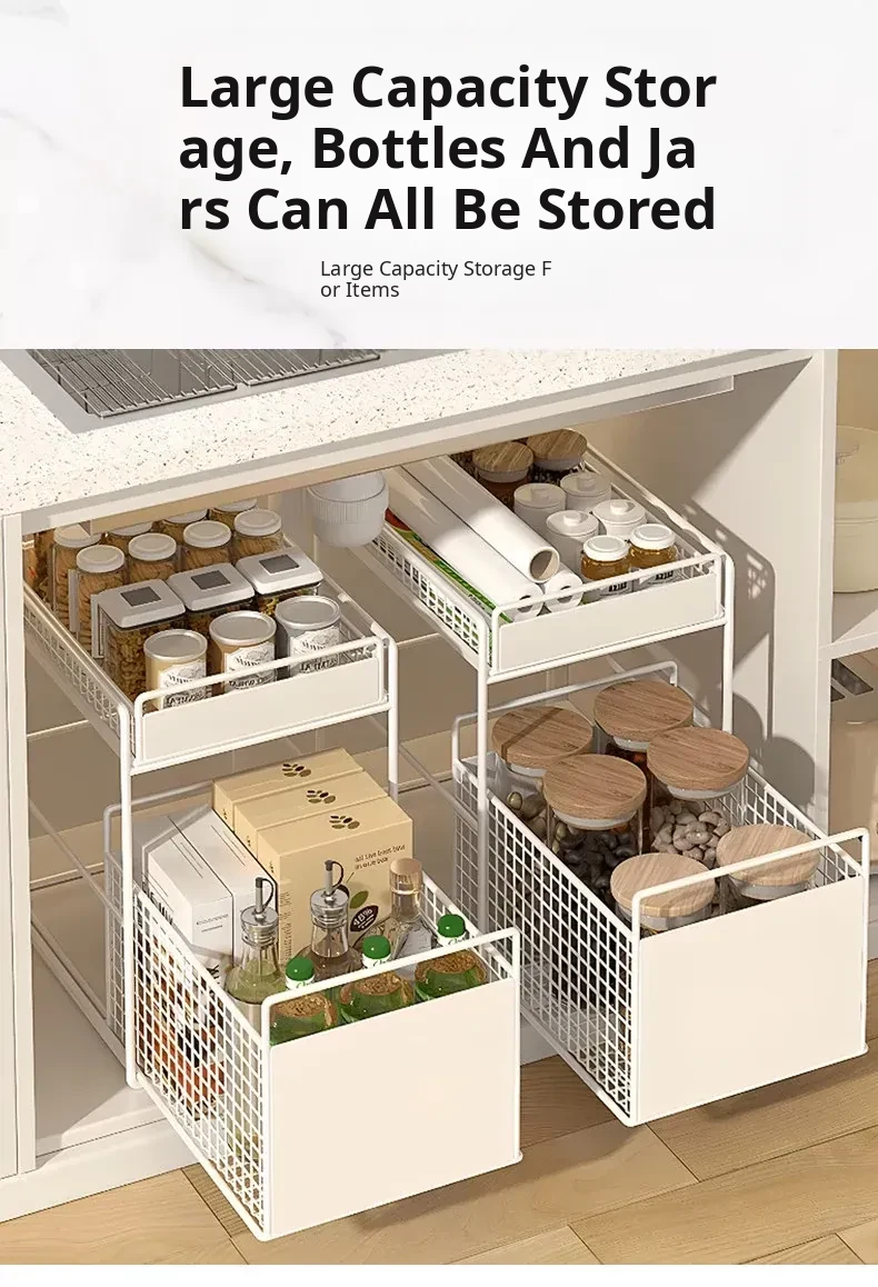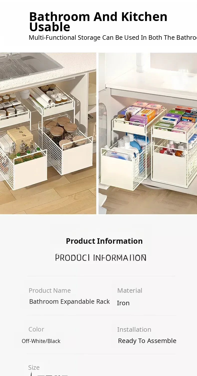 Pull-Out Double-Layer Storage Basket for Bathroom Vanity - Under-Sink Organizer Rack for Efficient Bathroom Storage Solutions
