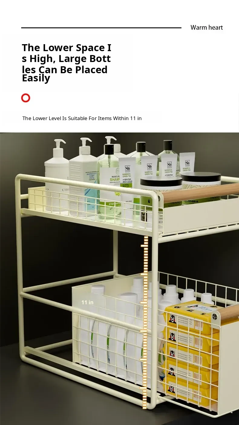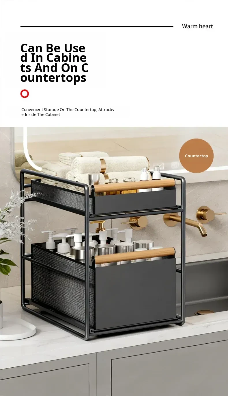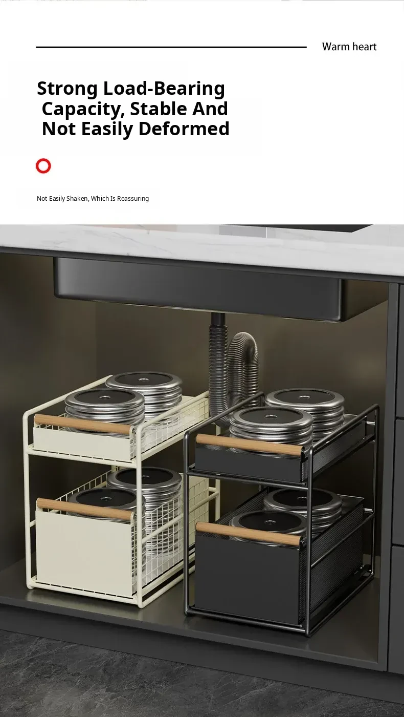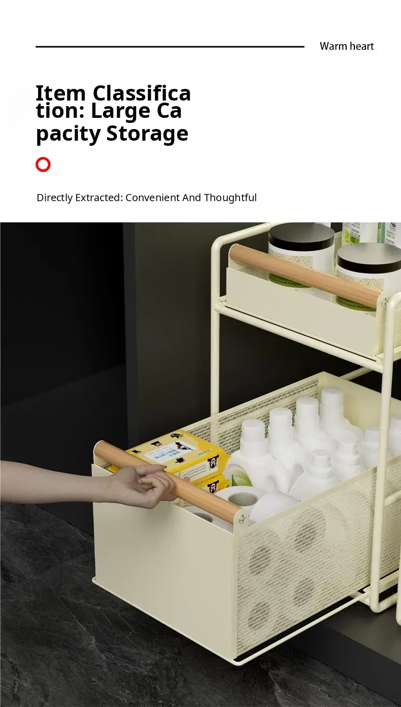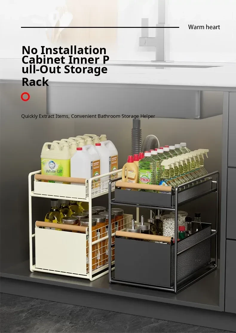Pull-Out Storage Rack for Sink - Multi-Layer Organizer for Kitchen, Bathroom, and Cabinet Underneath - Versatile Drawer Basket for Efficient Space Saving and Easy Access
