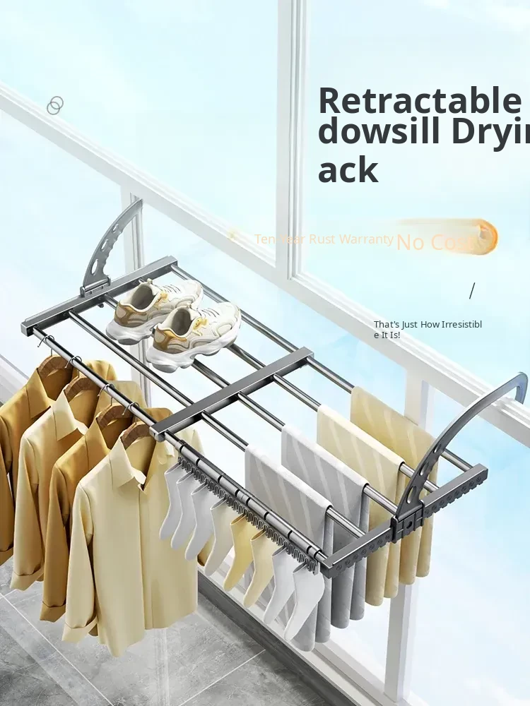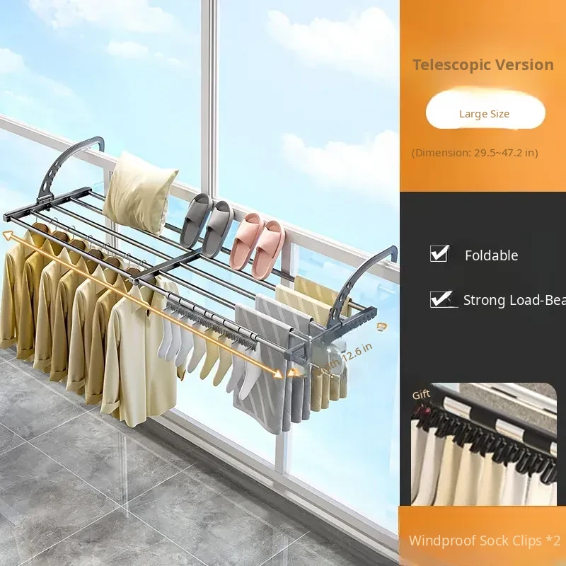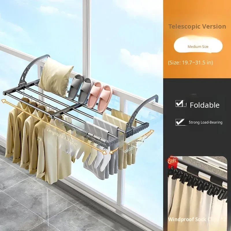 Retractable Balcony Clothes Drying Rack - Versatile Window Railing Shoe and Sock Hanging Organizer for Outdoor Use, Perfect for Home!