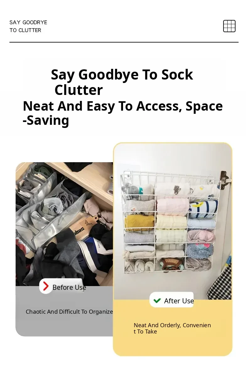 Socks Organizer - Wall-Mounted Storage Solution for Efficient Closet Space, Perfect for Underwear and Panties, Ideal for Dorm Rooms and Home Use
