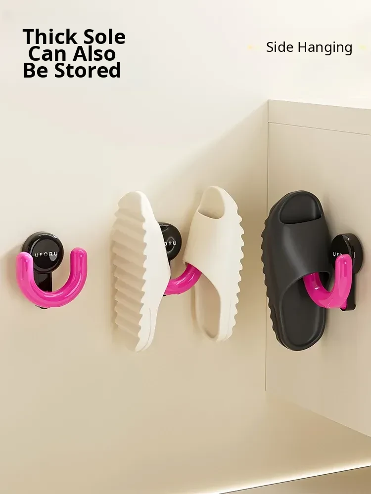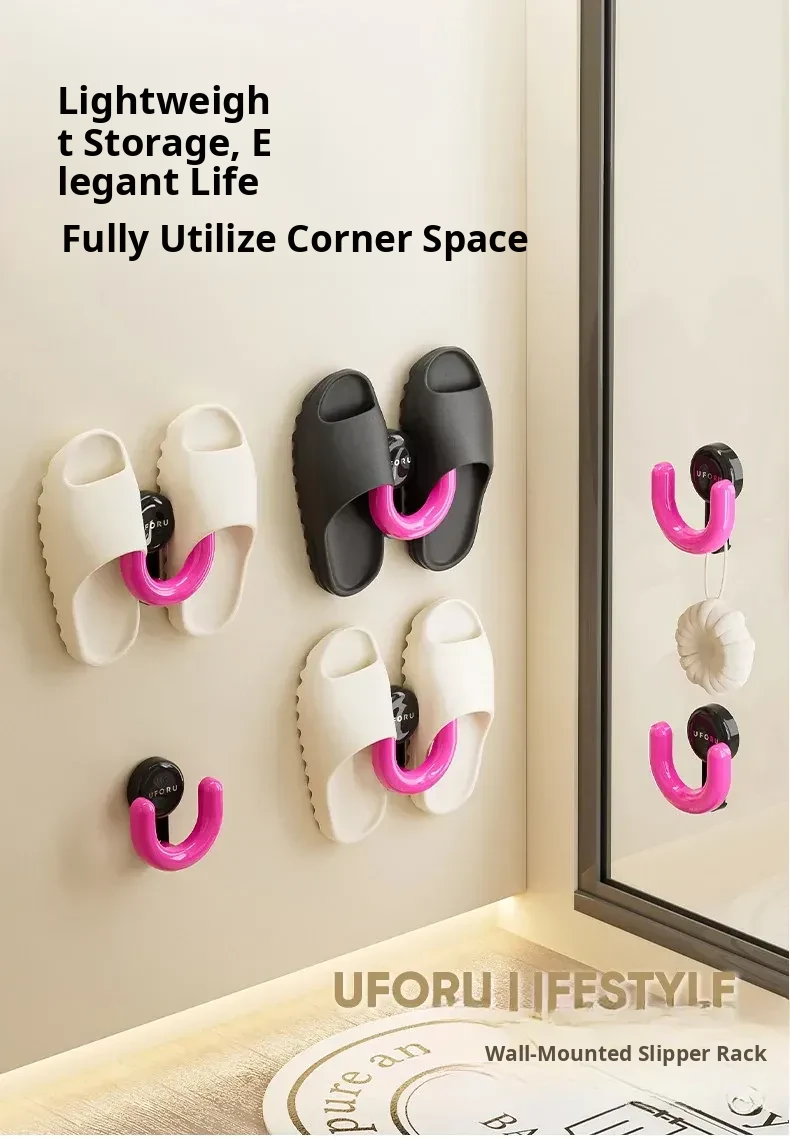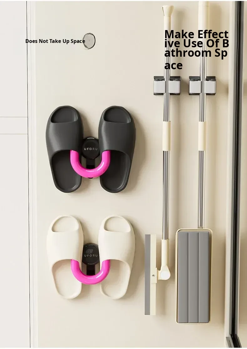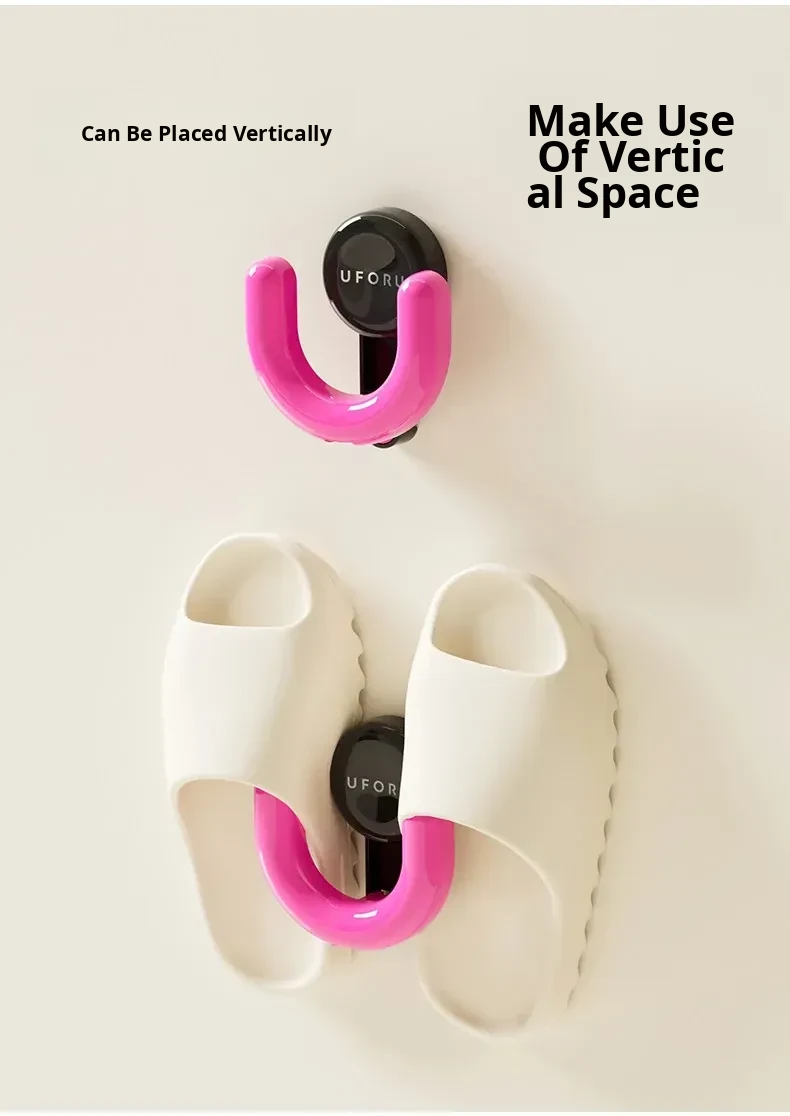 Suction Cup Bathroom Slipper Rack - No Drill Wall-Mounted Storage Hook for Shower & Toilet - Draining Organizer for Clean & Dry Slippers