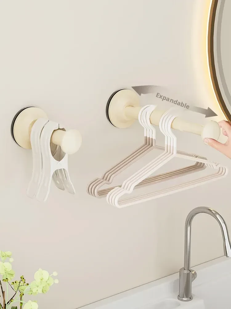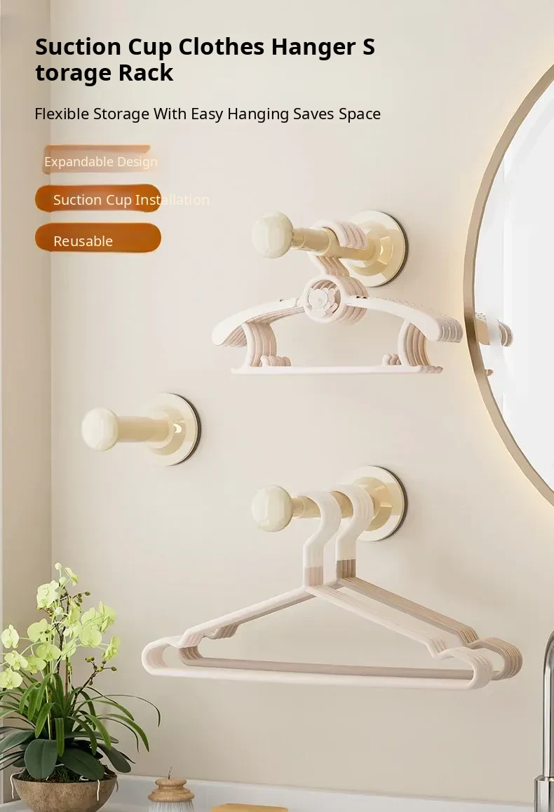 Suction Cup Clothes Hanger Organizer - No Drill Wall-Mounted Multi-Functional Adjustable Rack for Balcony and Home Use - Perfect for Drying and Storing Clothes!