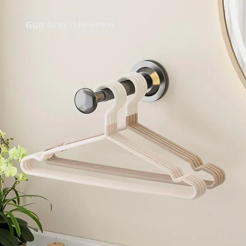 Gun Gray-Suction Cup Clothes Hanger Storage Rack (1 Pack)