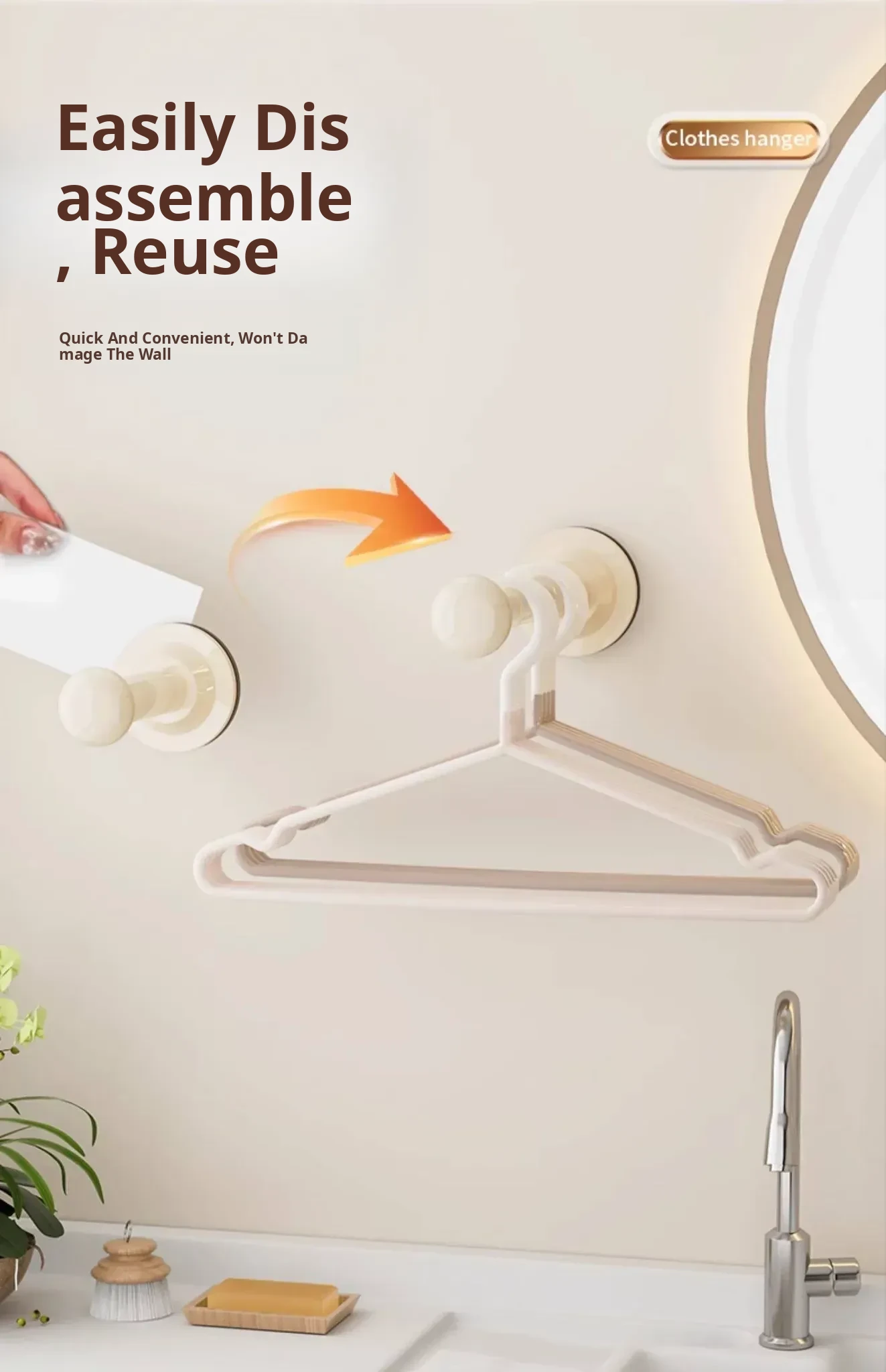 Cream White - Suction Cup Hanger Organizer (Single Pack)